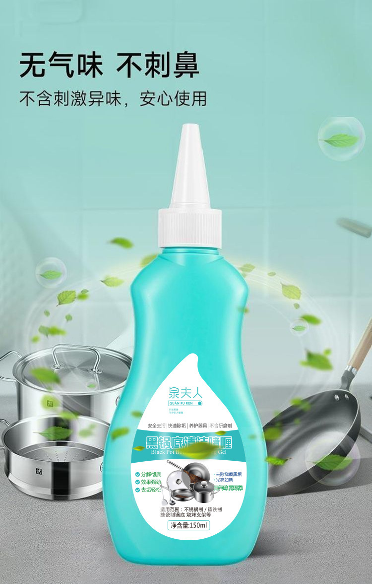 Mrs. Quan Pot 하단 블랙 클리너 강력한 불타는 블랙 스케일 스테인레스 스틸 냄비 먼지 제거 가정용 워시 포트 아티팩트