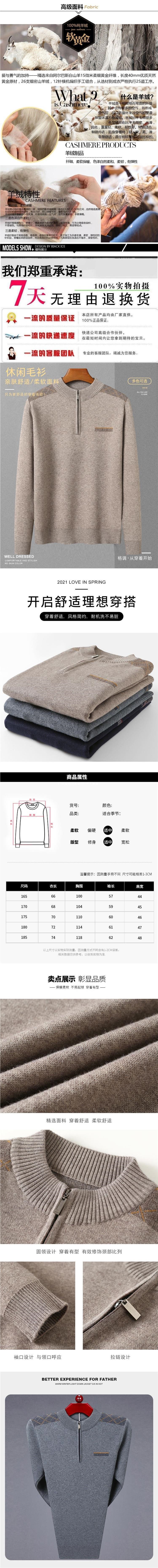 Erdos 하프 하이 칼라 100 순수 캐시미어 스웨터 남자 두꺼운 스웨터 겨울 중년 및 노인 지퍼 스웨터스토어 가기