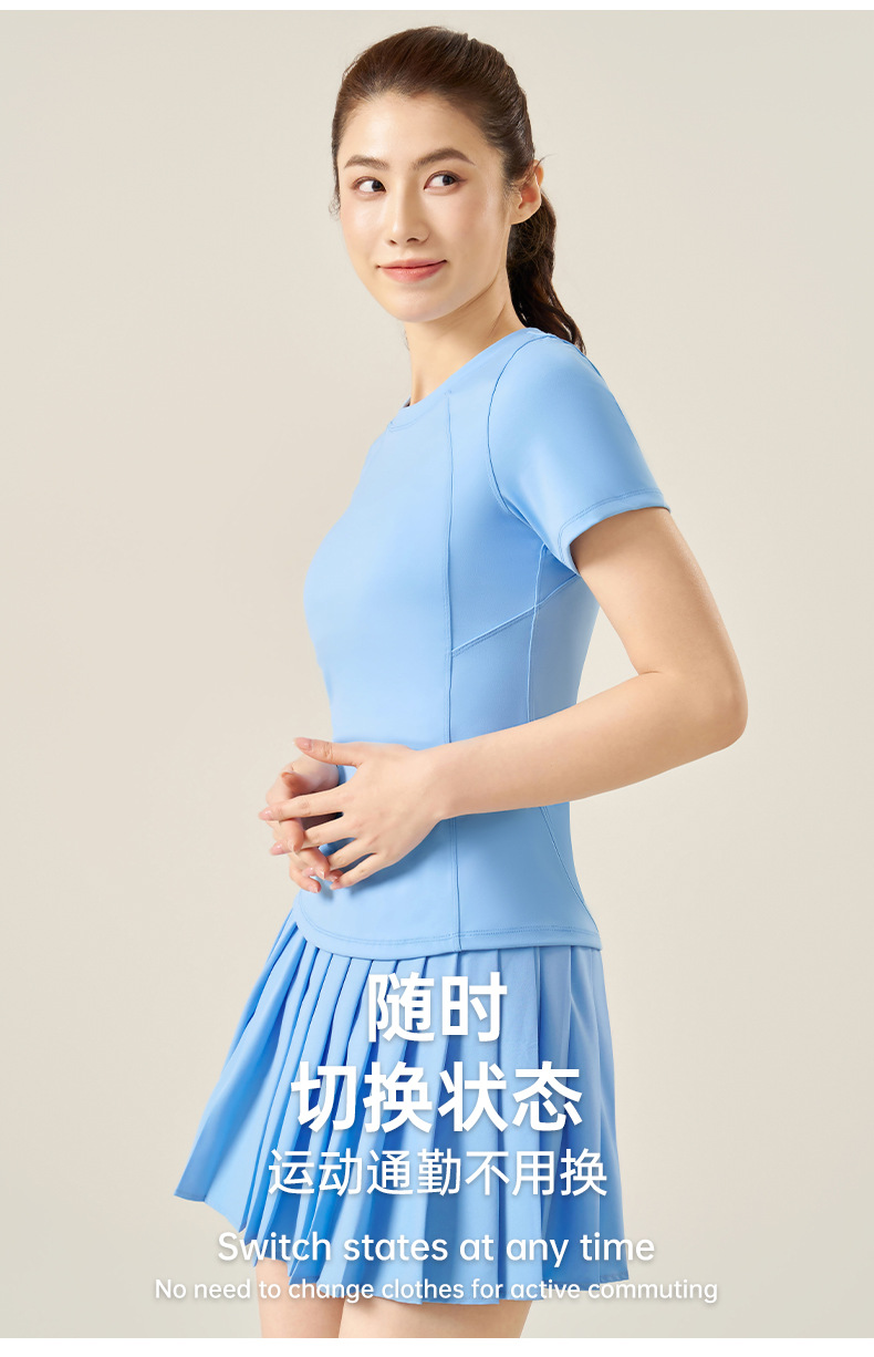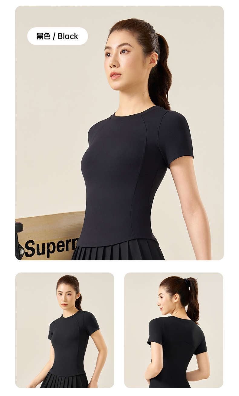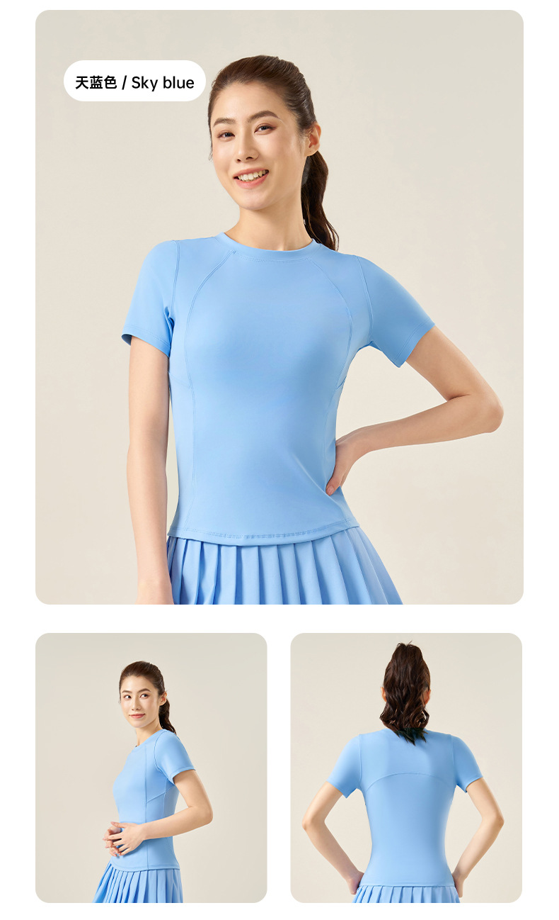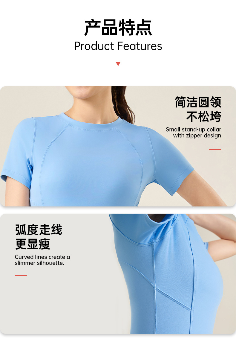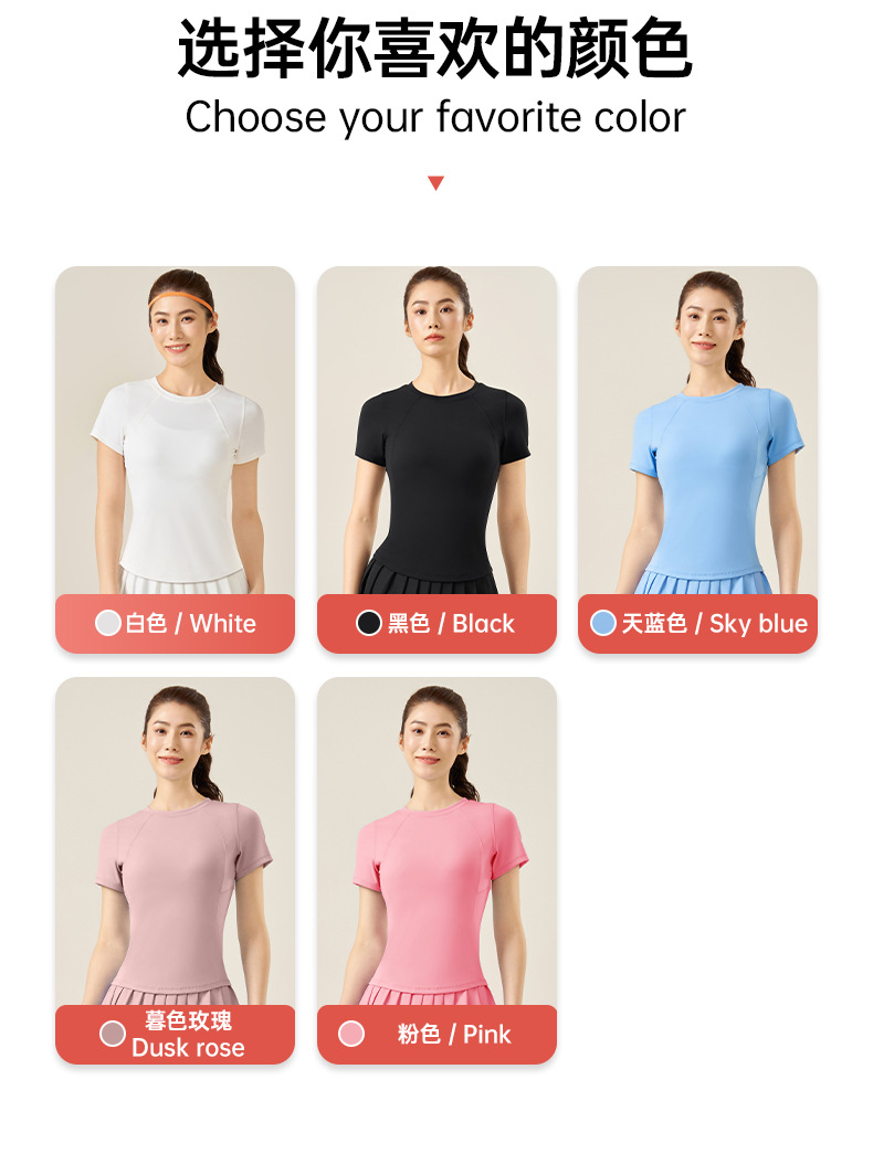 여름 요가 의류 스포츠 러닝 피트니스 의류 라운드 넥 반팔 티셔츠 얇은 슬리밍 요가 탑 여성 핑크스토어 가기