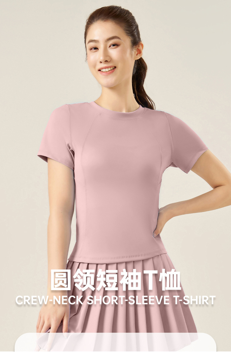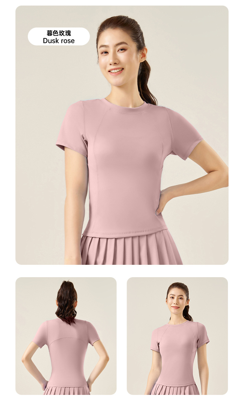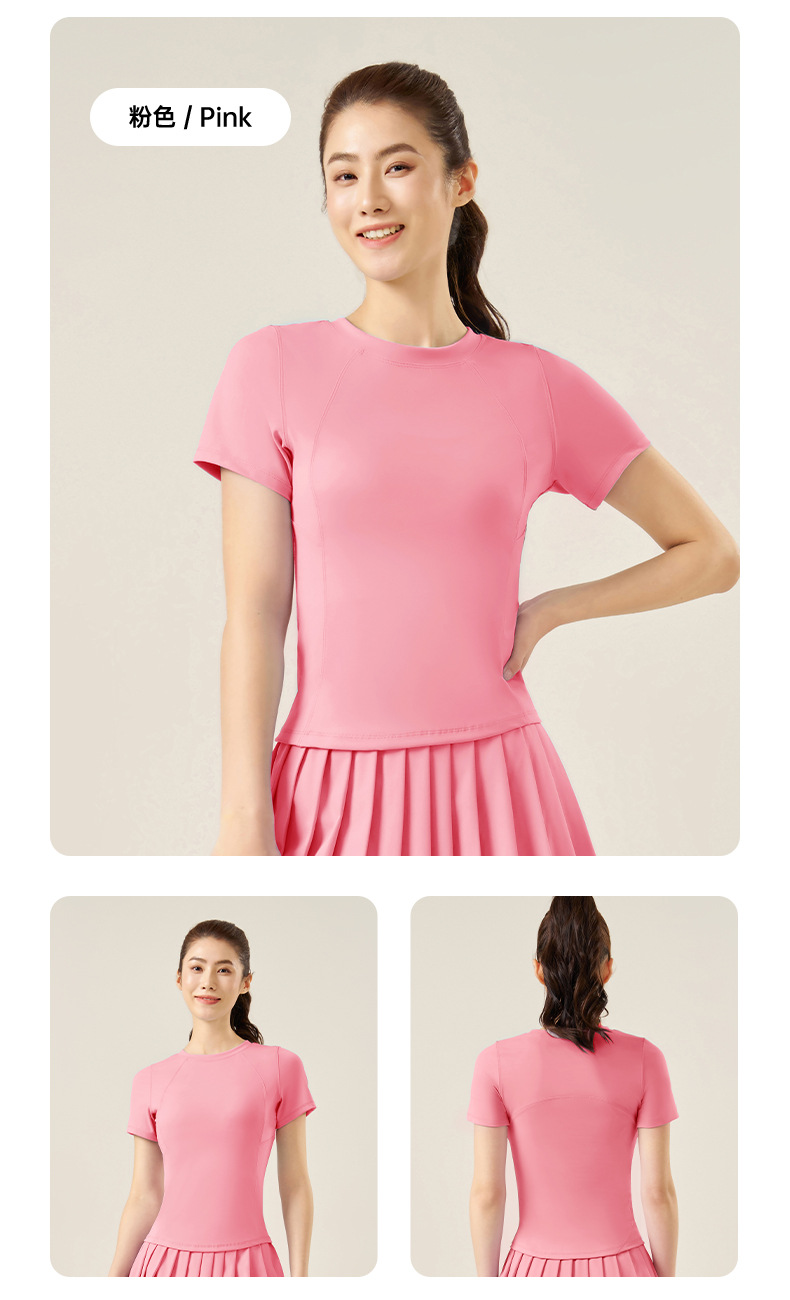 여름 요가 의류 스포츠 러닝 피트니스 의류 라운드 넥 반팔 티셔츠 얇은 슬리밍 요가 탑 여성 핑크