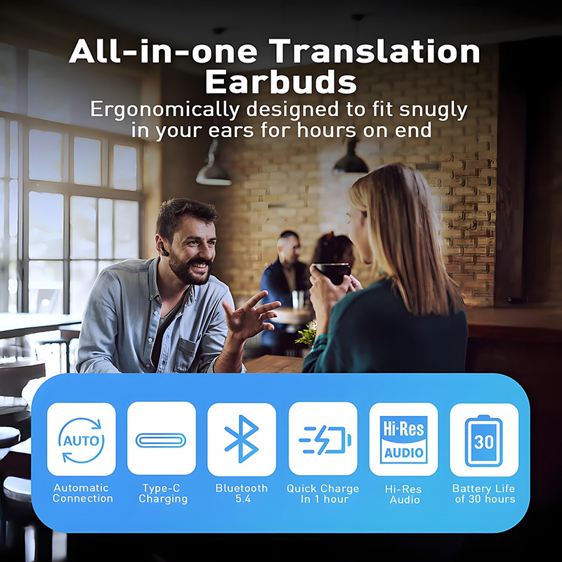 국경 간 새로운 지능형 ai 실시간 번역 블루투스 헤드셋 144 다국어 번역 헤드셋 재고스토어 가기
