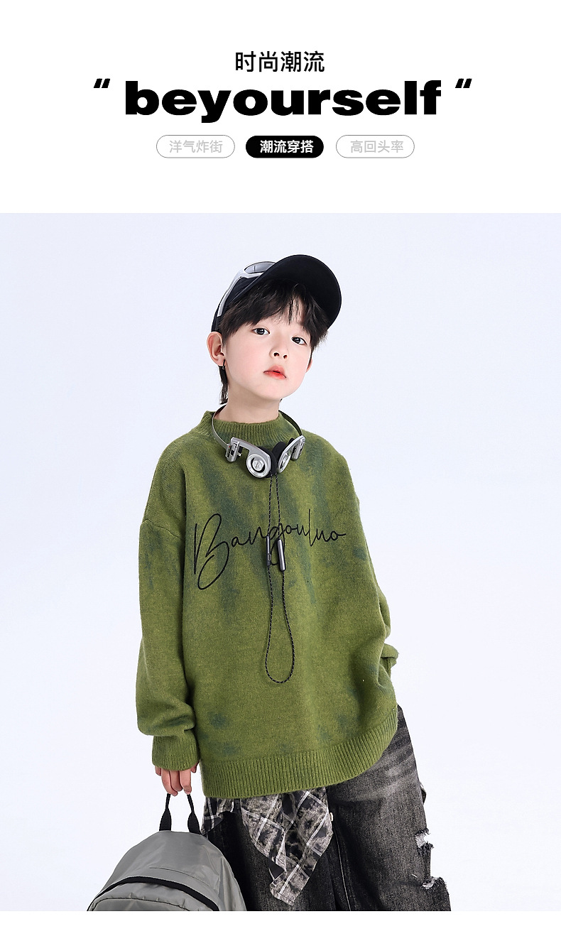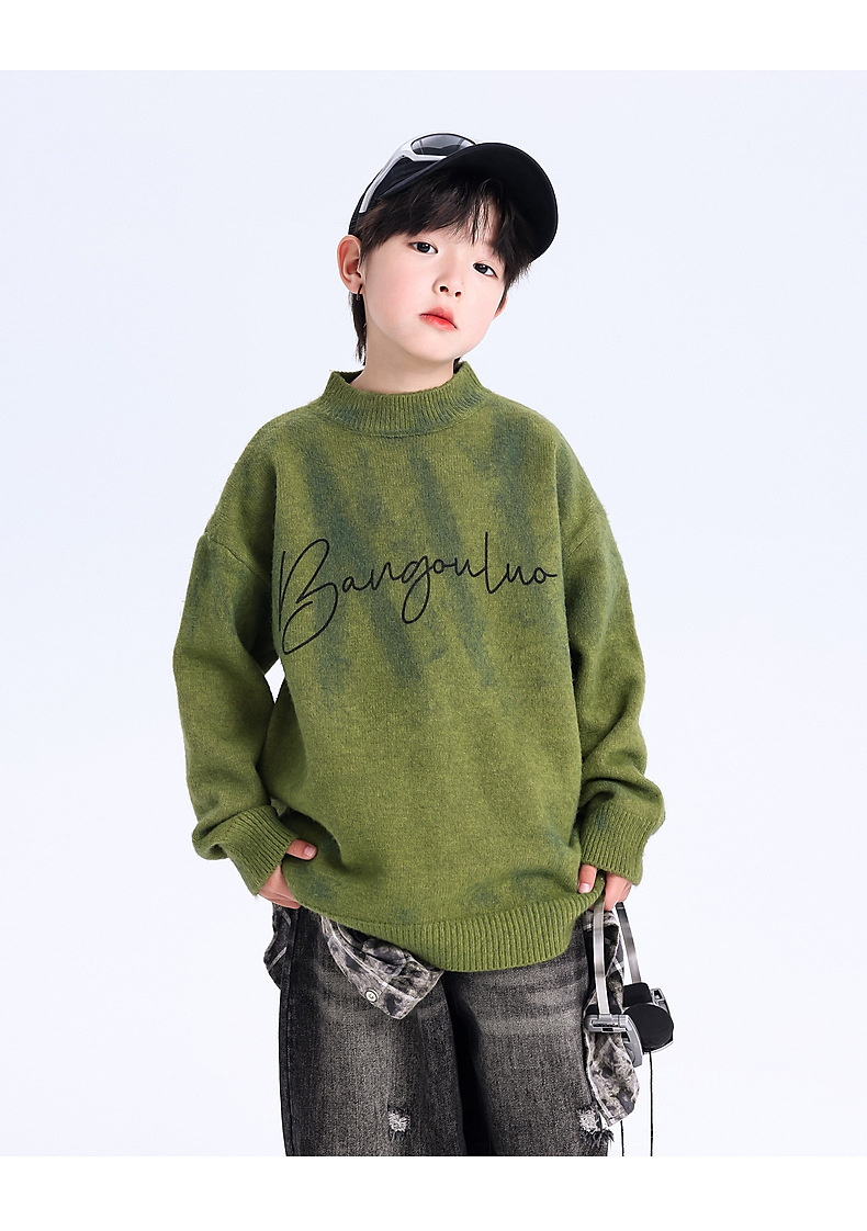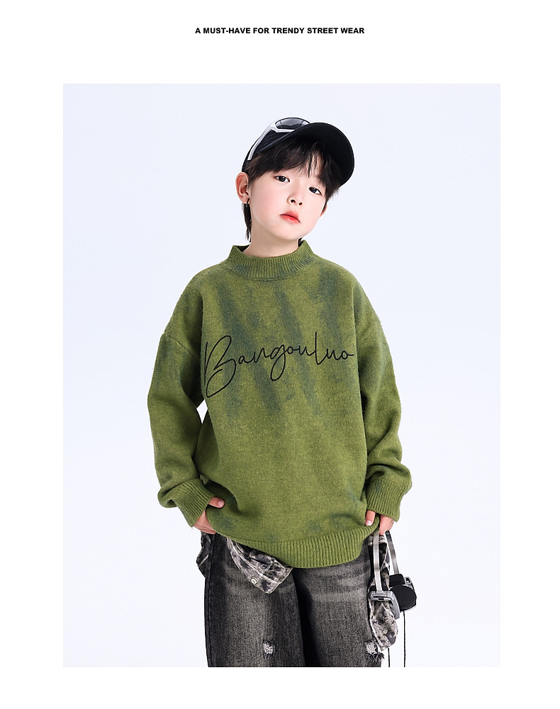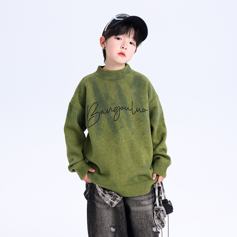 소년 가을, 겨울 유행 브랜드 하프 터틀넥 루즈 스웨터 2024 새로운 어린이 소년 겨울 스트리트 니트 스웨터스토어 가기