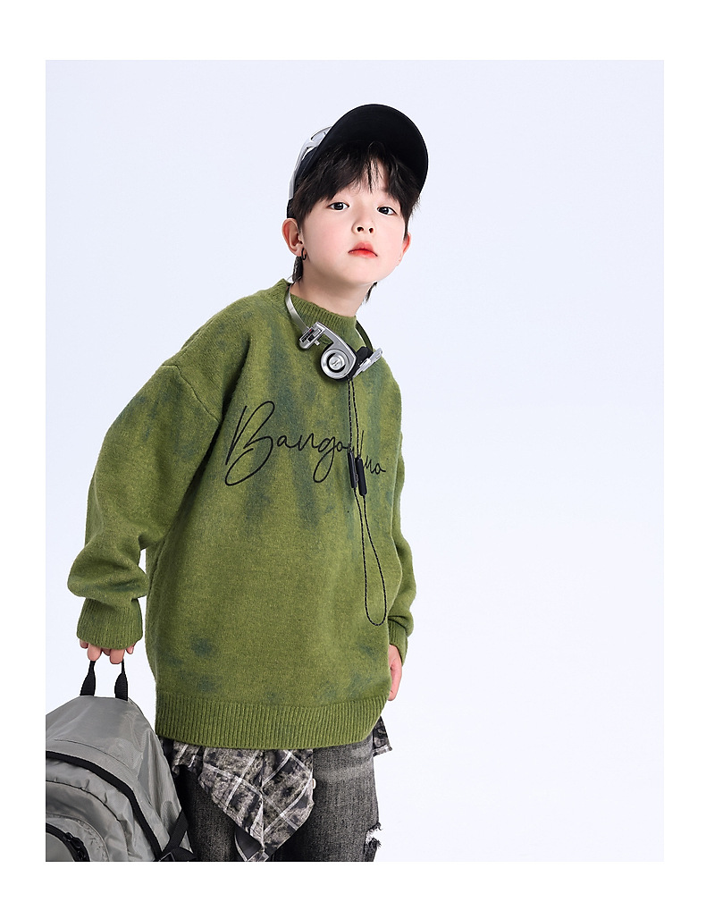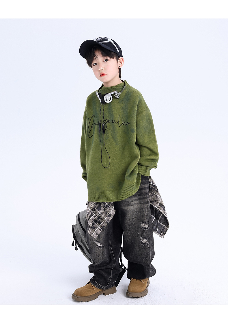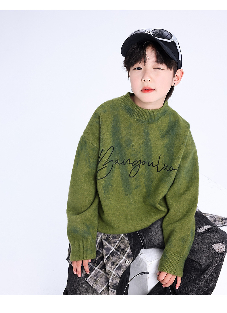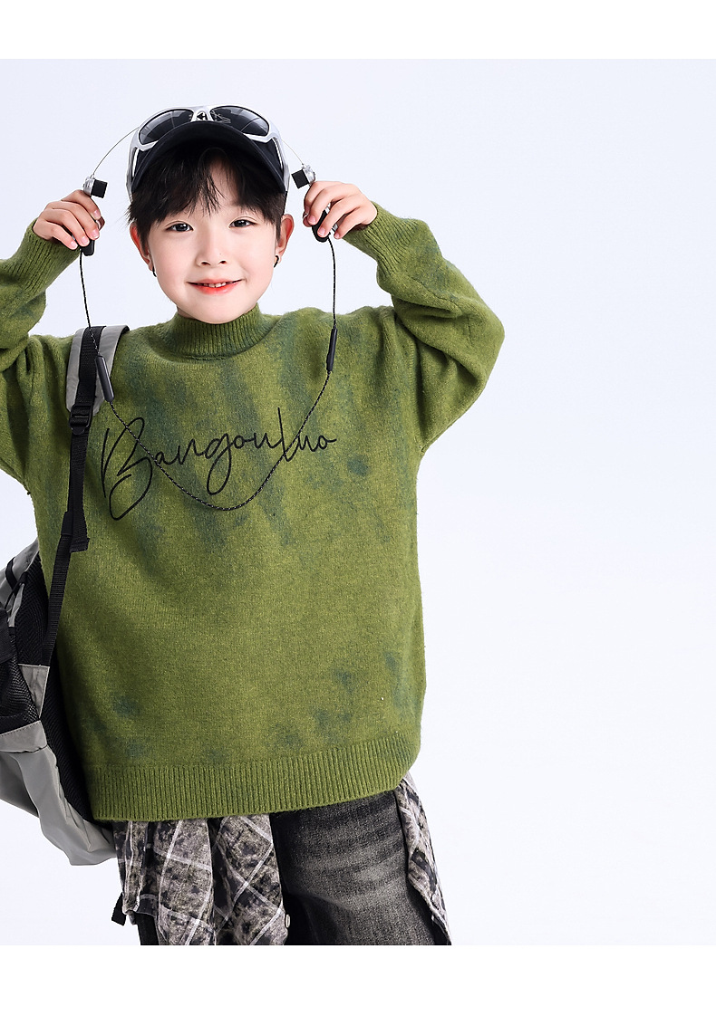 소년 가을, 겨울 유행 브랜드 하프 터틀넥 루즈 스웨터 2024 새로운 어린이 소년 겨울 스트리트 니트 스웨터스토어 가기