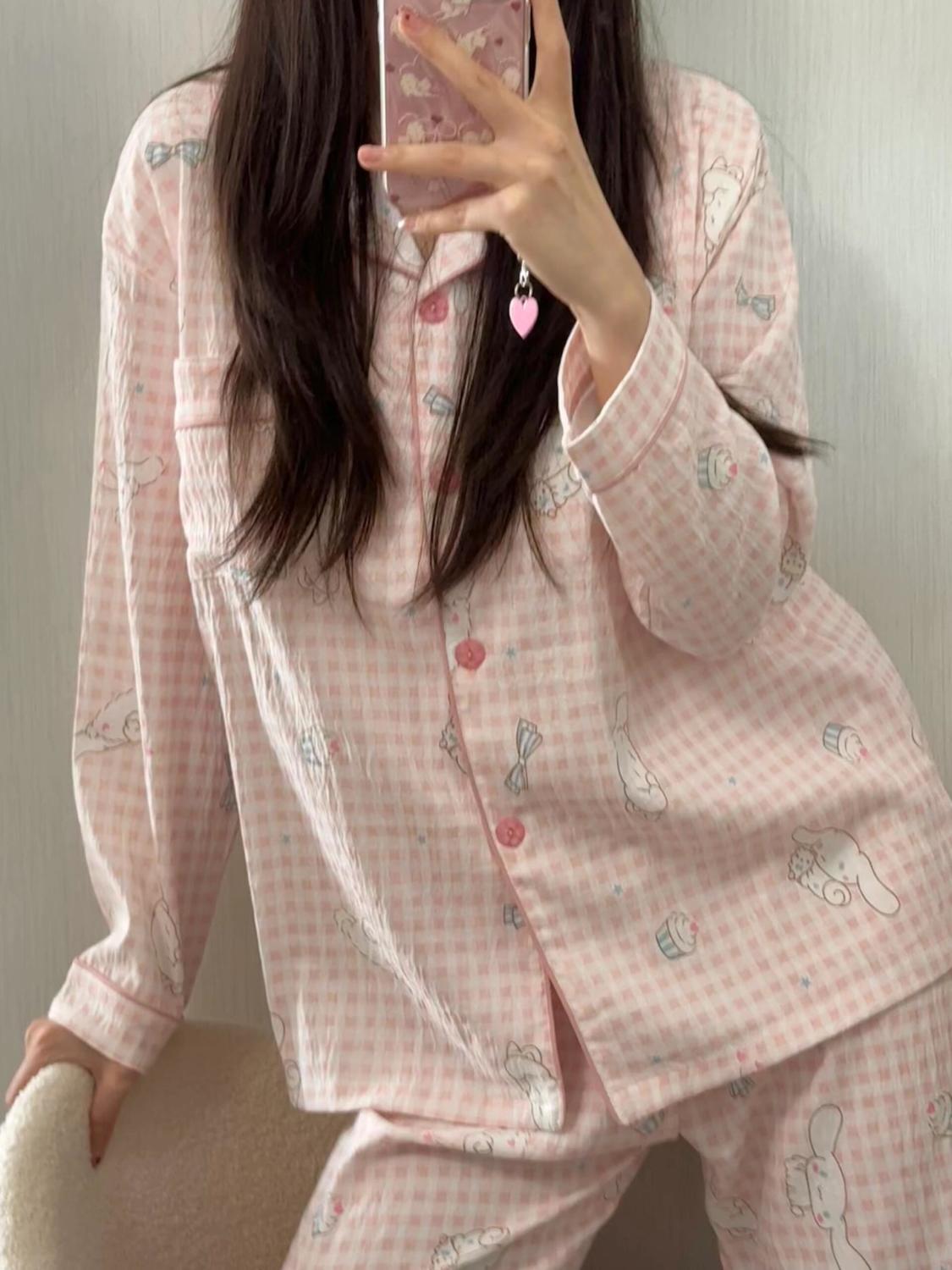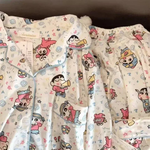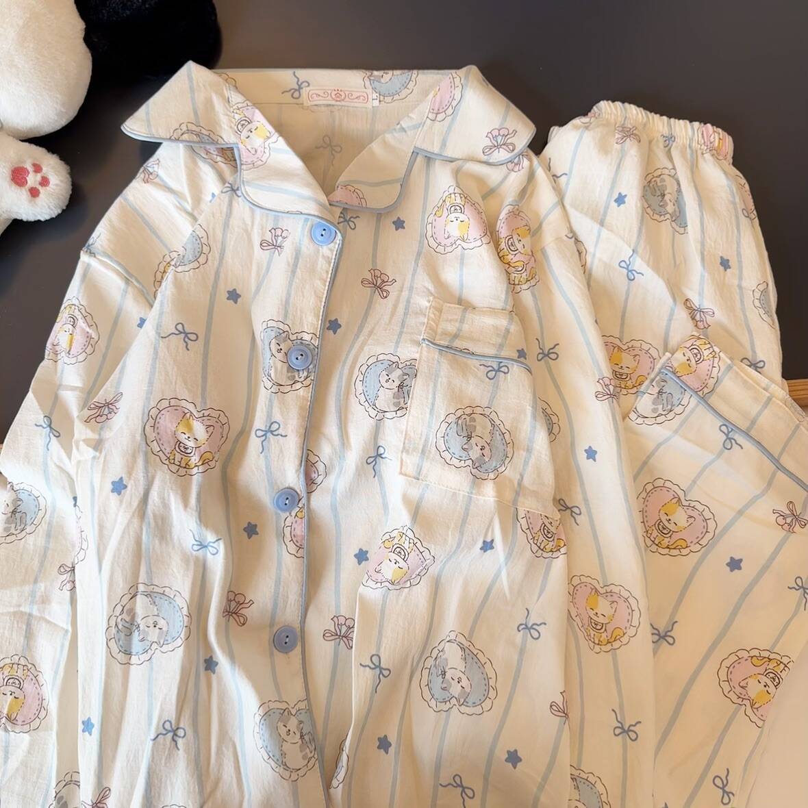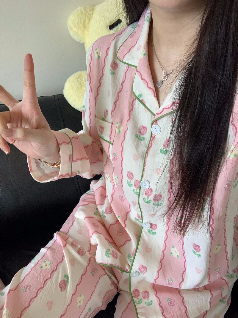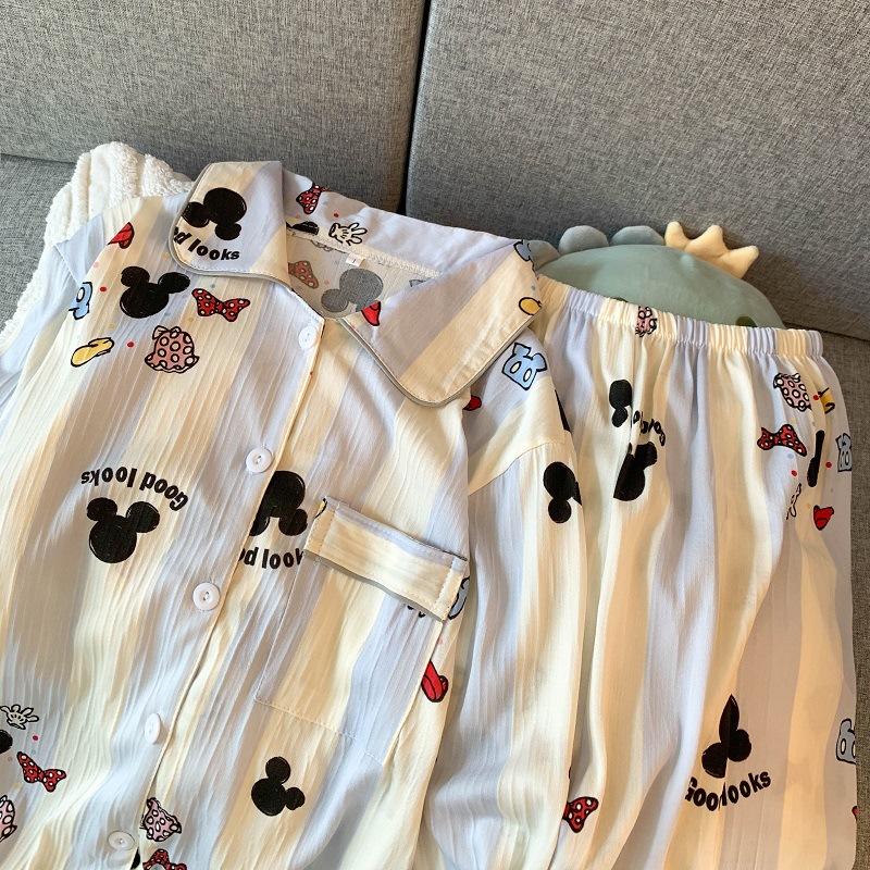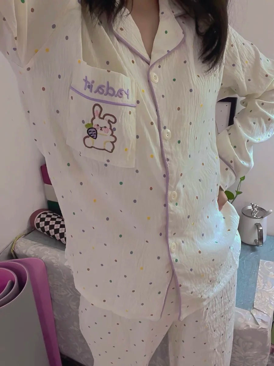 블루 스트라이프 펭귄 잠옷 여성의 봄과 가을 2024 새로운 귀여운 만화 긴 소매 바지 느슨한 외부 착용 홈 옷스토어 가기