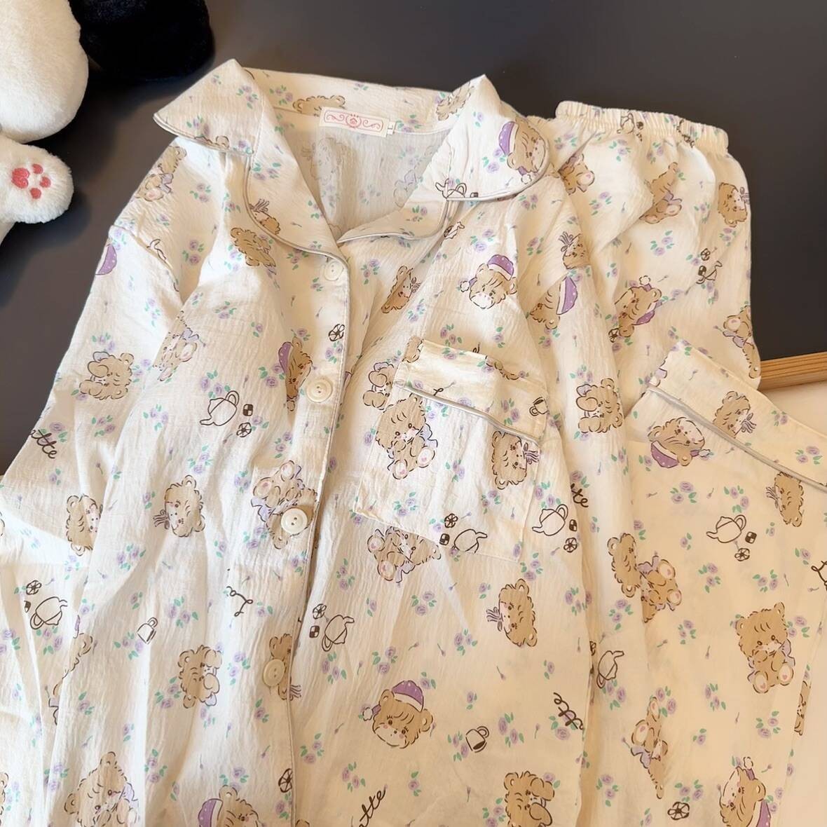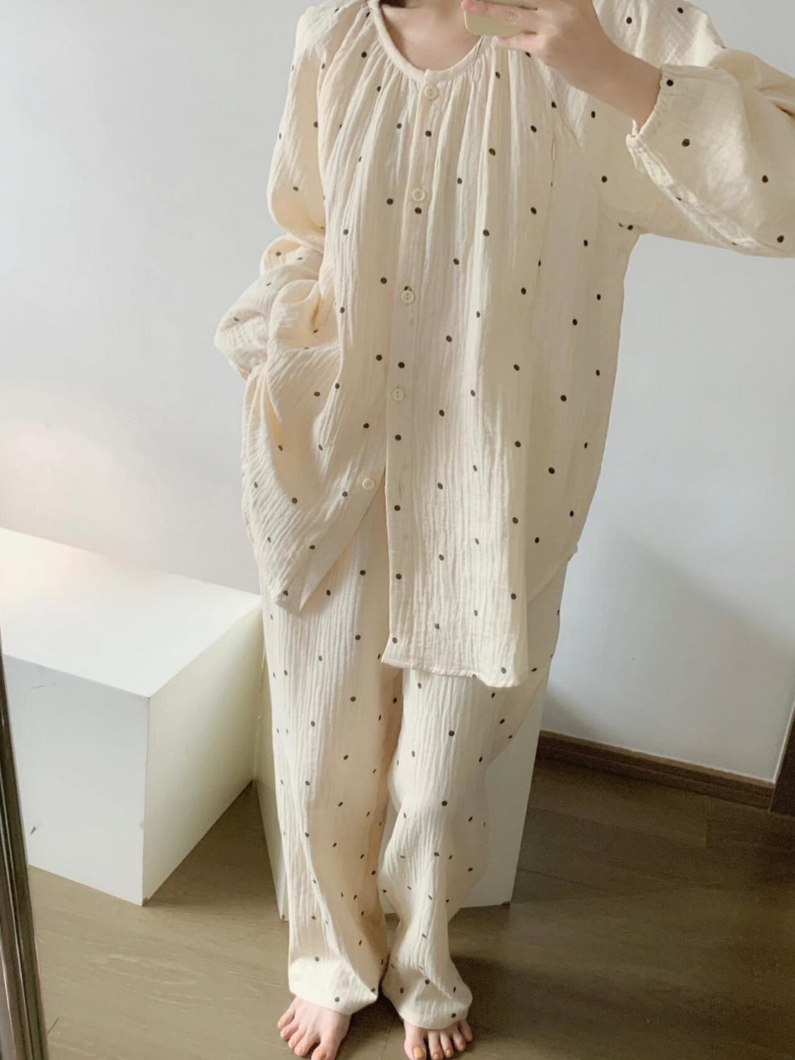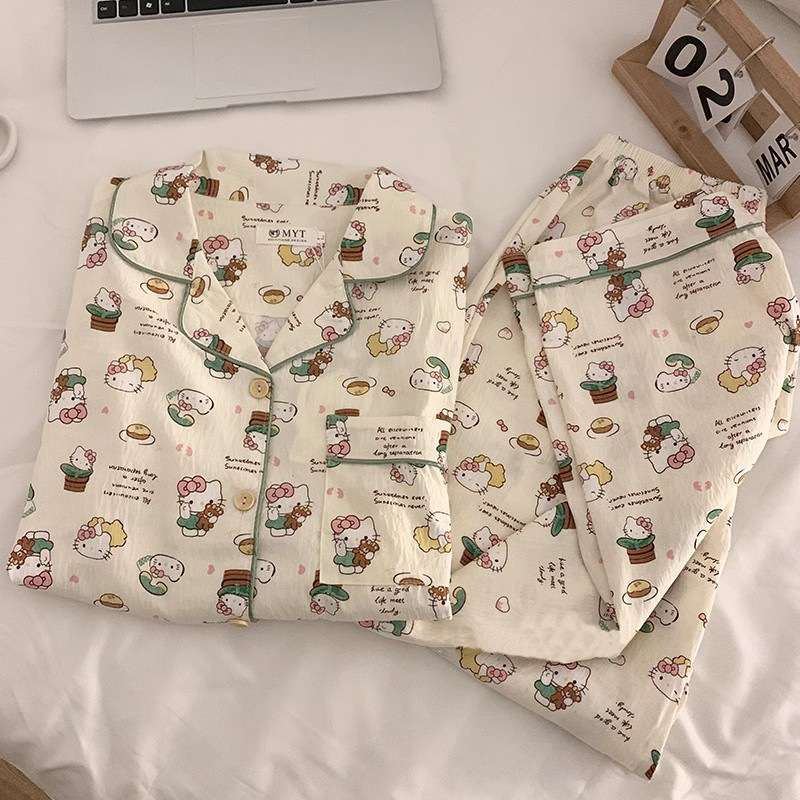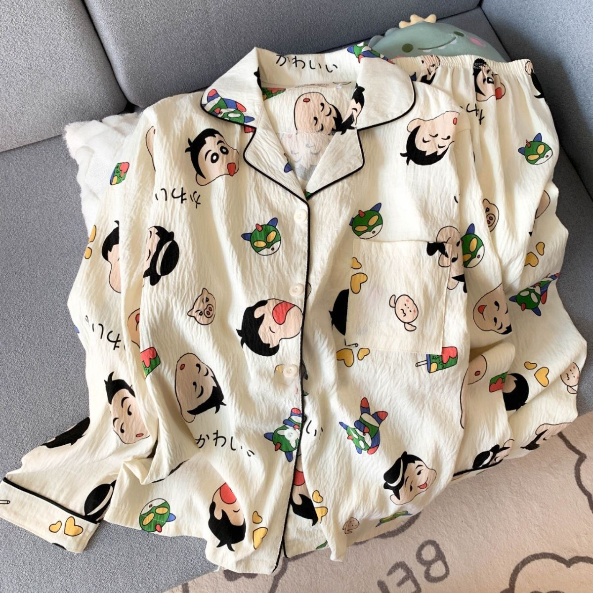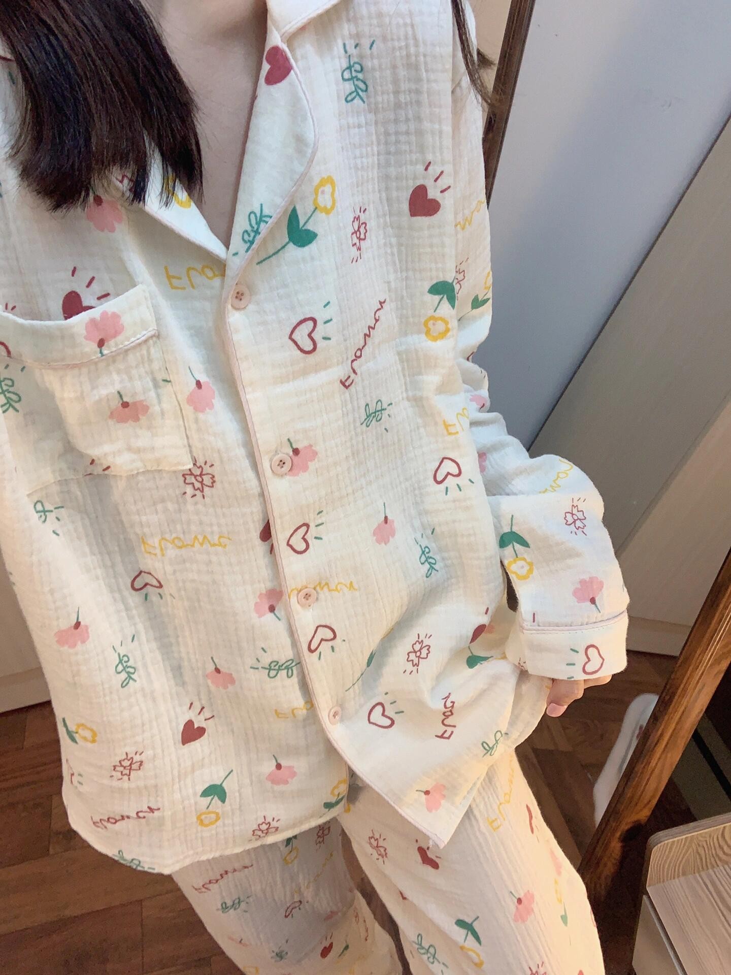 블루 스트라이프 펭귄 잠옷 여성의 봄과 가을 2024 새로운 귀여운 만화 긴 소매 바지 느슨한 외부 착용 홈 옷스토어 가기