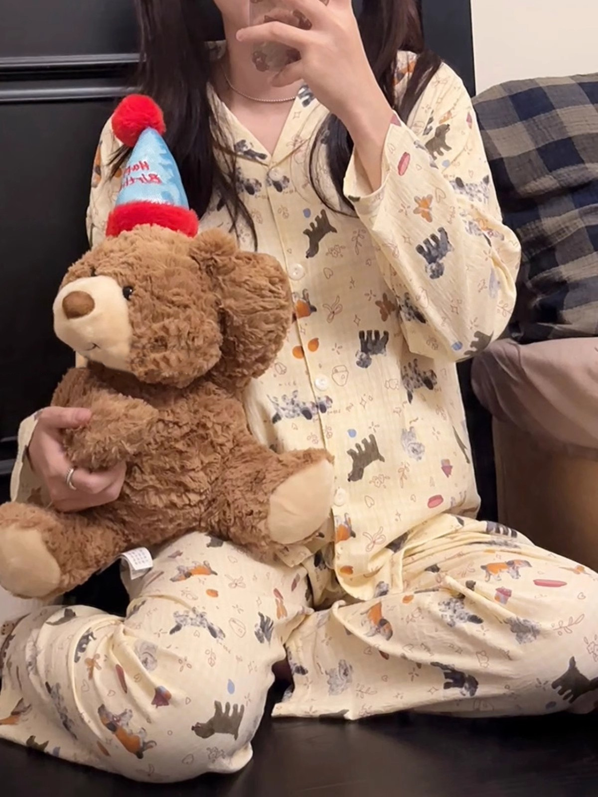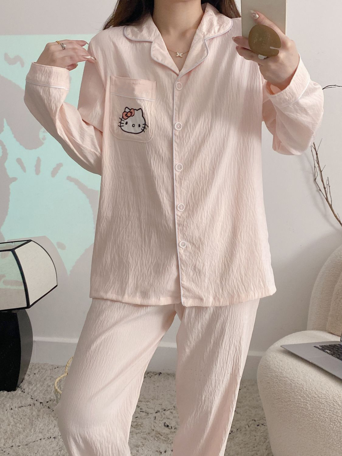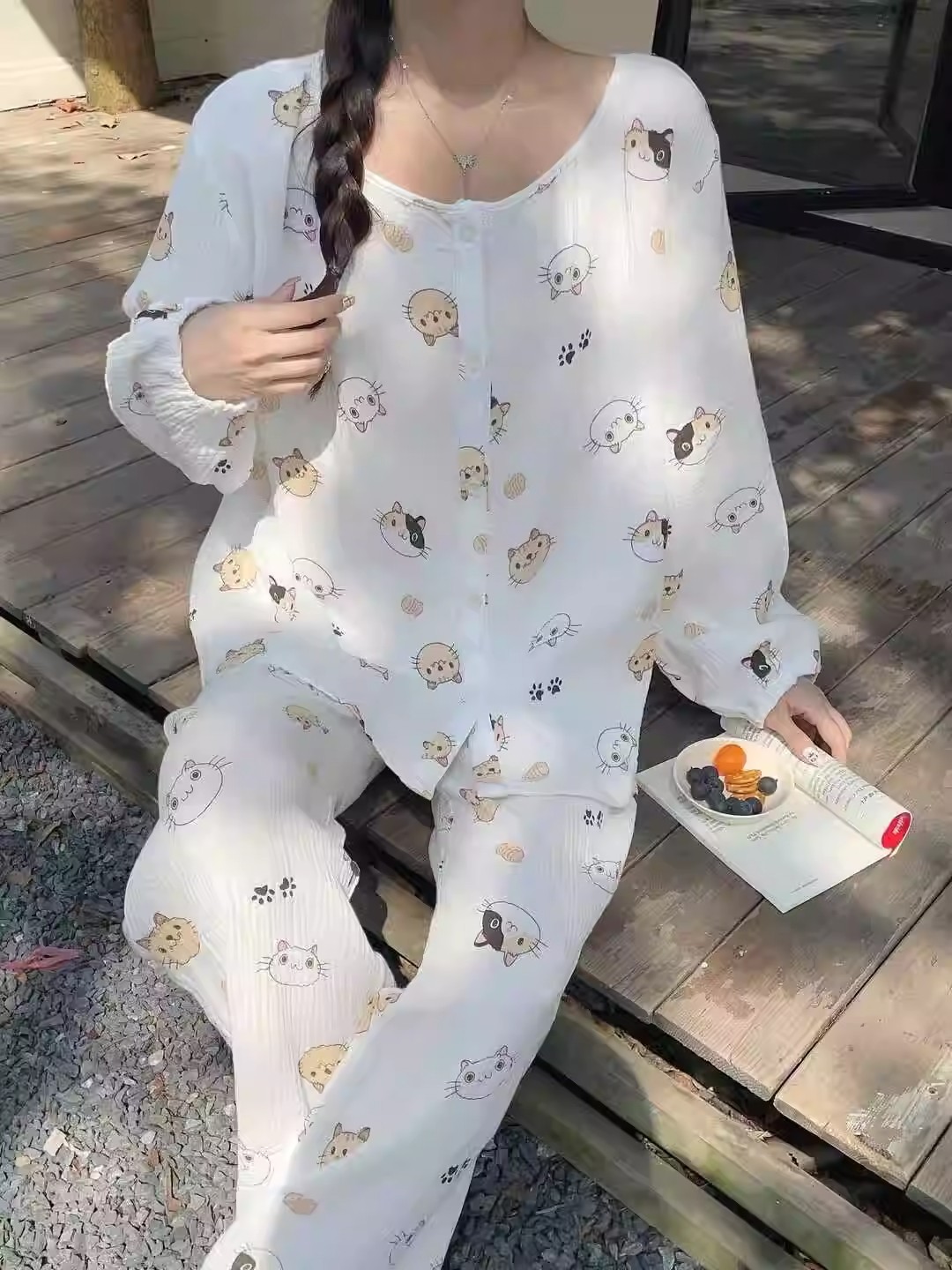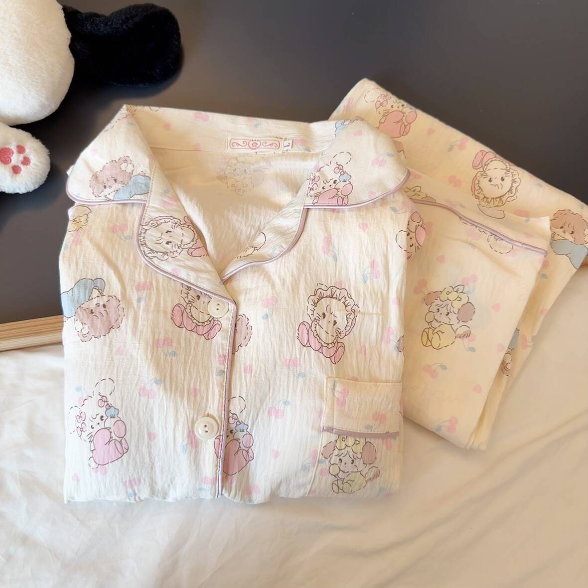 블루 스트라이프 펭귄 잠옷 여성의 봄과 가을 2024 새로운 귀여운 만화 긴 소매 바지 느슨한 외부 착용 홈 옷스토어 가기