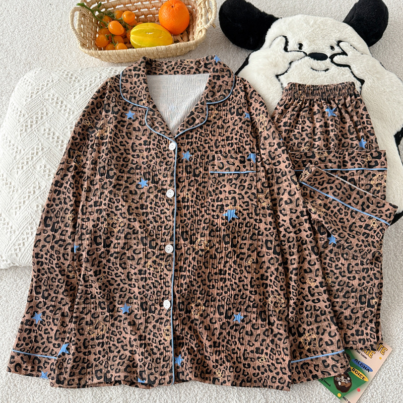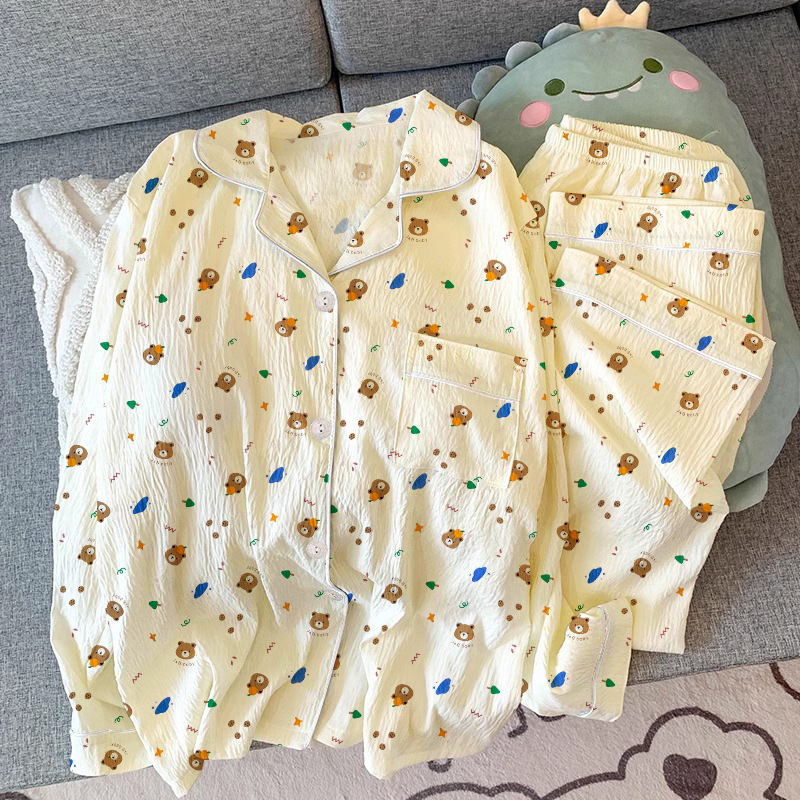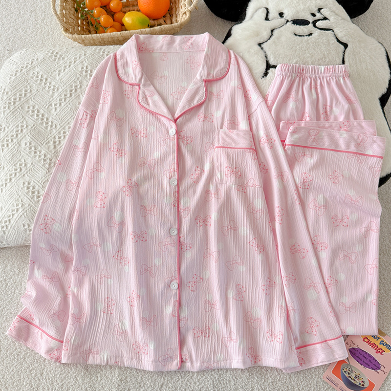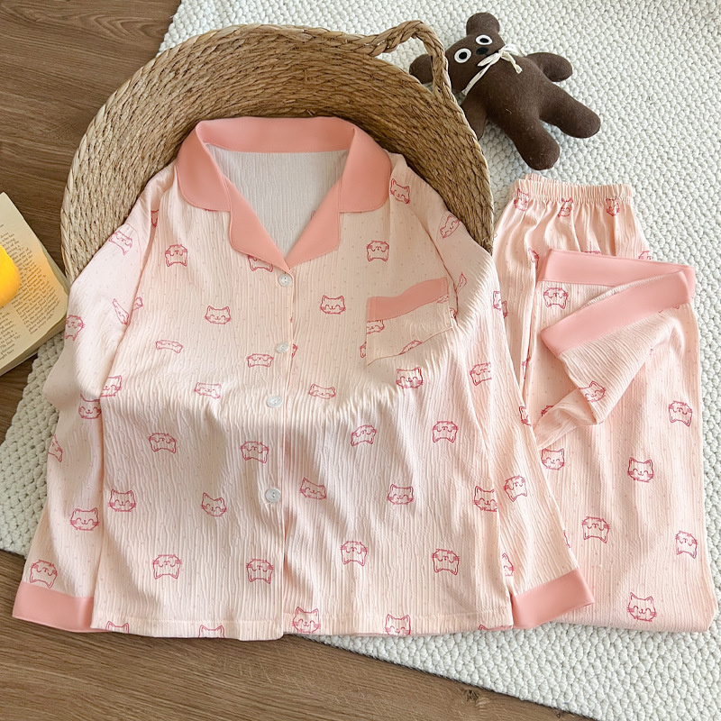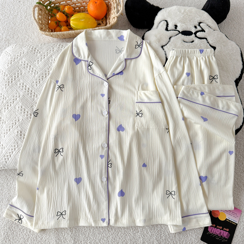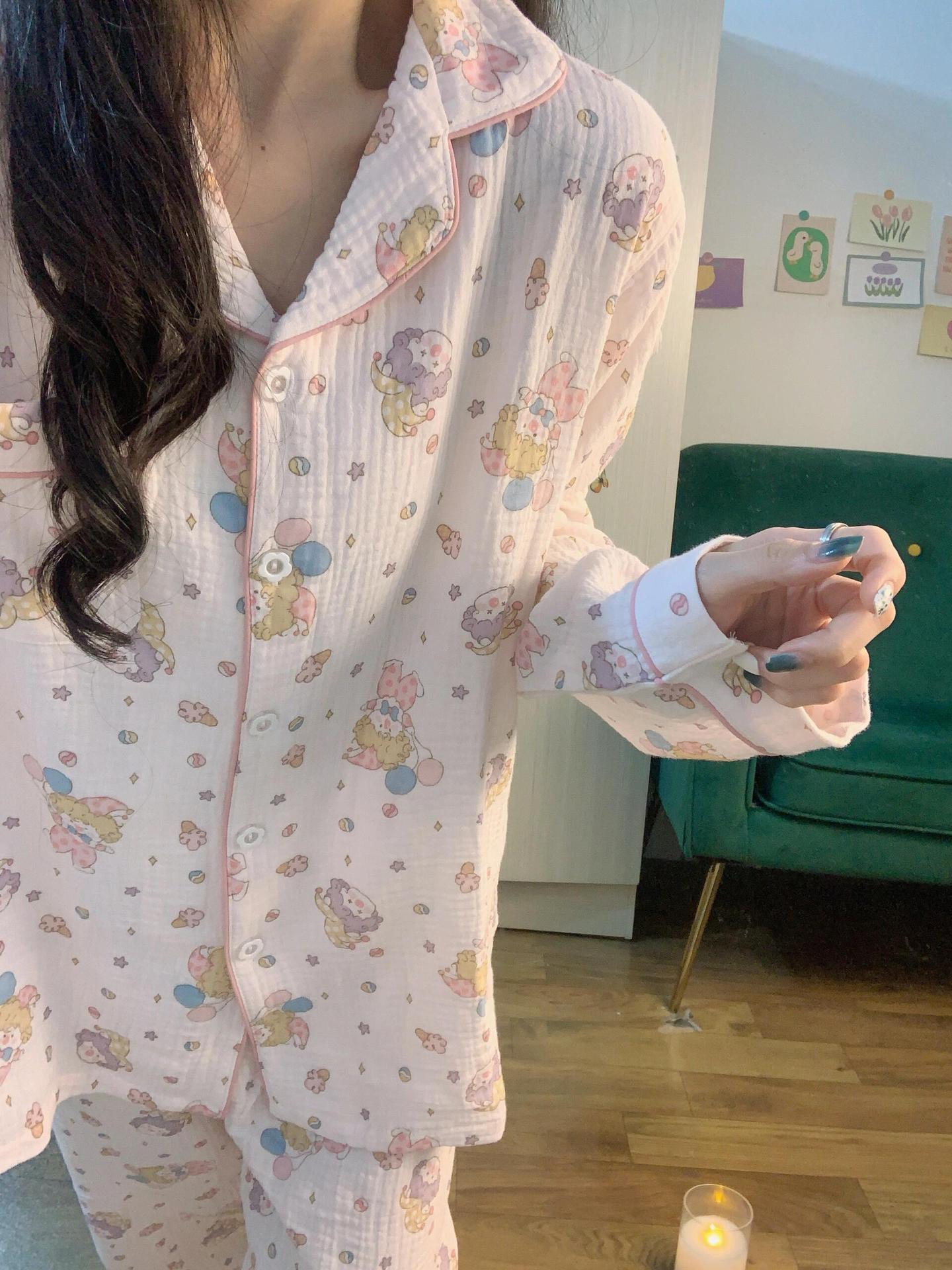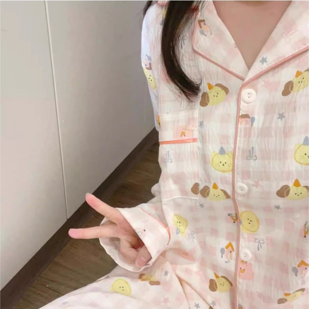 블루 스트라이프 펭귄 잠옷 여성의 봄과 가을 2024 새로운 귀여운 만화 긴 소매 바지 느슨한 외부 착용 홈 옷
