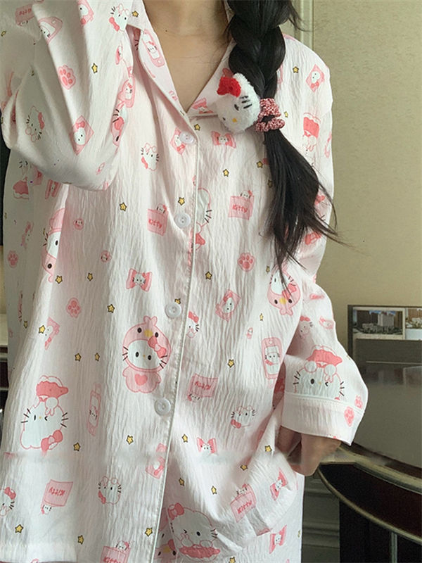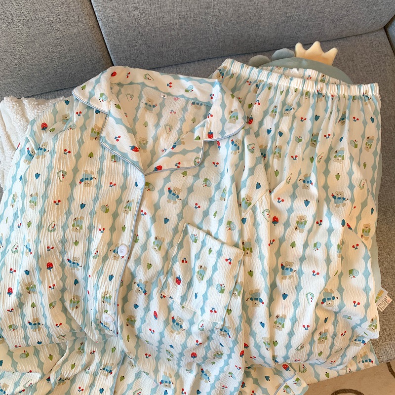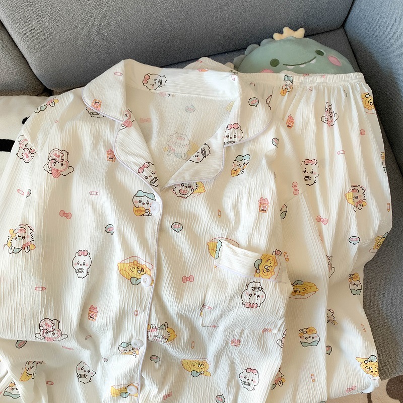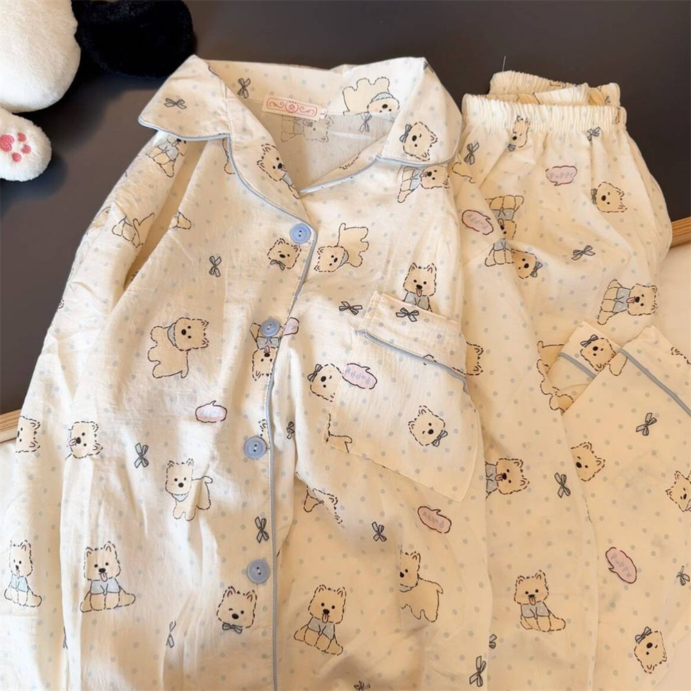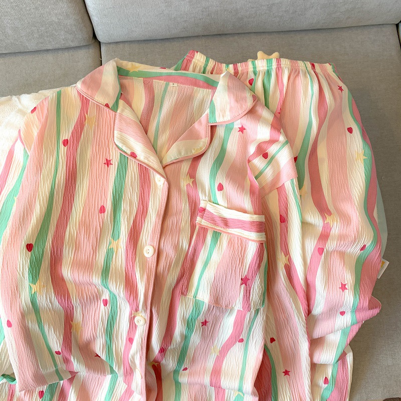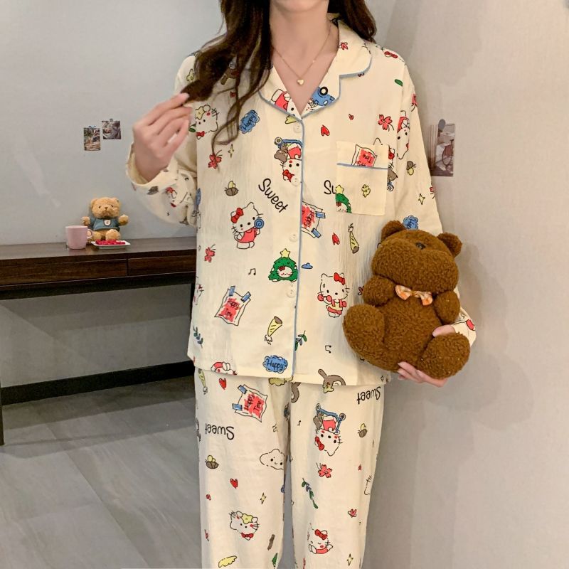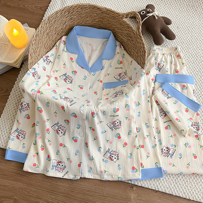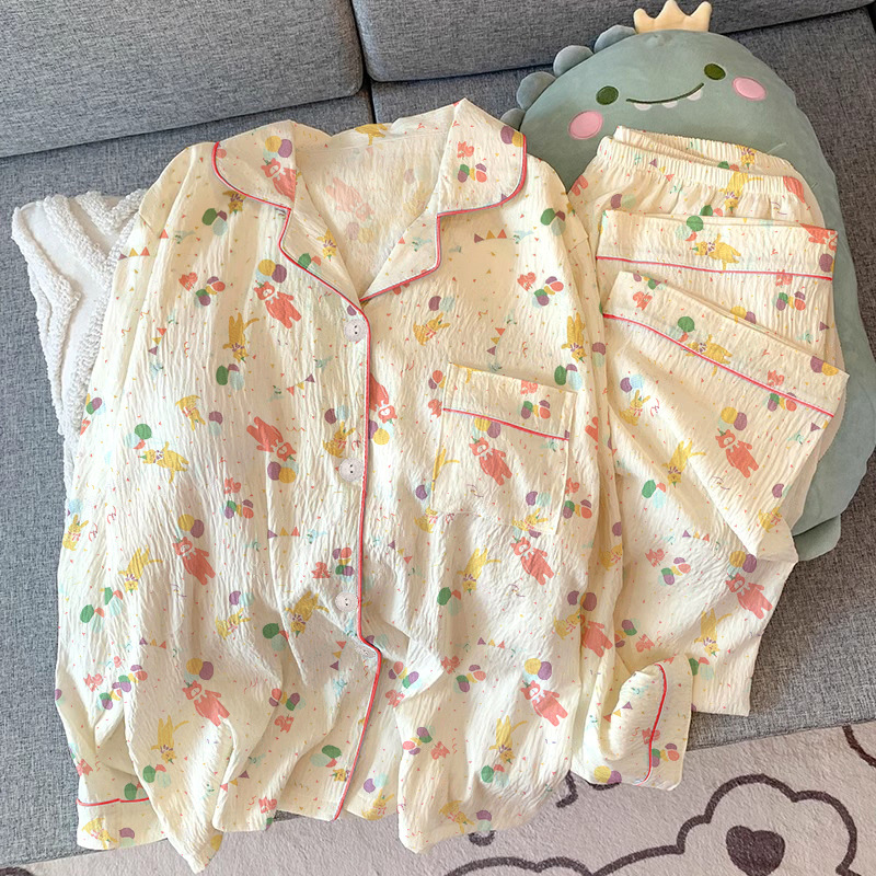 블루 스트라이프 펭귄 잠옷 여성의 봄과 가을 2024 새로운 귀여운 만화 긴 소매 바지 느슨한 외부 착용 홈 옷