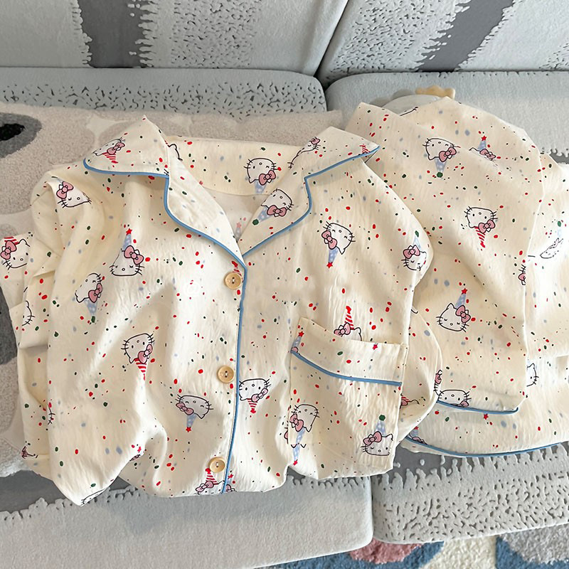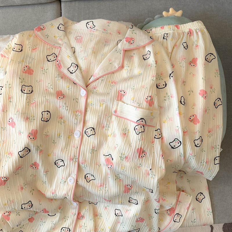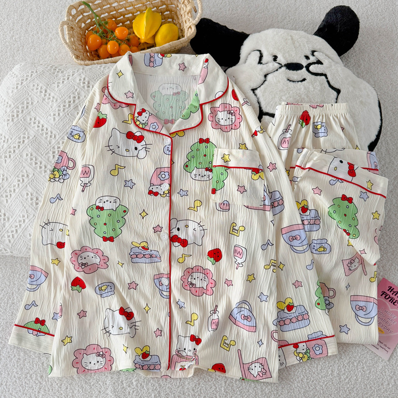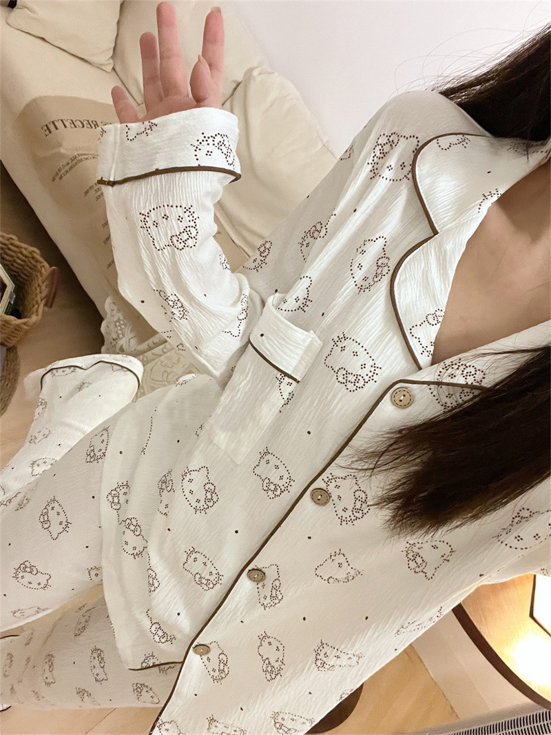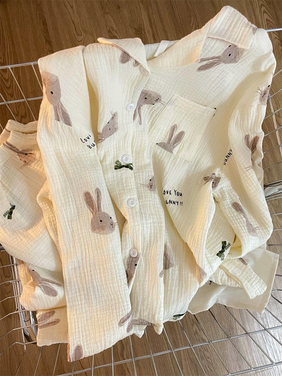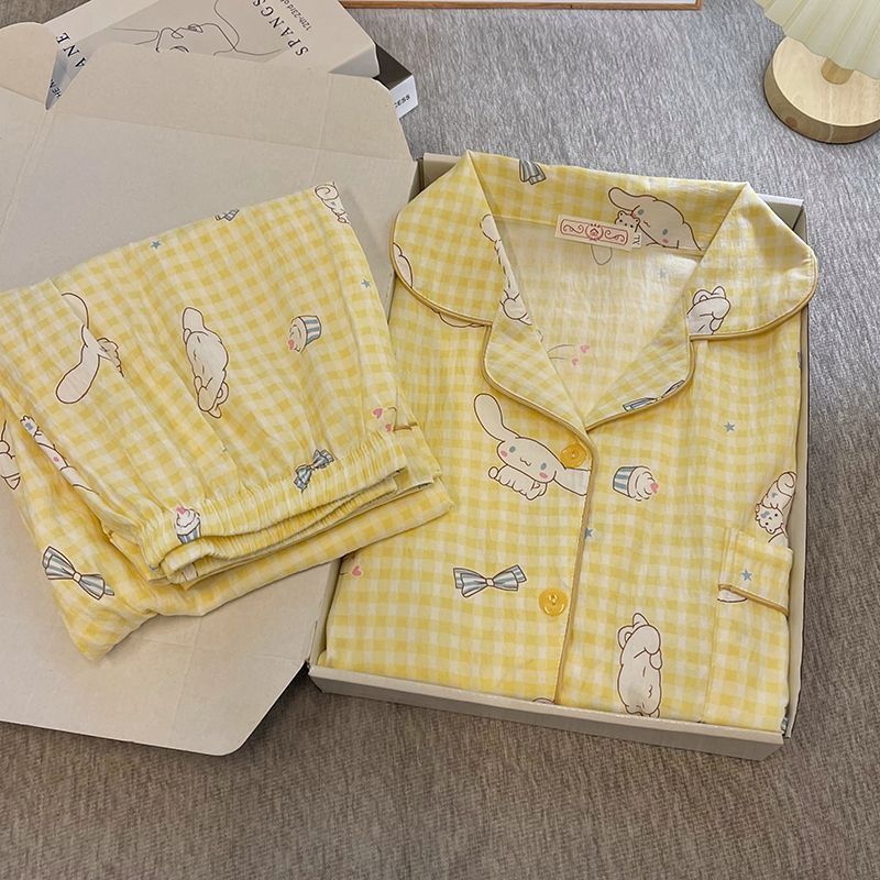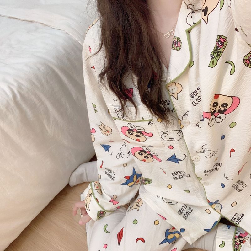 블루 스트라이프 펭귄 잠옷 여성의 봄과 가을 2024 새로운 귀여운 만화 긴 소매 바지 느슨한 외부 착용 홈 옷