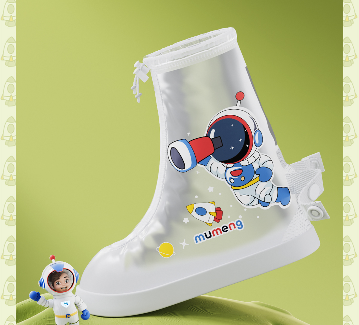 남학생과 여학생을위한 Mu Meng 어린이 비 신발 커버 가을 및 겨울 방수 발 커버 미끄럼 방지 아기 학생 물 신발 장화
