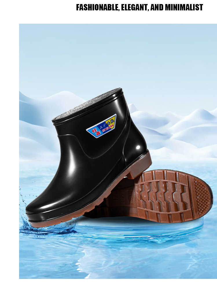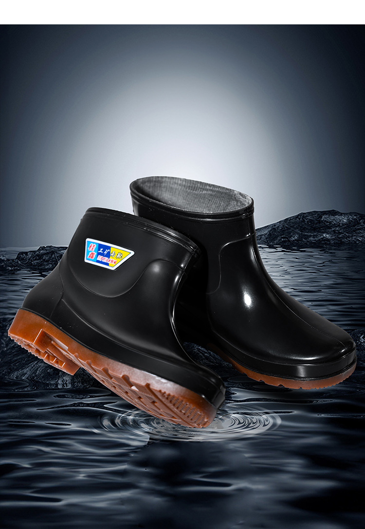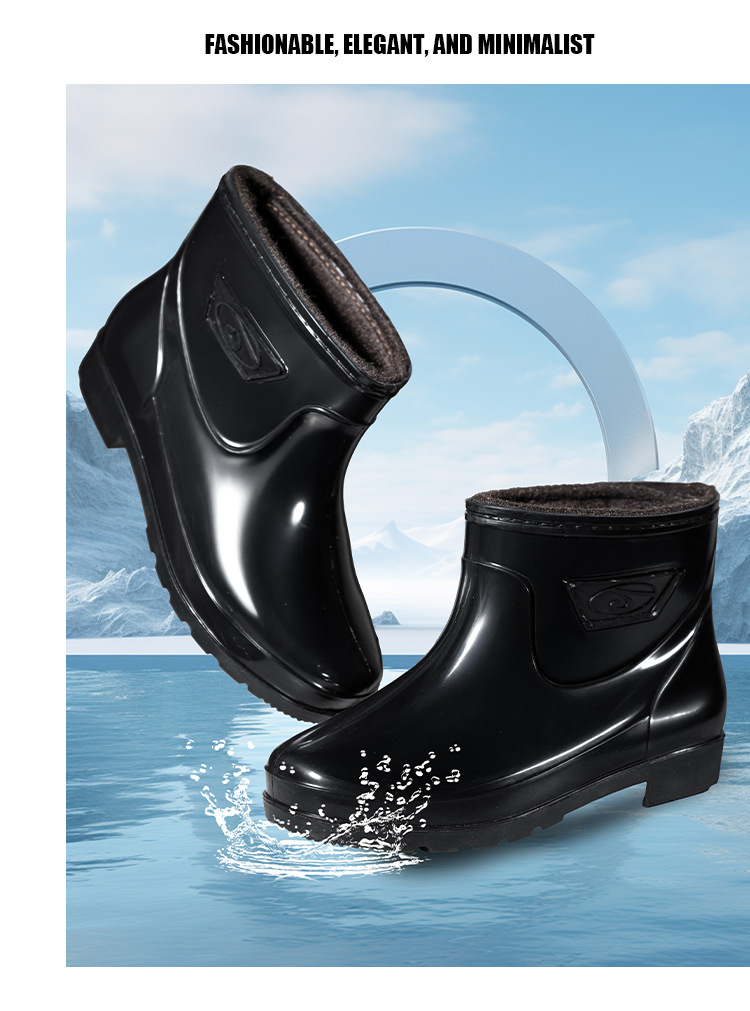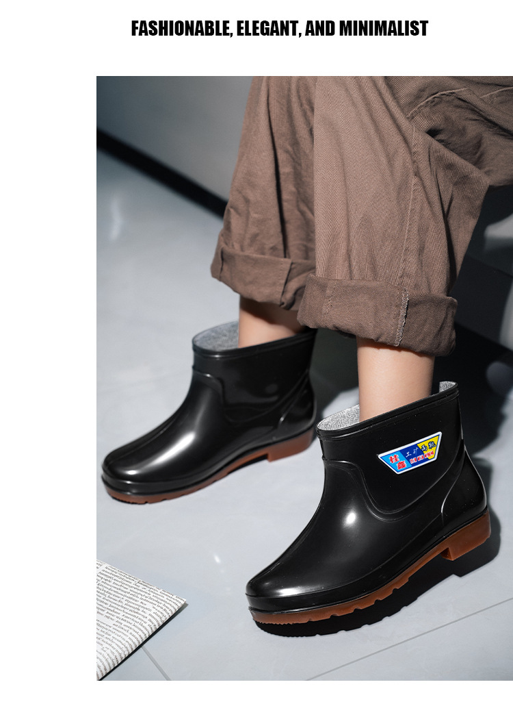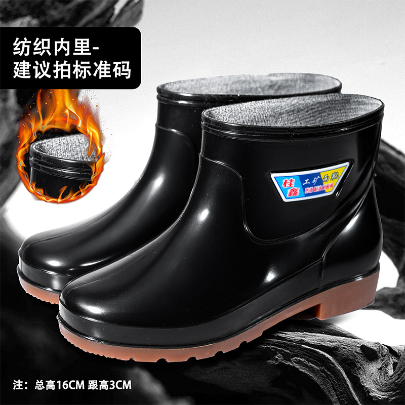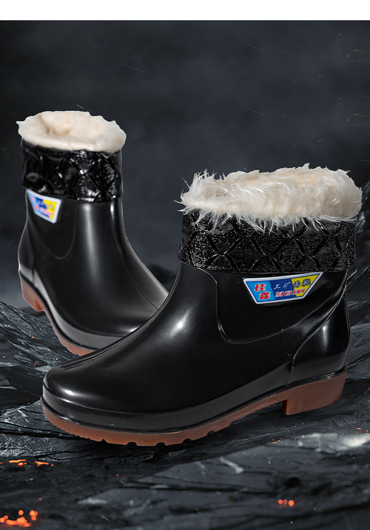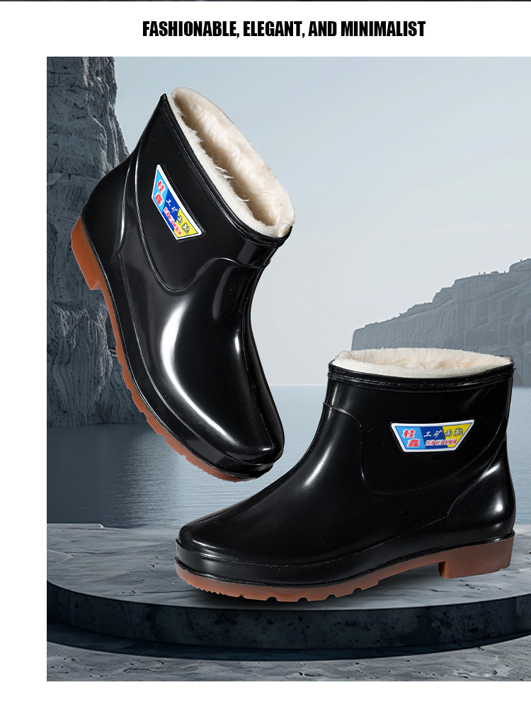 암소 힘줄 밑창이 두꺼운 고정 벨벳 장화 남성용 미끄럼 방지 기모 워터 부츠 건설 현장 낮은 튜브 짧은 튜브 방수 신발