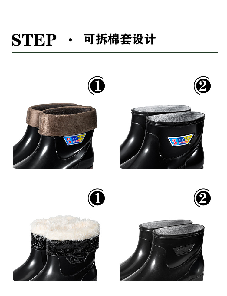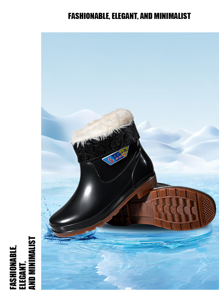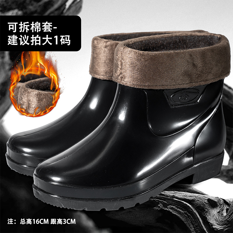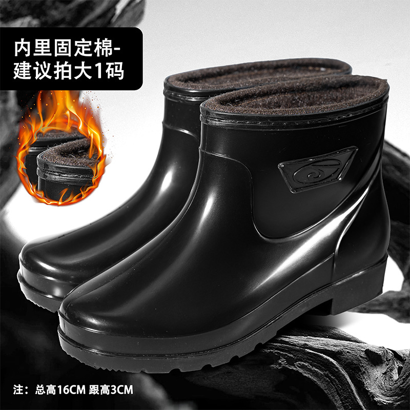 암소 힘줄 밑창이 두꺼운 고정 벨벳 장화 남성용 미끄럼 방지 기모 워터 부츠 건설 현장 낮은 튜브 짧은 튜브 방수 신발스토어 가기