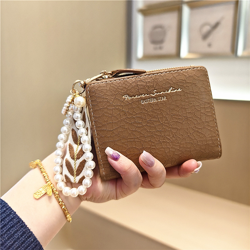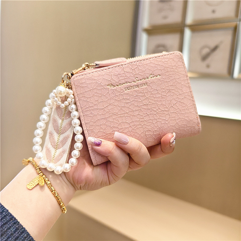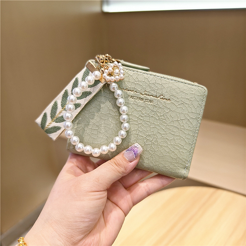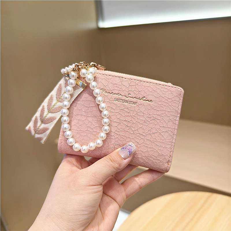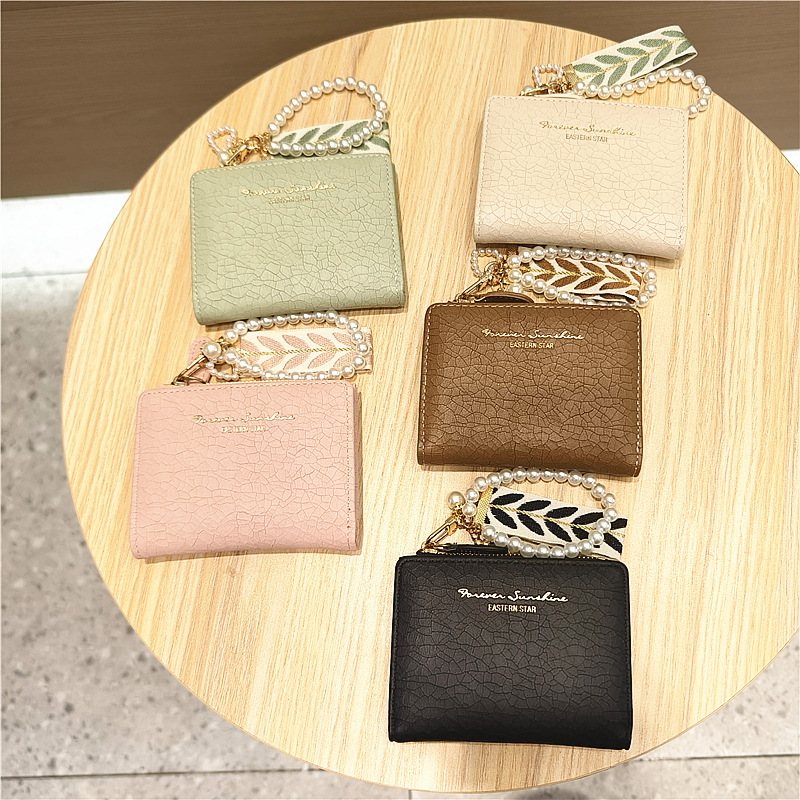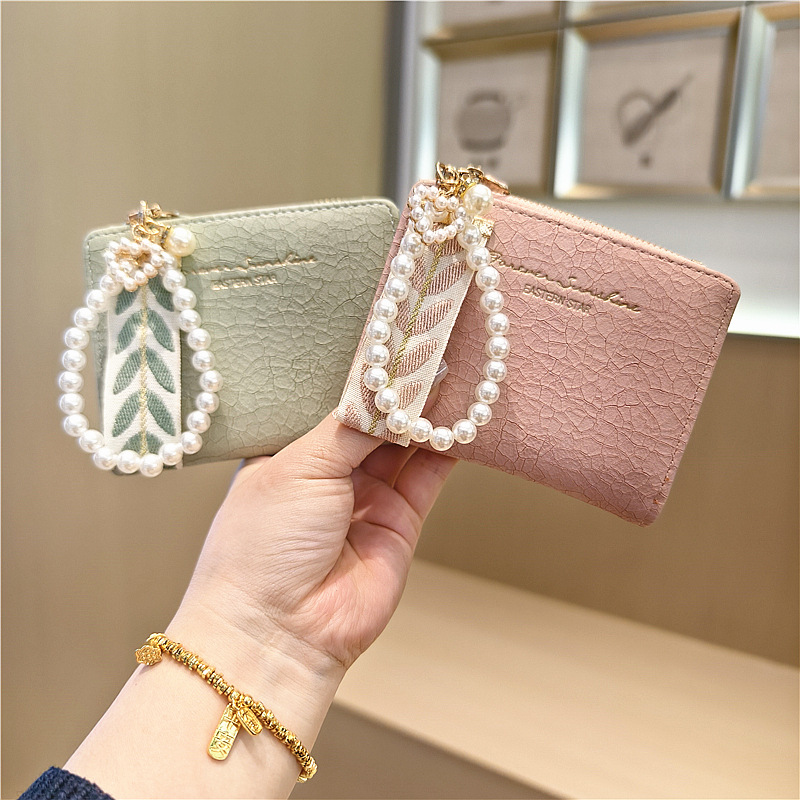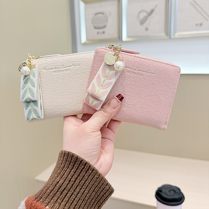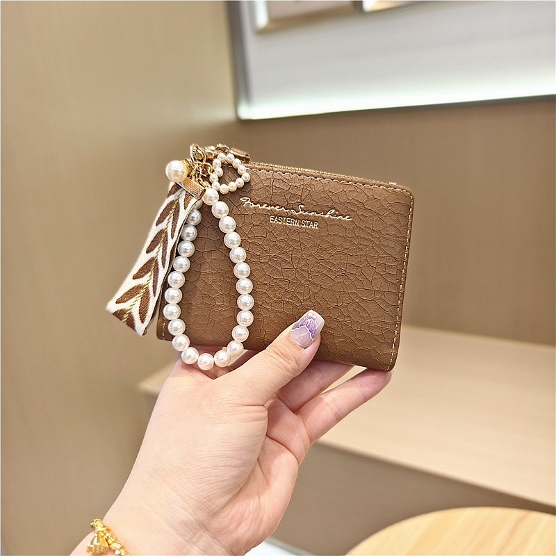 Daini 한국식 새로운 단색 단순 맞춤형 균열 2 배 진주 펜던트 지퍼 버클 짧은 지갑스토어 가기