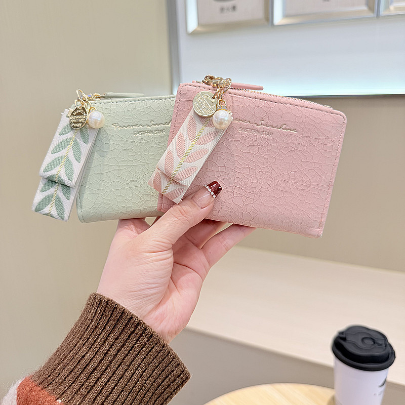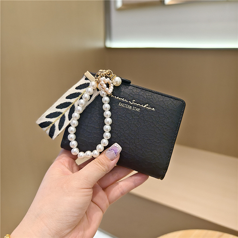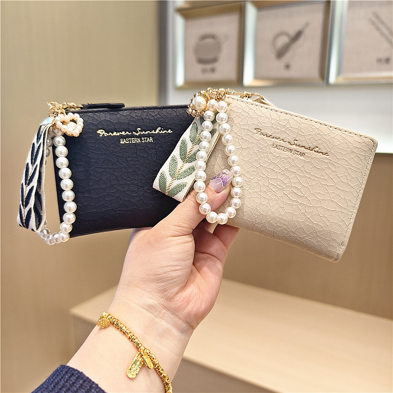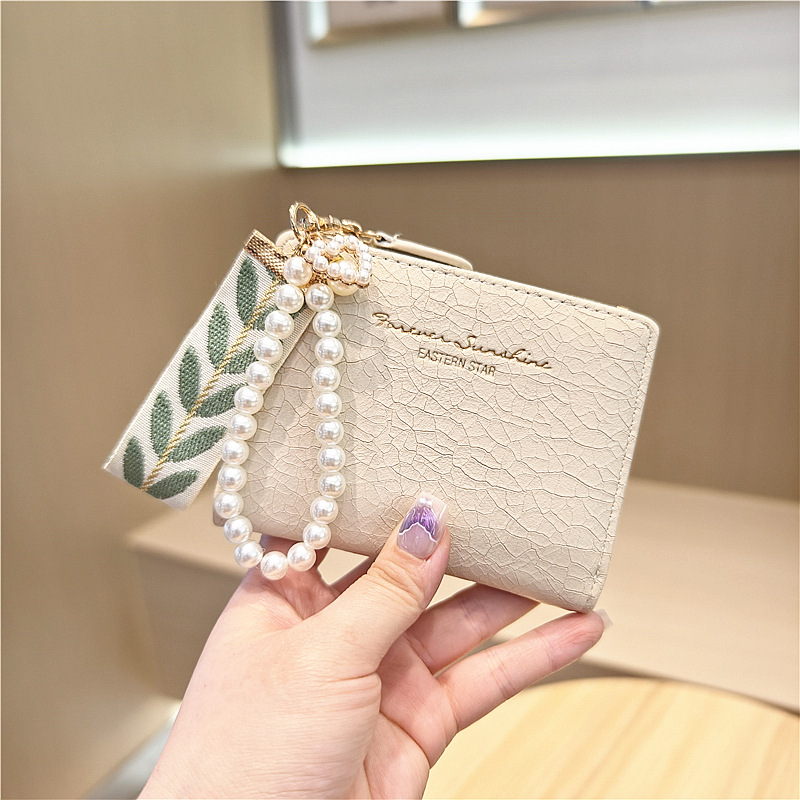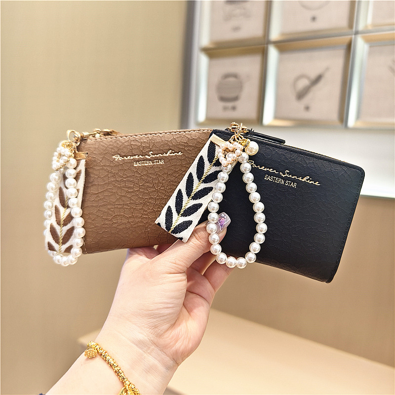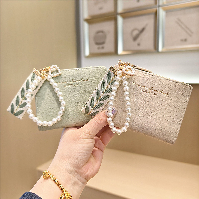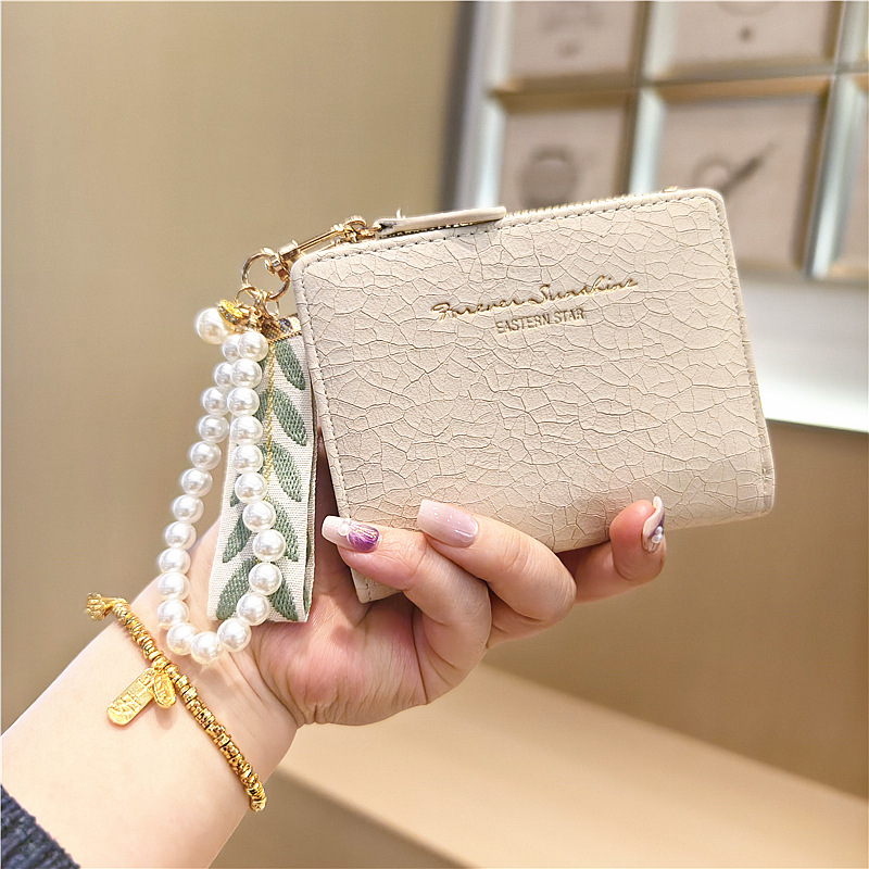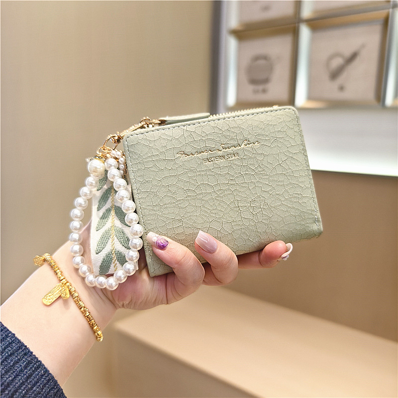 Daini 한국식 새로운 단색 단순 맞춤형 균열 2 배 진주 펜던트 지퍼 버클 짧은 지갑스토어 가기
