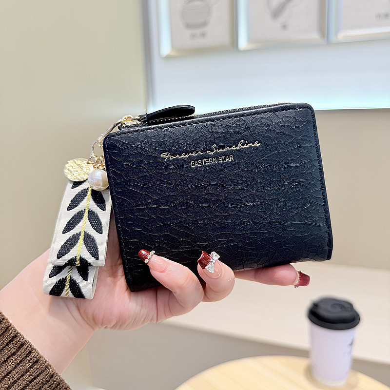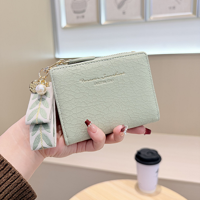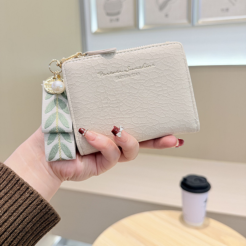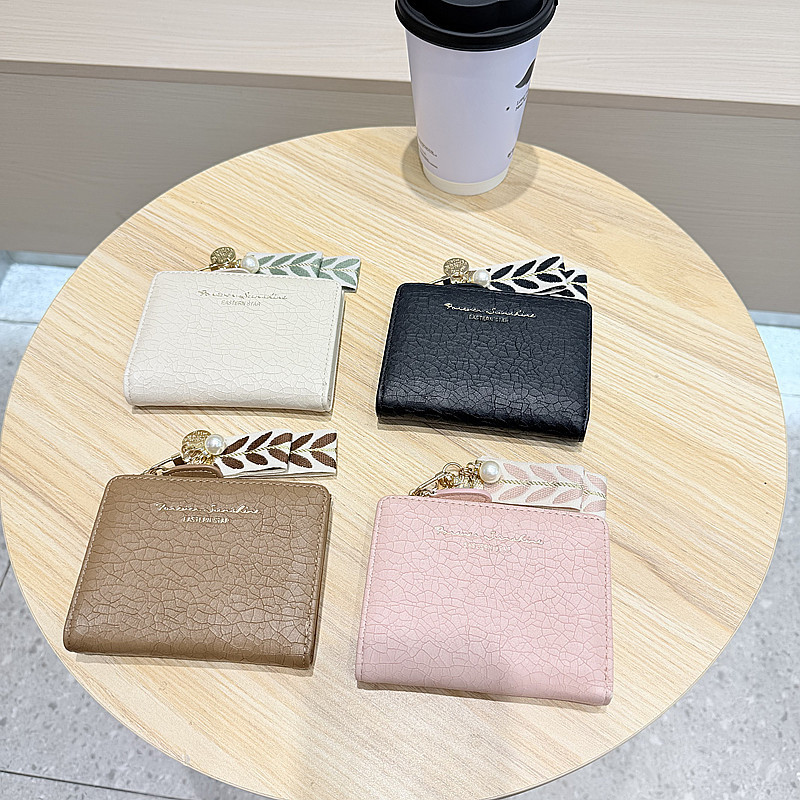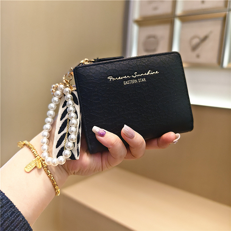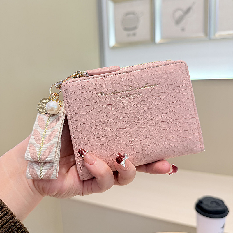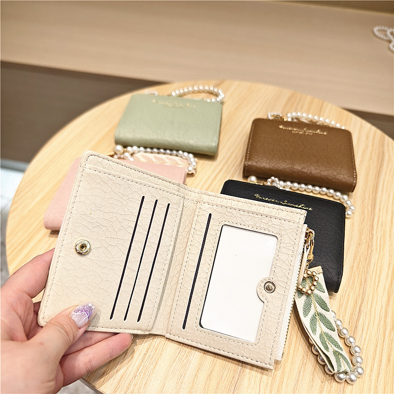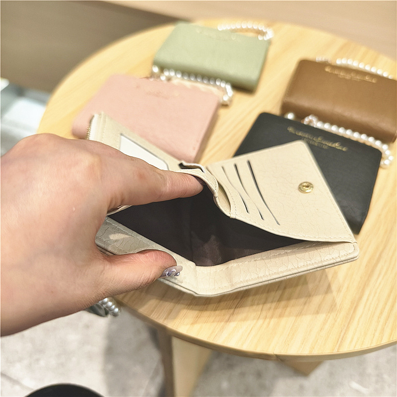 Daini 한국식 새로운 단색 단순 맞춤형 균열 2 배 진주 펜던트 지퍼 버클 짧은 지갑스토어 가기