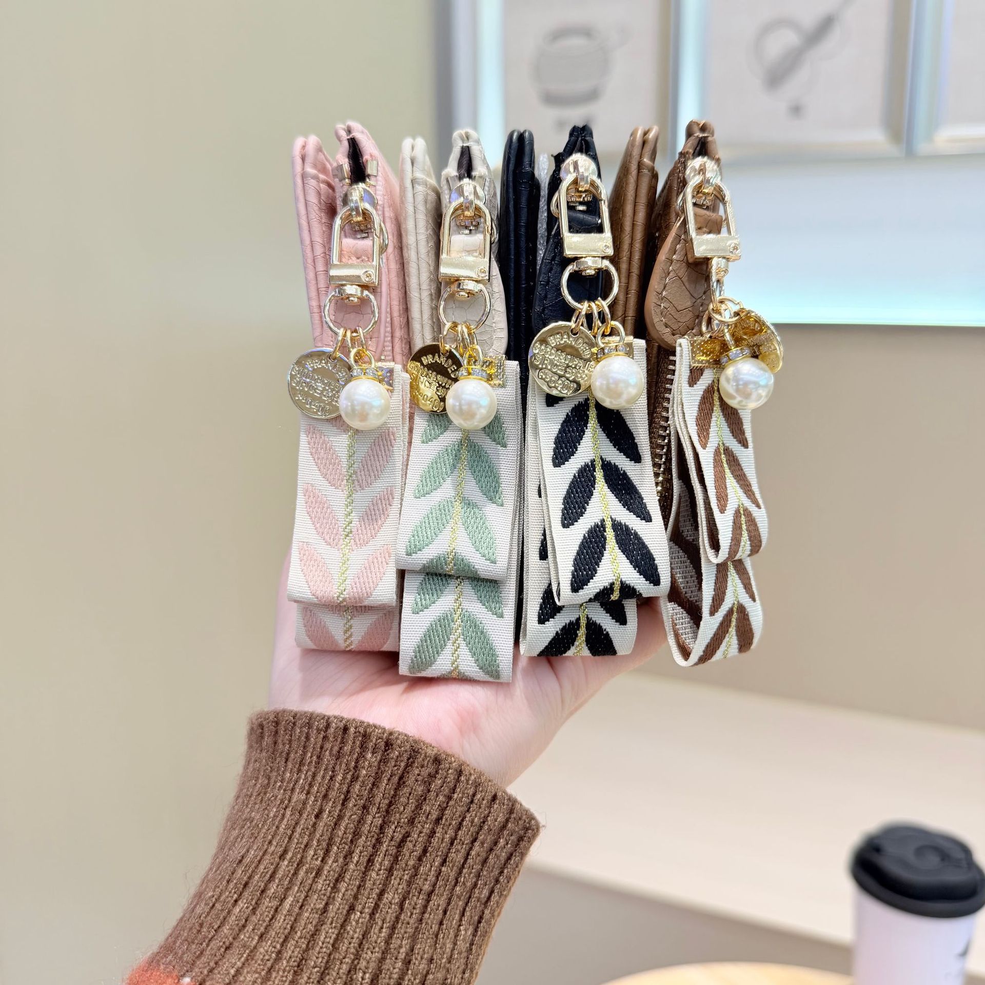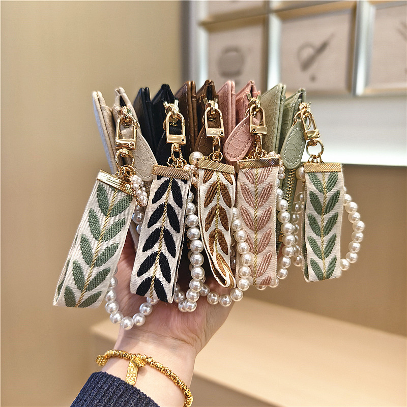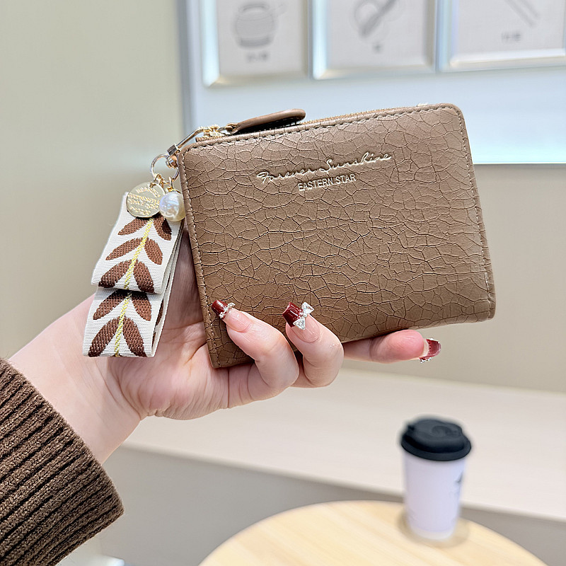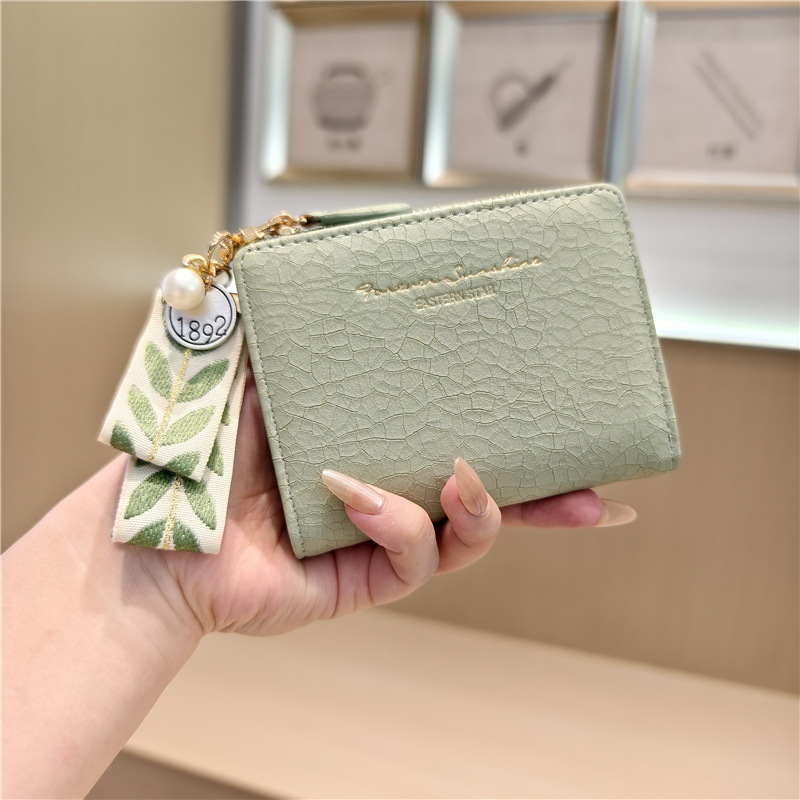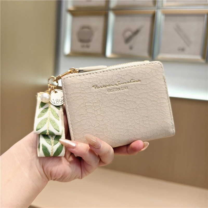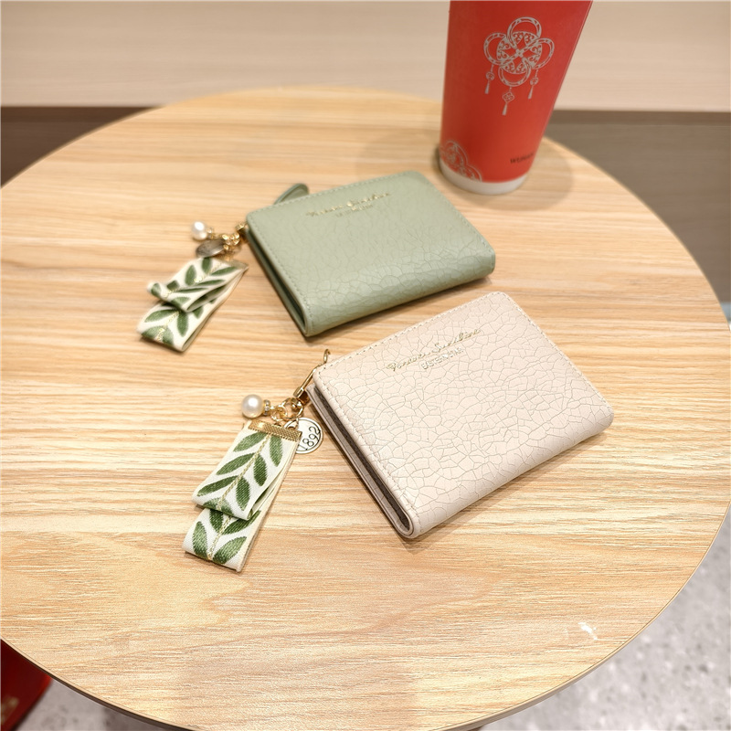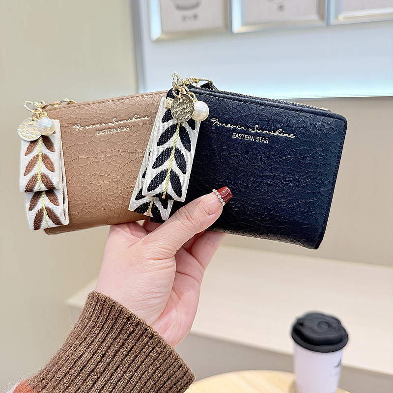 Daini 한국식 새로운 단색 단순 맞춤형 균열 2 배 진주 펜던트 지퍼 버클 짧은 지갑스토어 가기