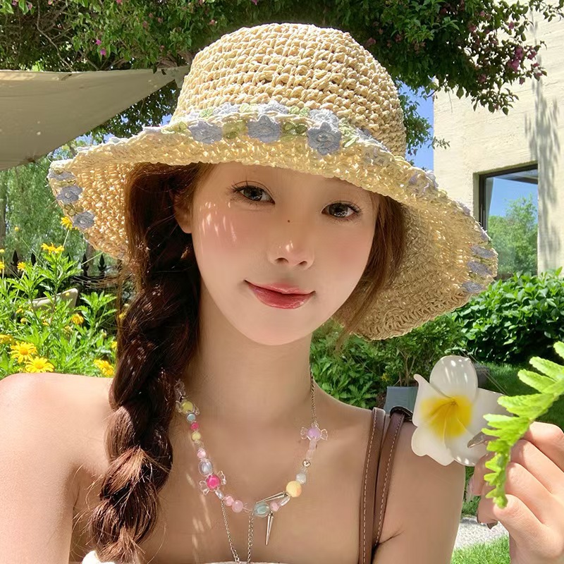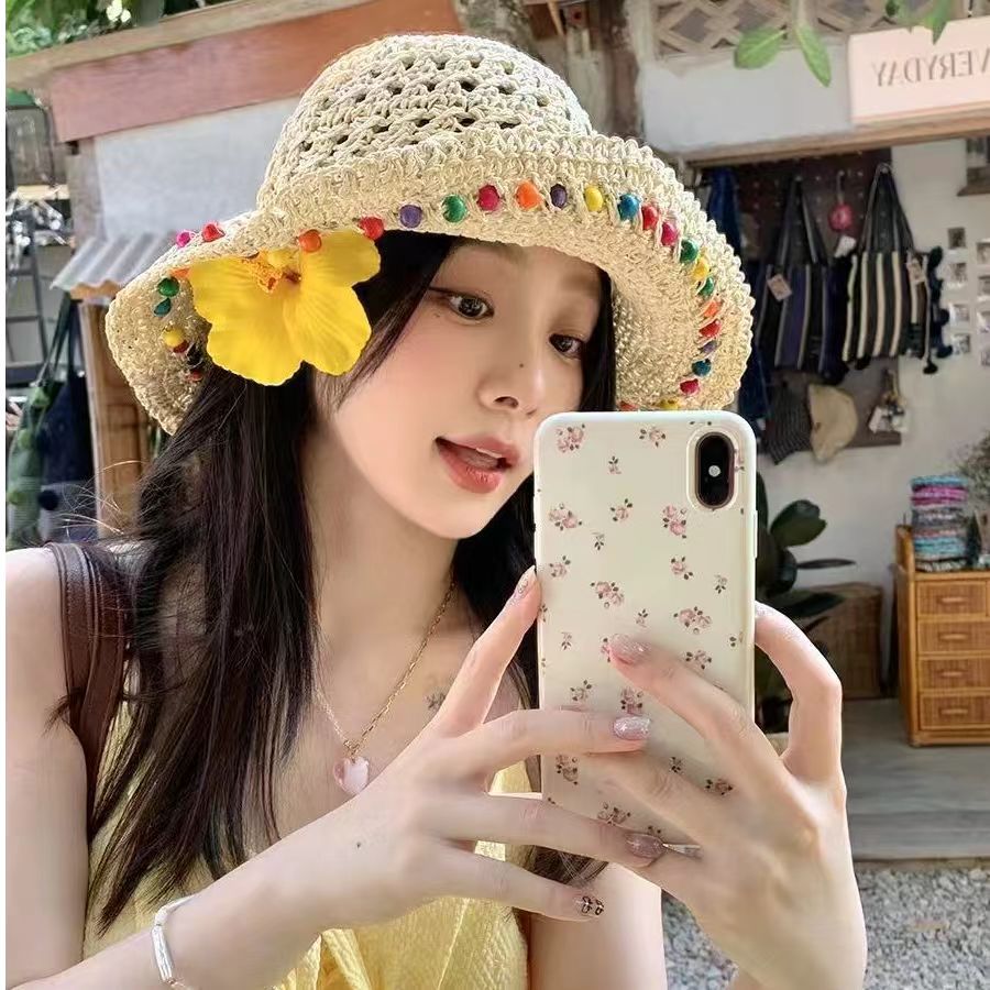 프랑스 밀짚 모자 여자 2024 년 여름 새로운 통기성 레이스 할로우 선 스크린 모자 해변 모자 햇살스토어 가기