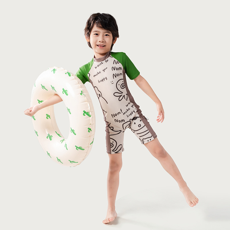 신상 남학생 수영복 여름 반팔 빠른 건조 어린이 수영복 서양식 만화 아기 소년 수영복