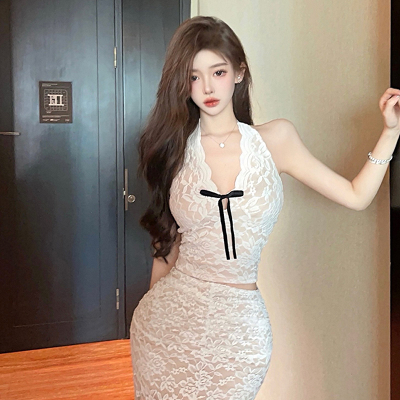 1220 유럽, 미국, 동남아시아 대외 무역 도매 2026 여성복 섹시 레이스 홀터넥 백리스 베스트와 스커트 세트스토어 가기