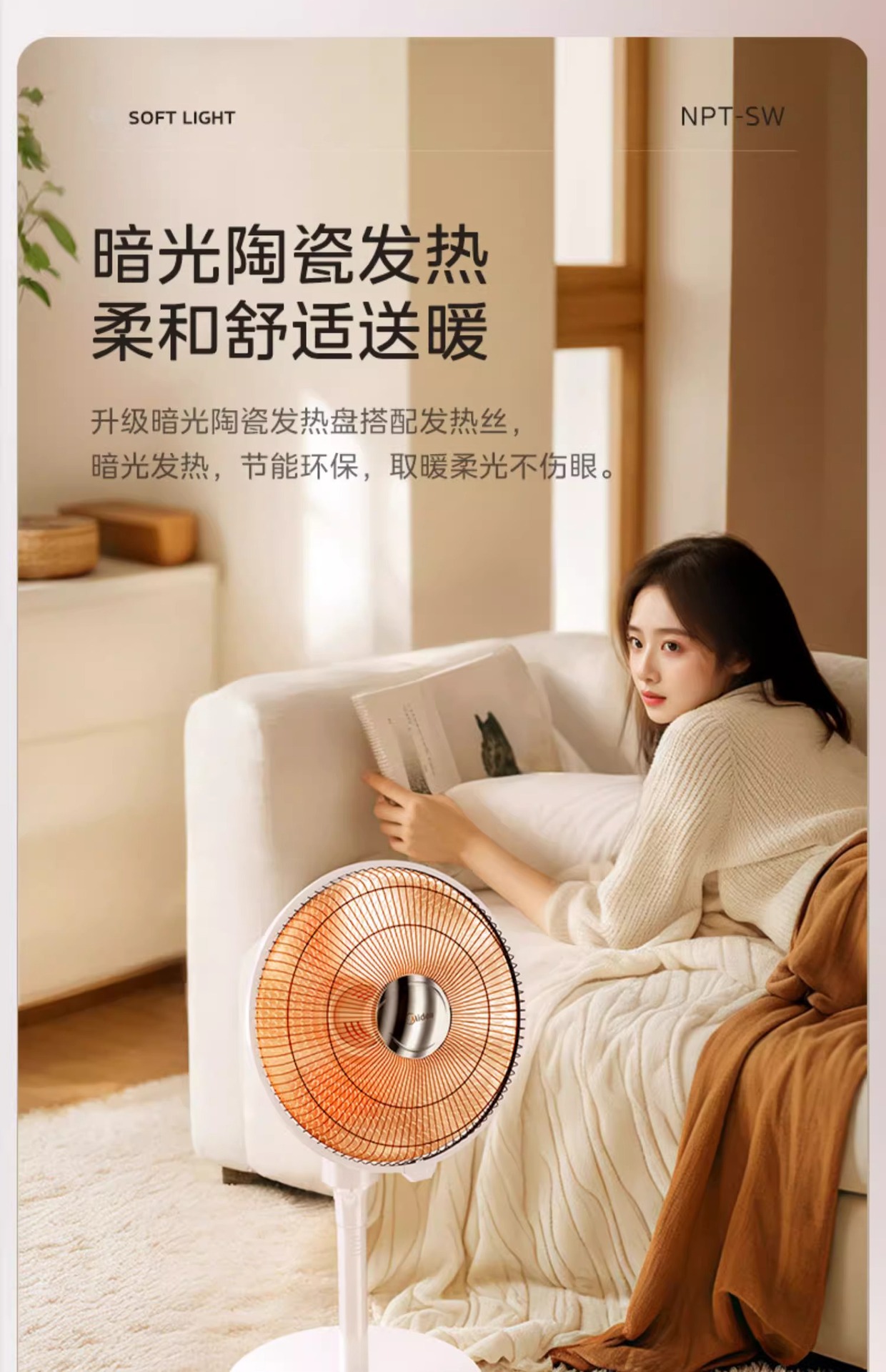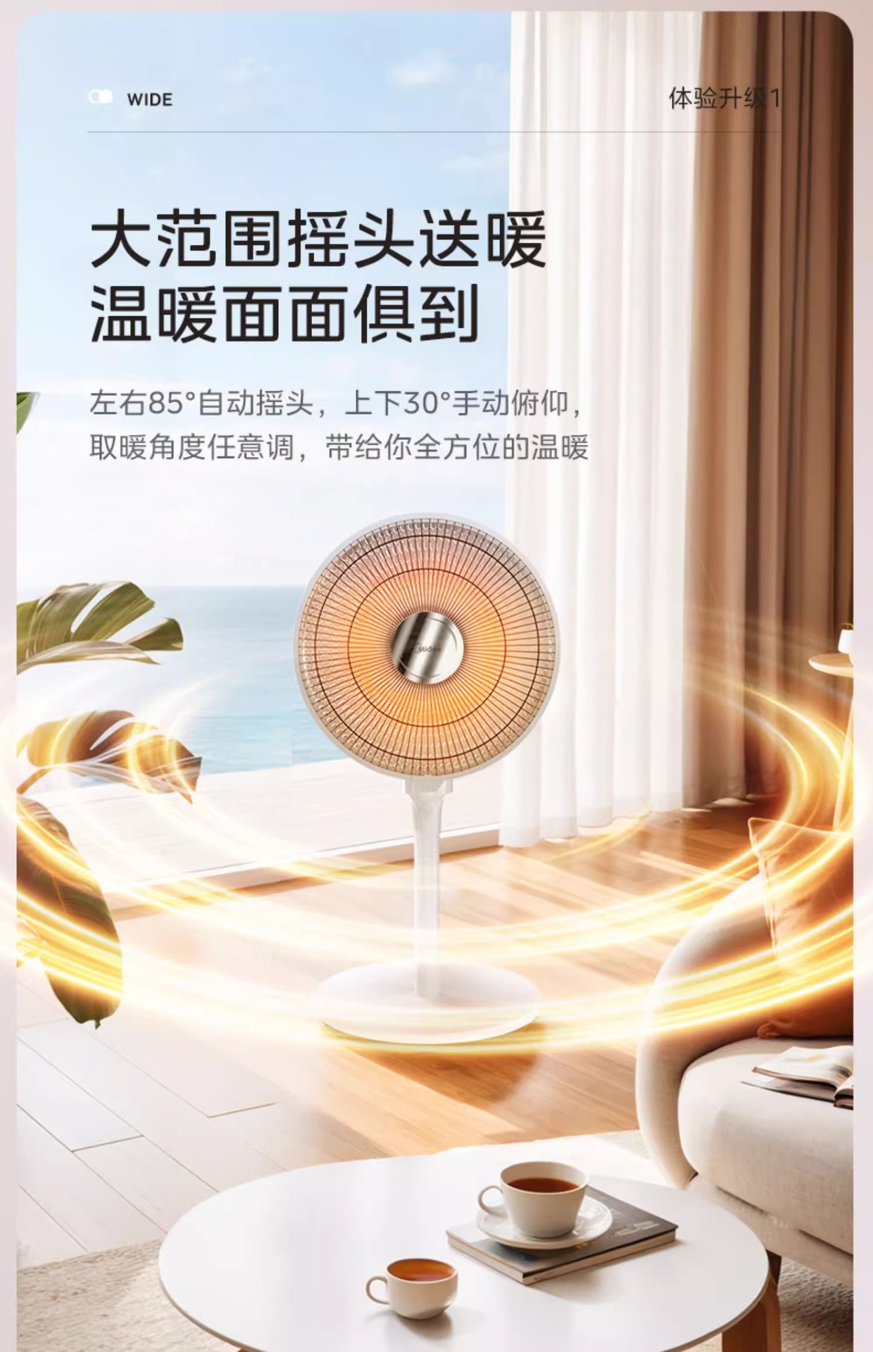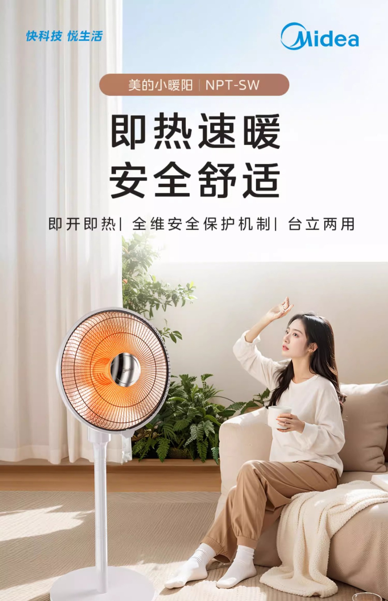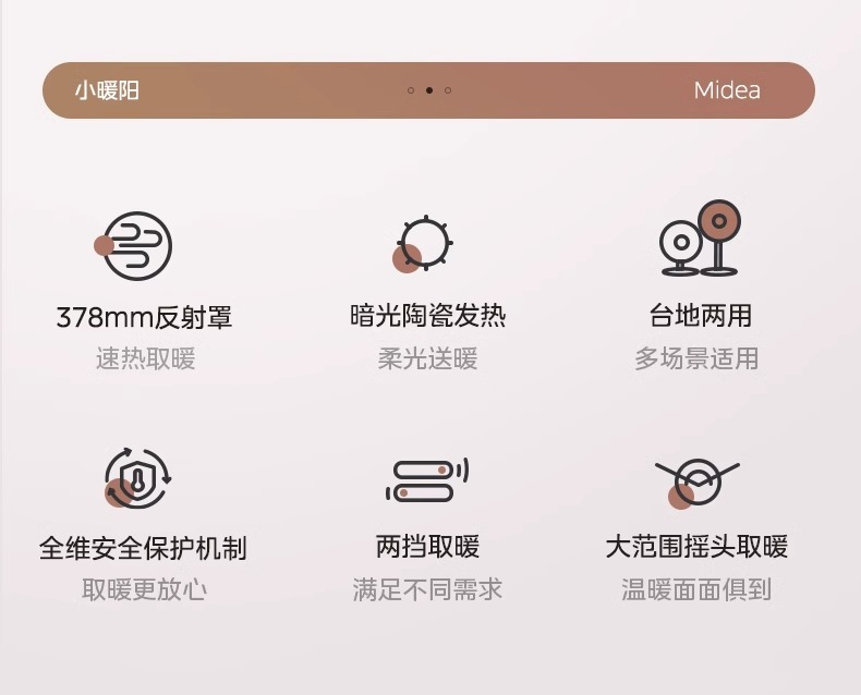 Midea 작은 태양 히터 데스크탑 가정용 에너지 절약 오븐 공기 히터 빠른 난방 전기 절약 난방 소형 소형스토어 가기