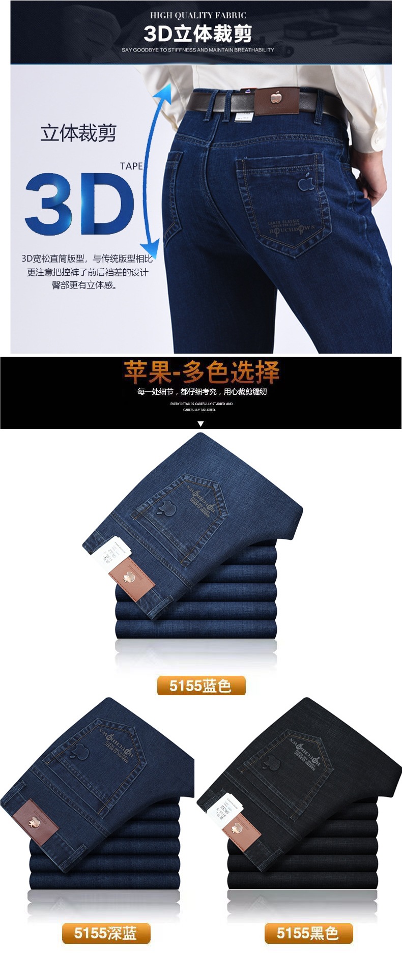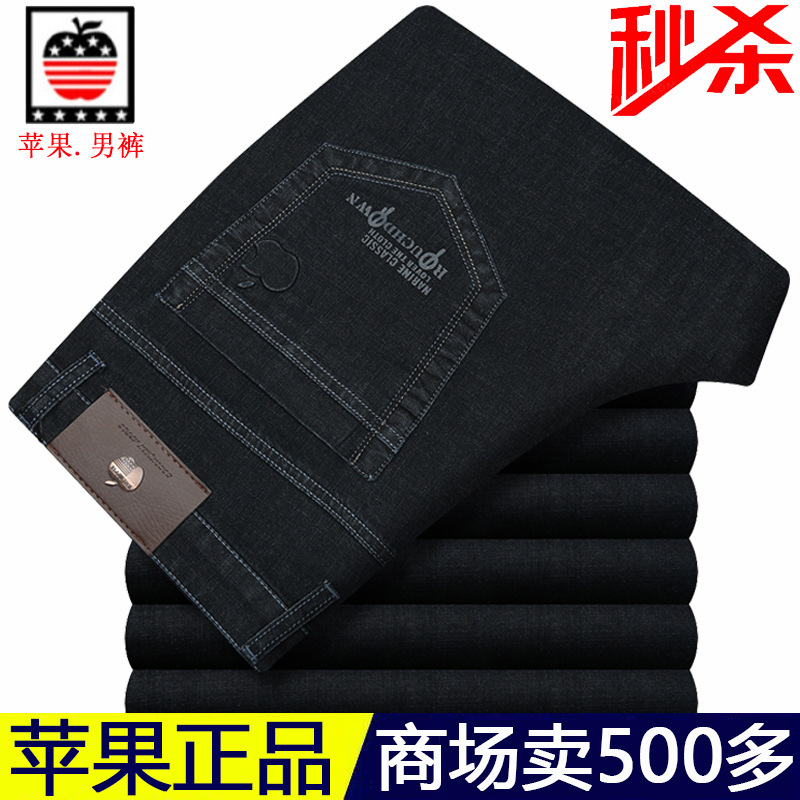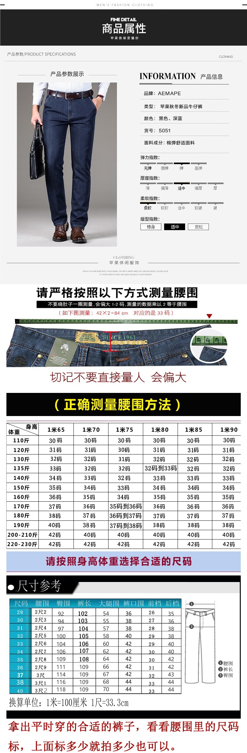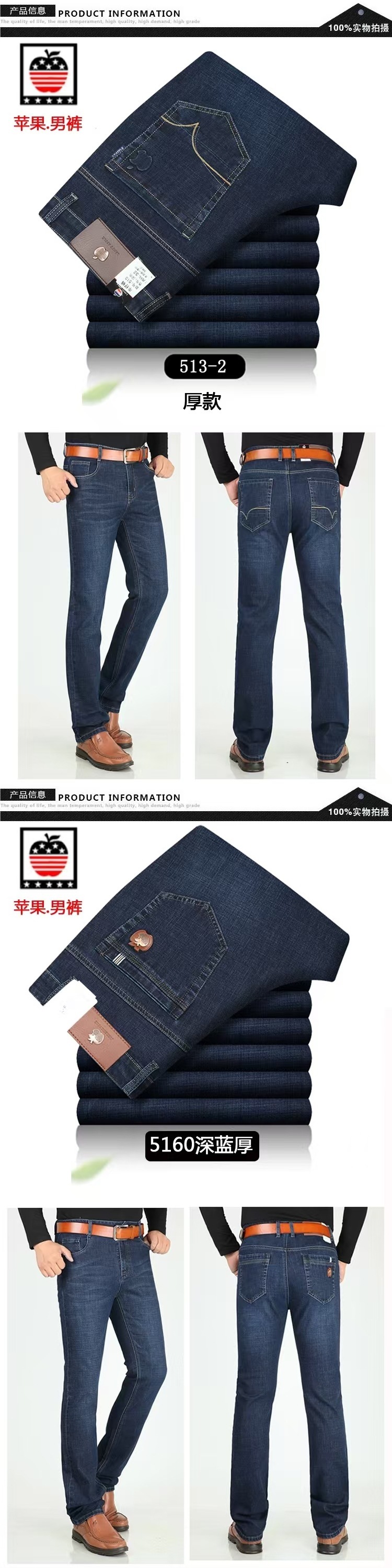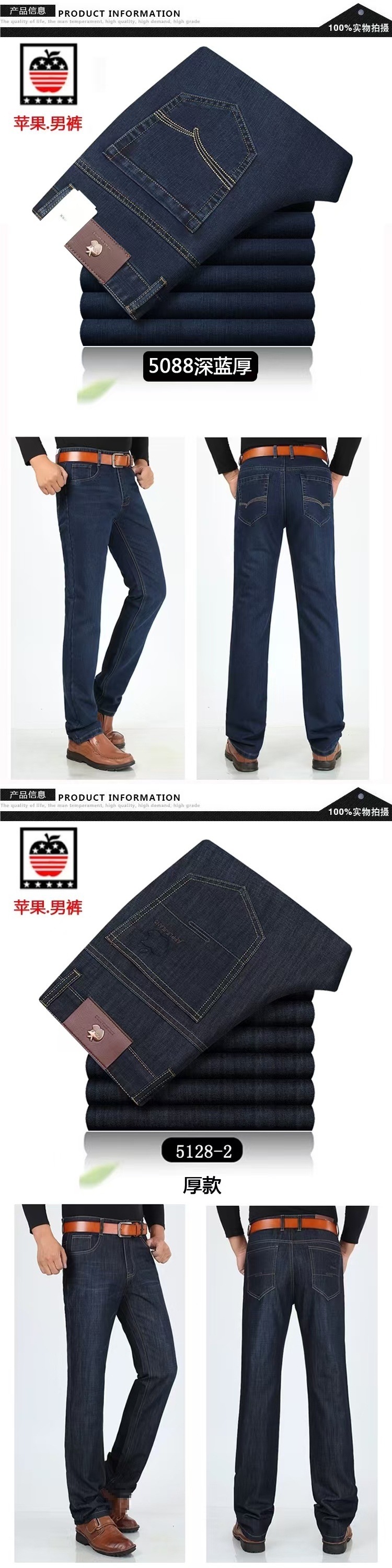 애플 남성 청바지 남자 가을 겨울 두꺼운 느슨한 스트레이트 하이 허리 탄성 중년 가을 두꺼운 바지 캐주얼 재고