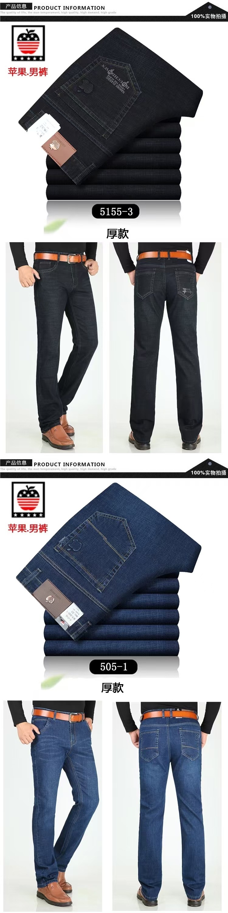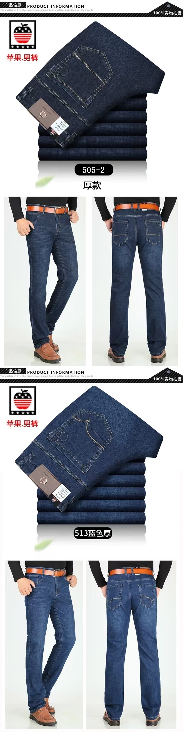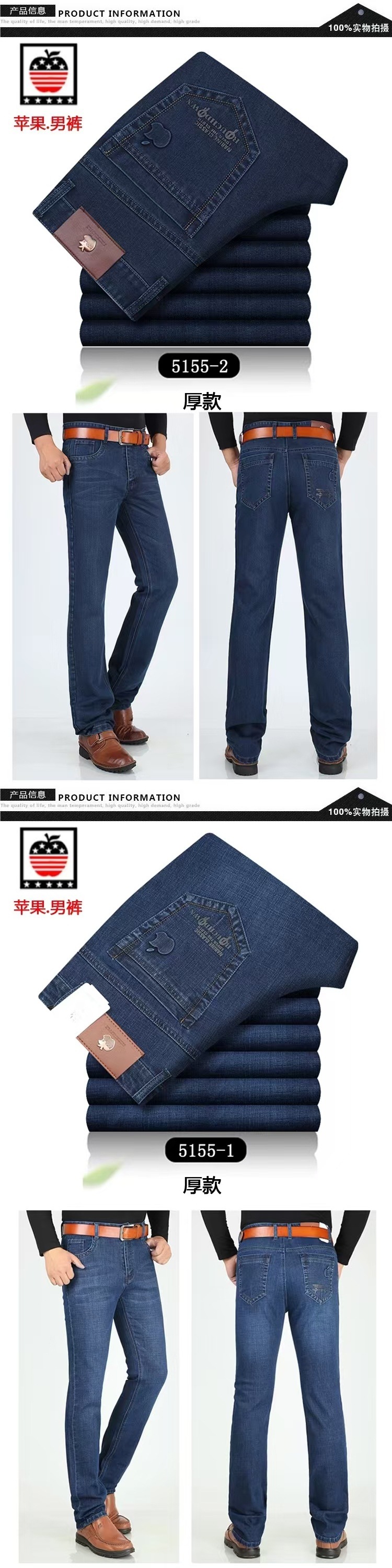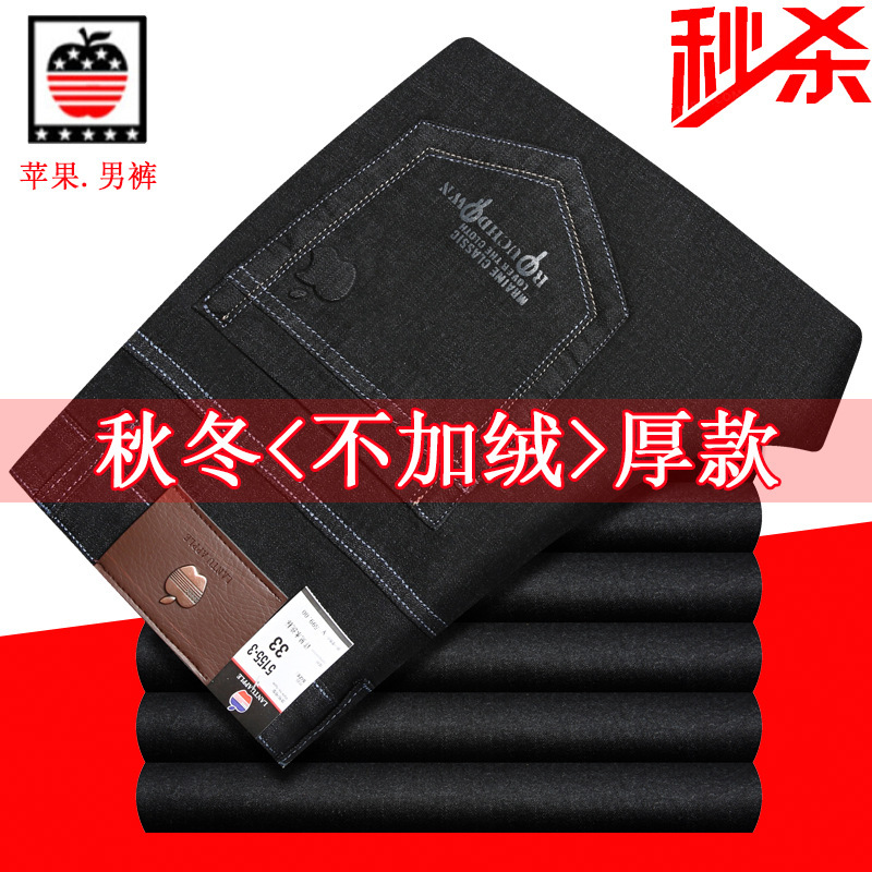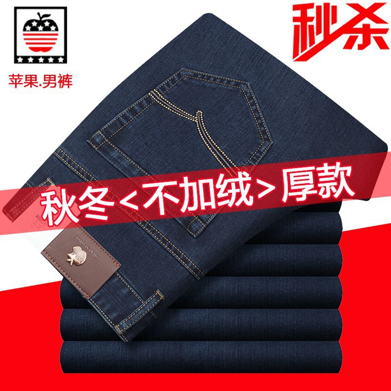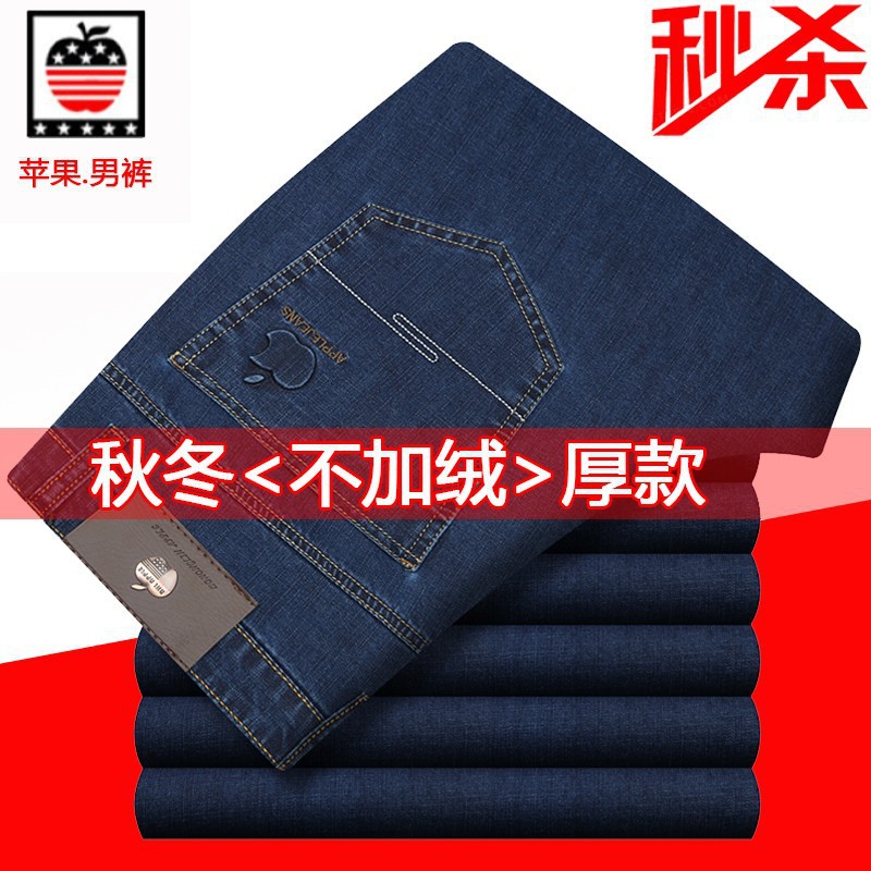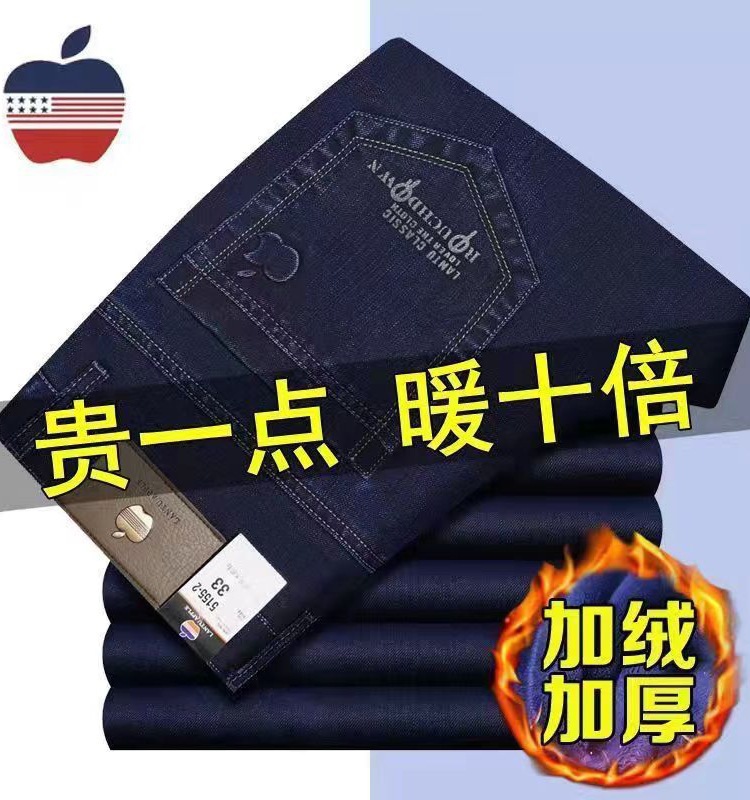 애플 남성 청바지 남자 가을 겨울 두꺼운 느슨한 스트레이트 하이 허리 탄성 중년 가을 두꺼운 바지 캐주얼 재고스토어 가기