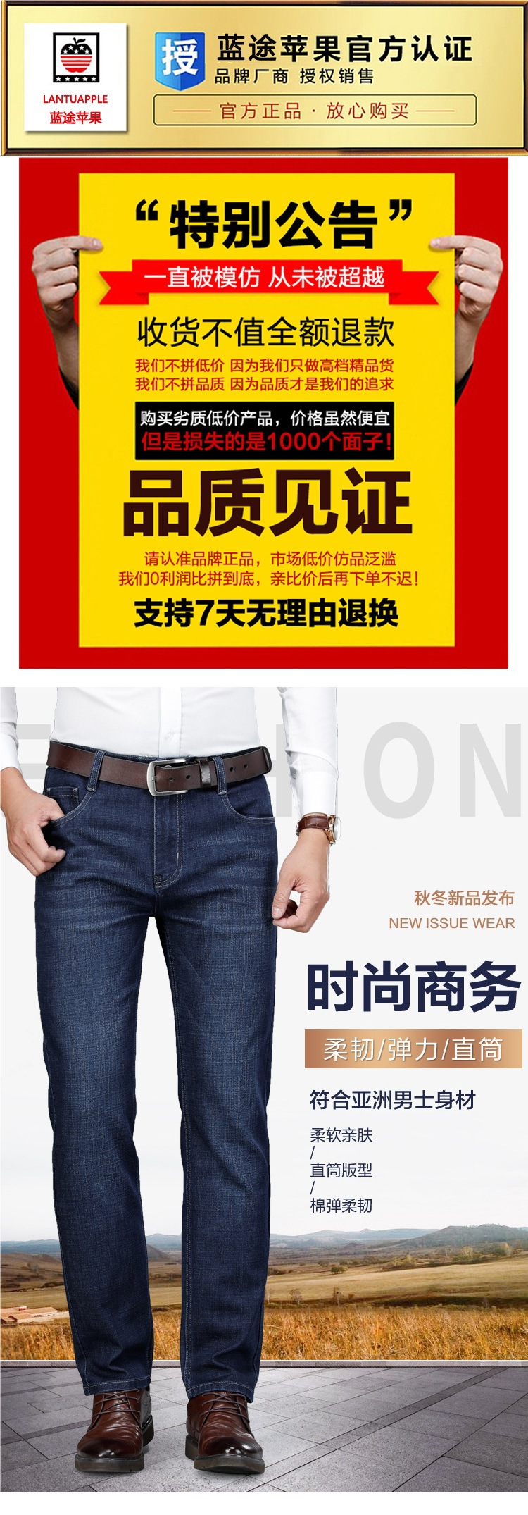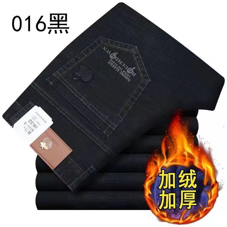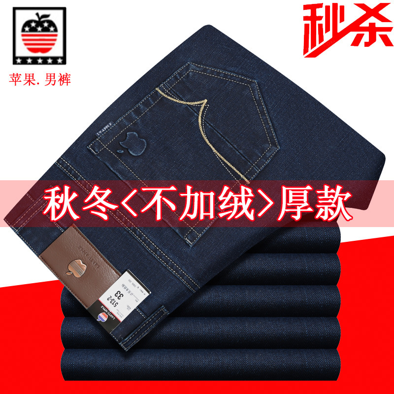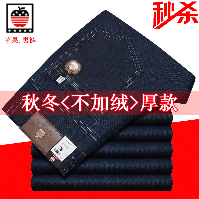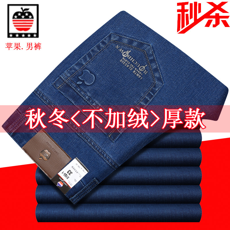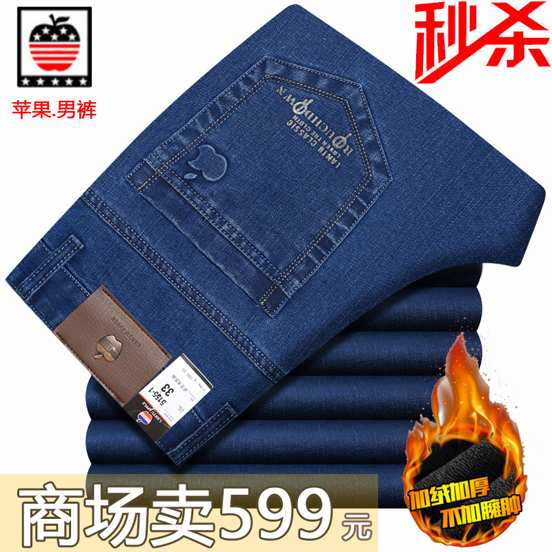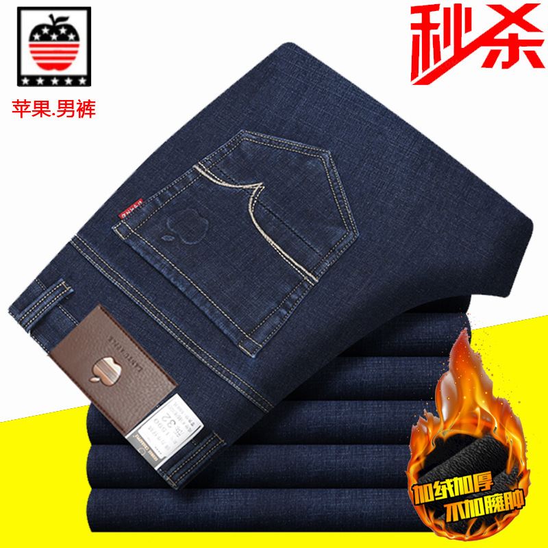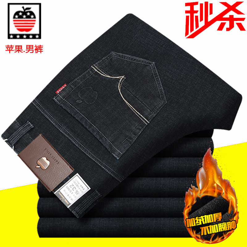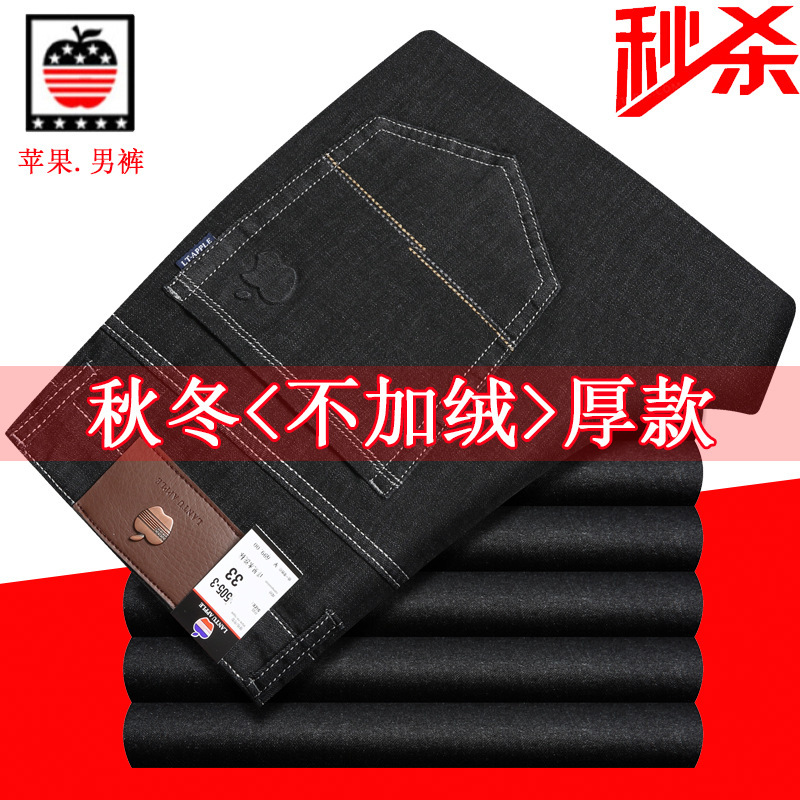 애플 남성 청바지 남자 가을 겨울 두꺼운 느슨한 스트레이트 하이 허리 탄성 중년 가을 두꺼운 바지 캐주얼 재고스토어 가기