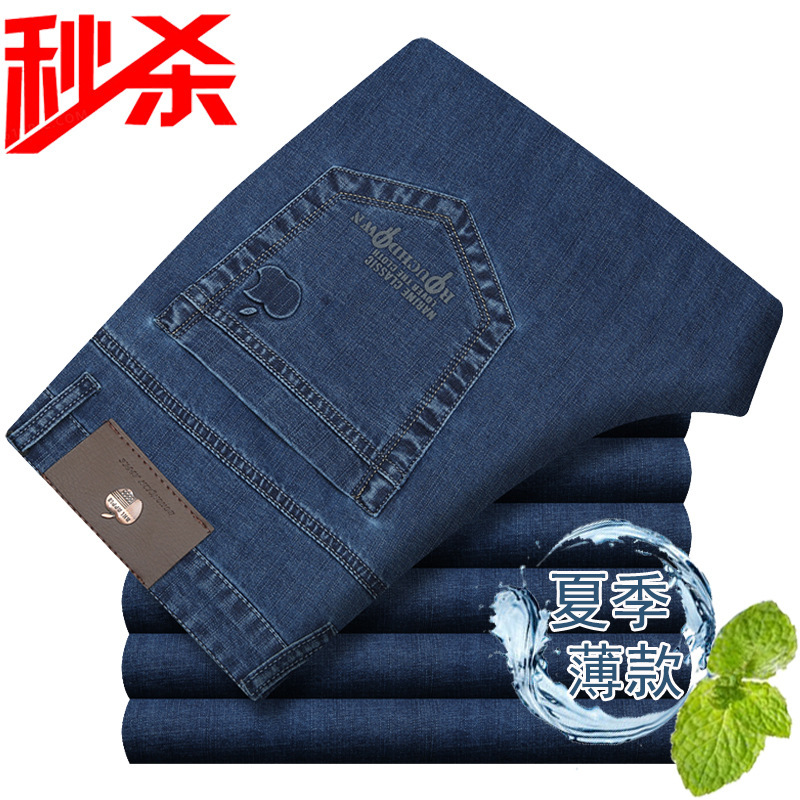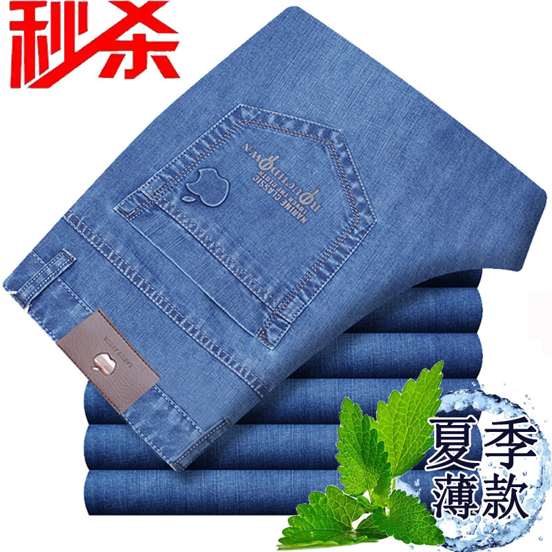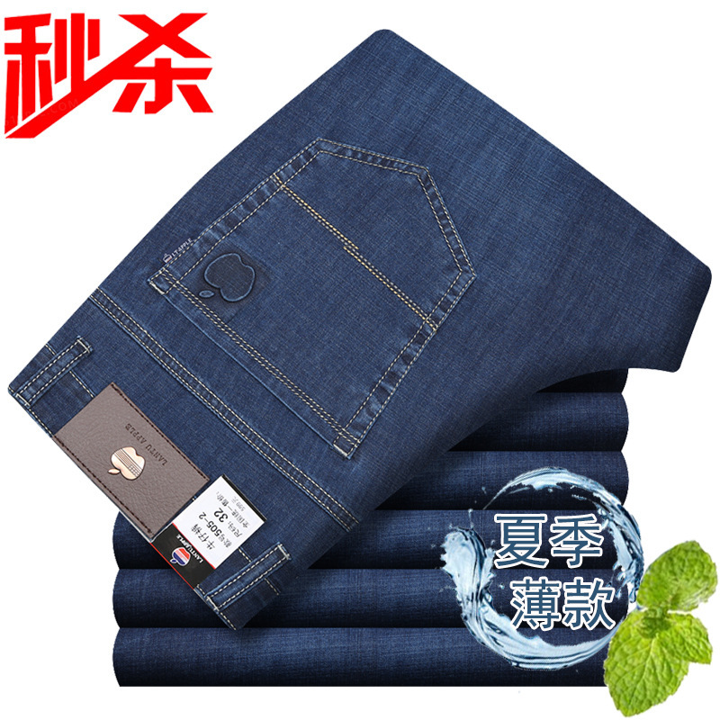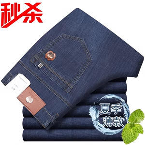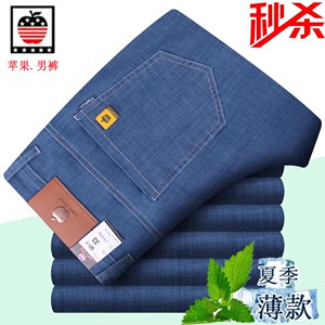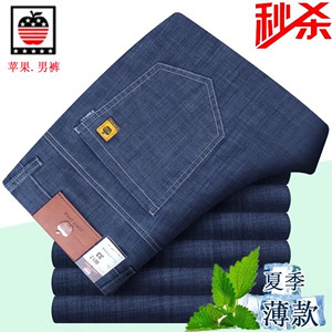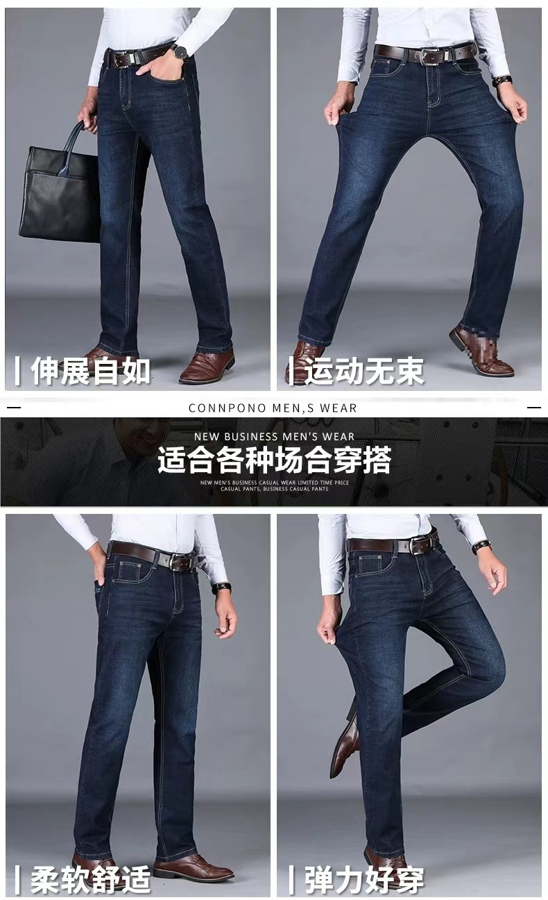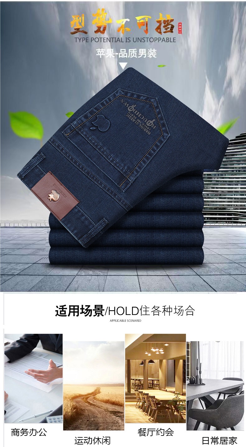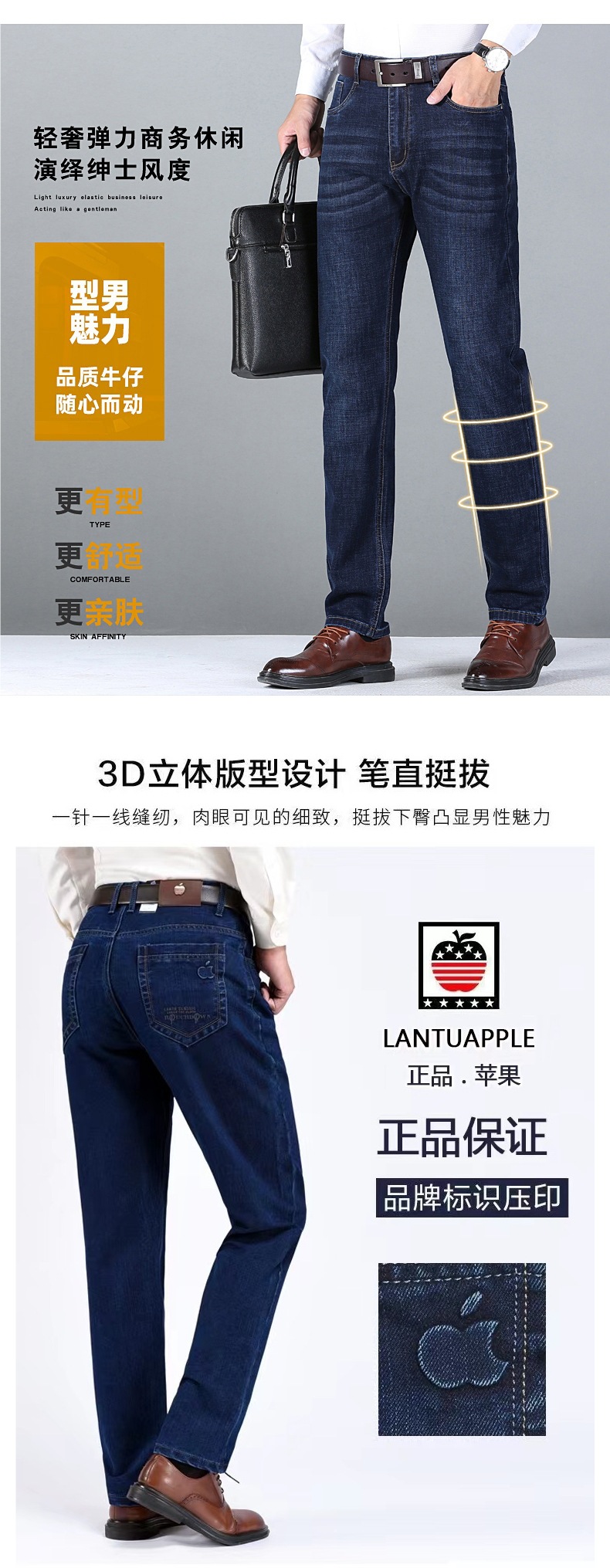 애플 남성 청바지 남자 가을 겨울 두꺼운 느슨한 스트레이트 하이 허리 탄성 중년 가을 두꺼운 바지 캐주얼 재고스토어 가기