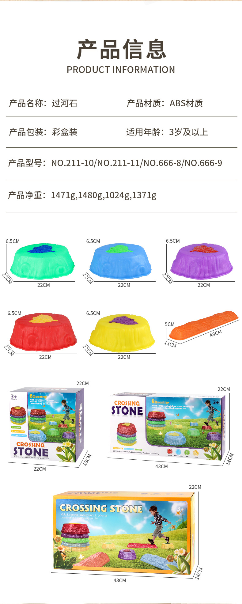 内置纽扣电池 PP料 过河石里面有配防滑胶