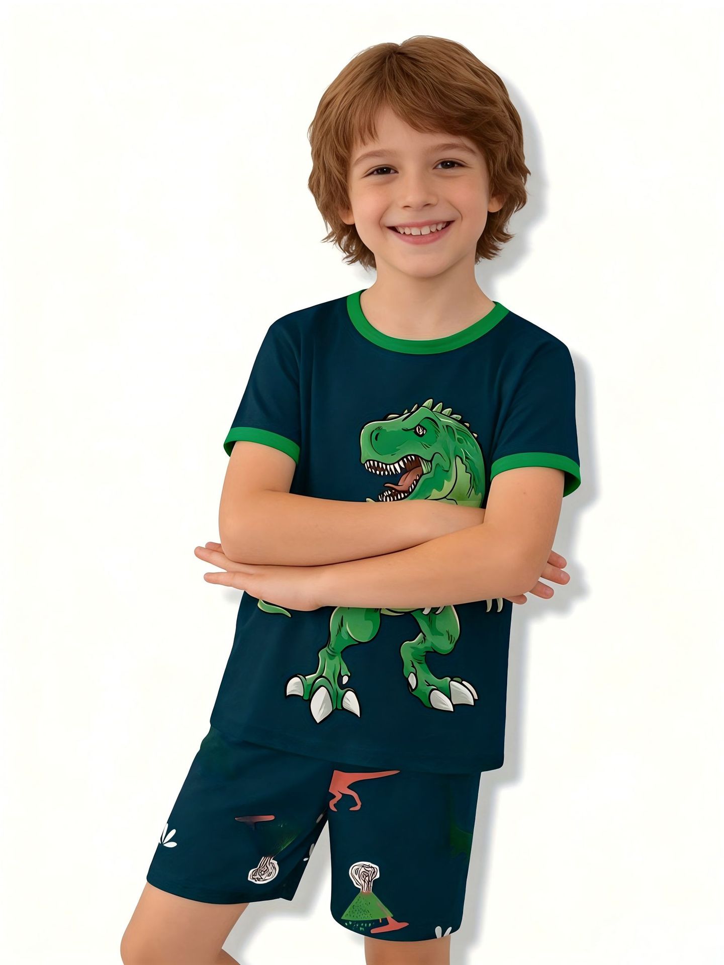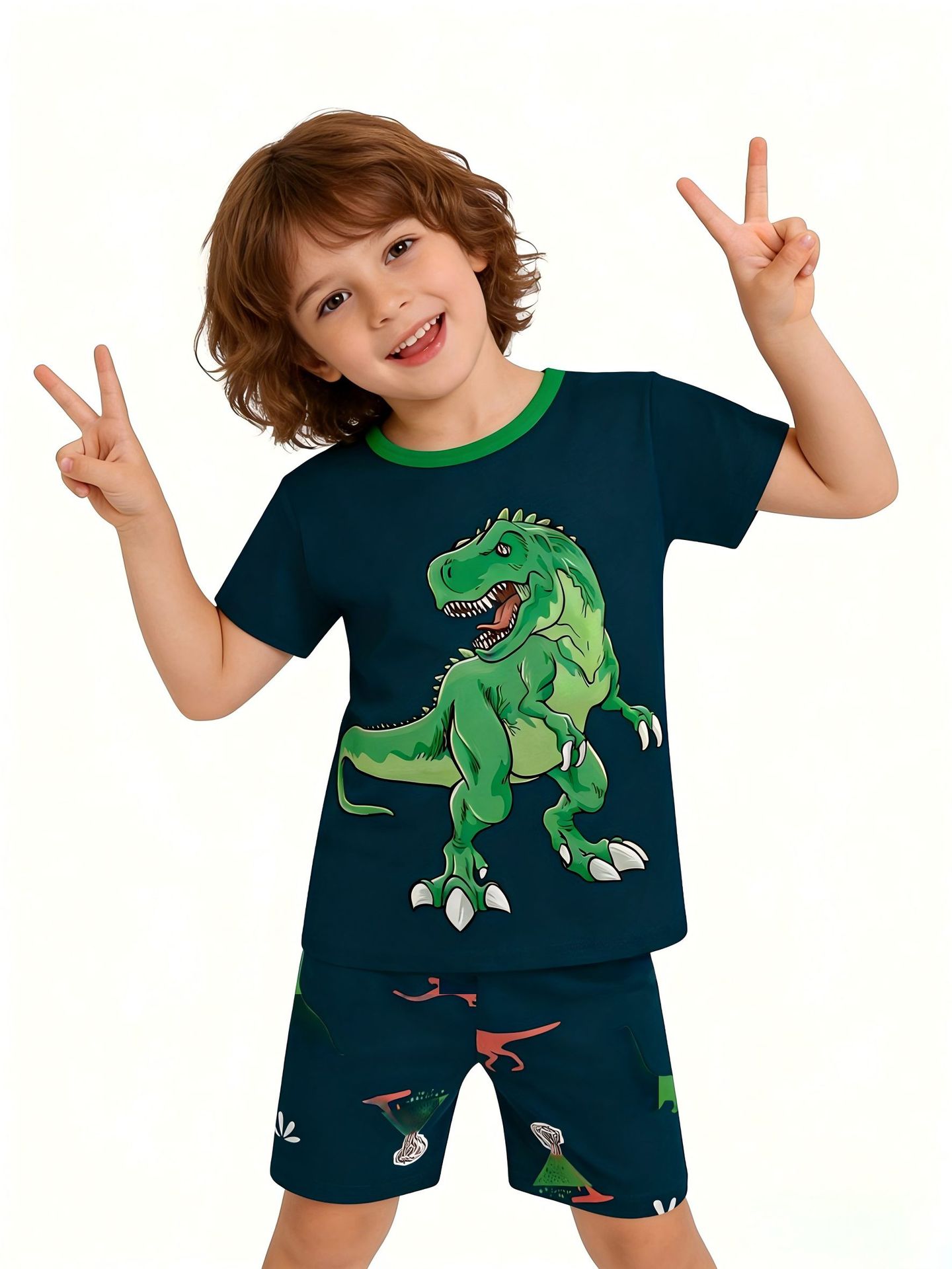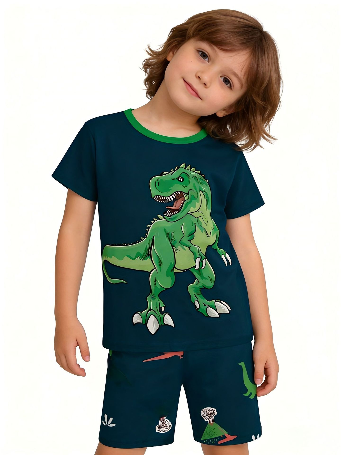 국경 간 아동복 betop 만화 3 차원 공룡 소년 티셔츠 잠옷 여름 한국 어린이 반팔 반바지 세트