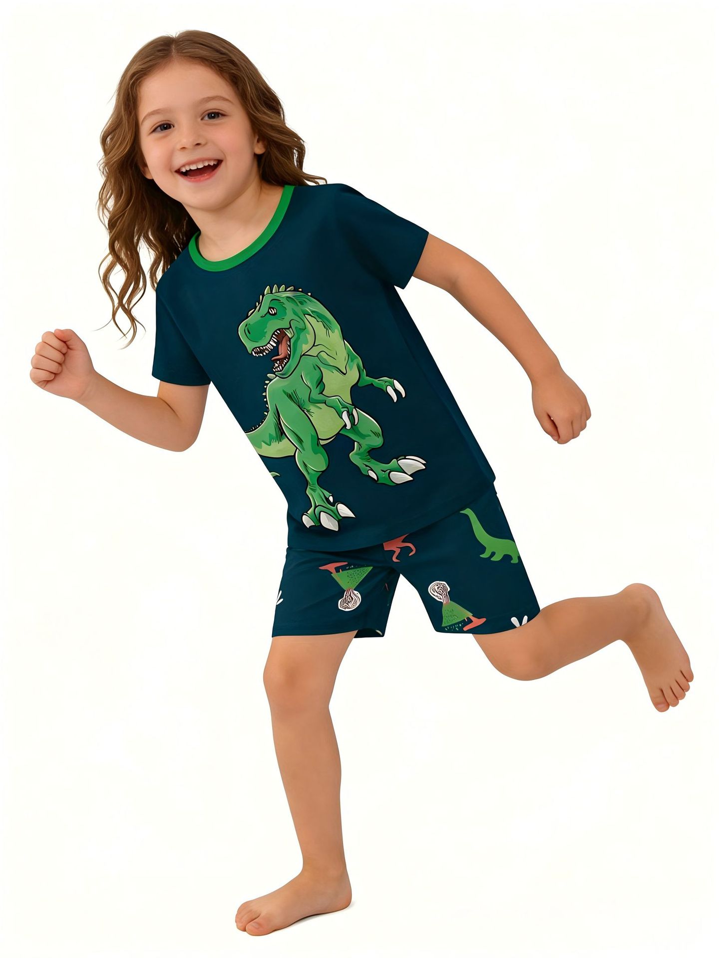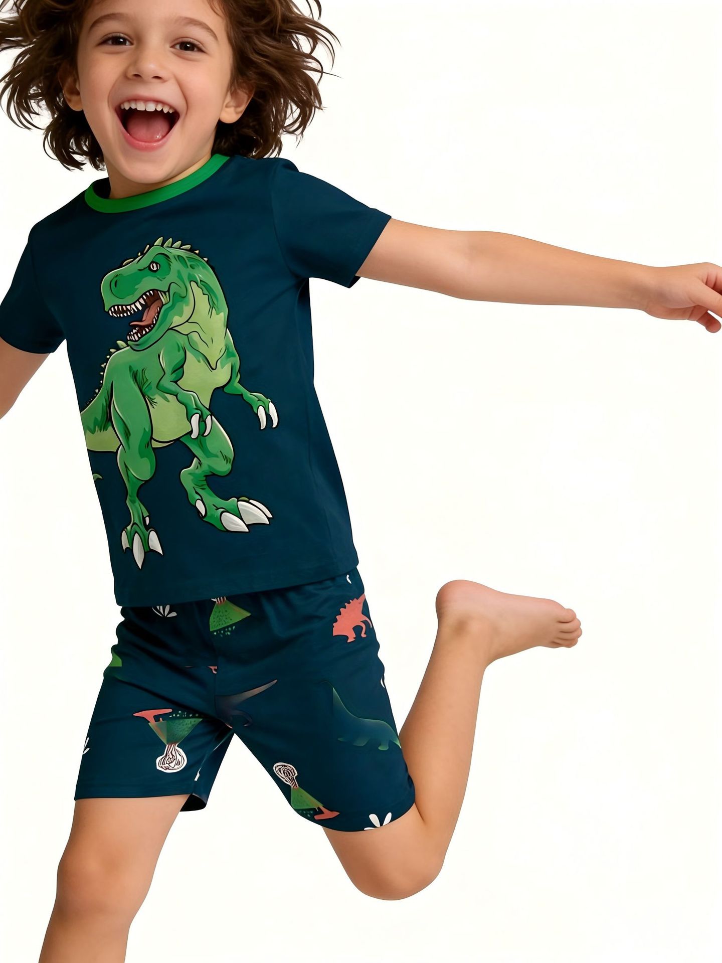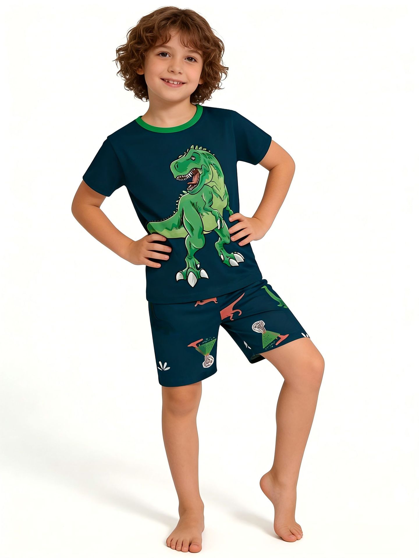 국경 간 아동복 betop 만화 3 차원 공룡 소년 티셔츠 잠옷 여름 한국 어린이 반팔 반바지 세트