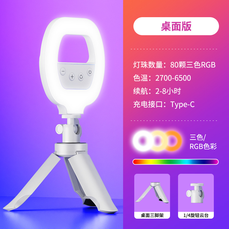 • 링 필라이트 [RGB 디밍 충전 모델] + 데스크탑 삼각대 + 팬/틸트
