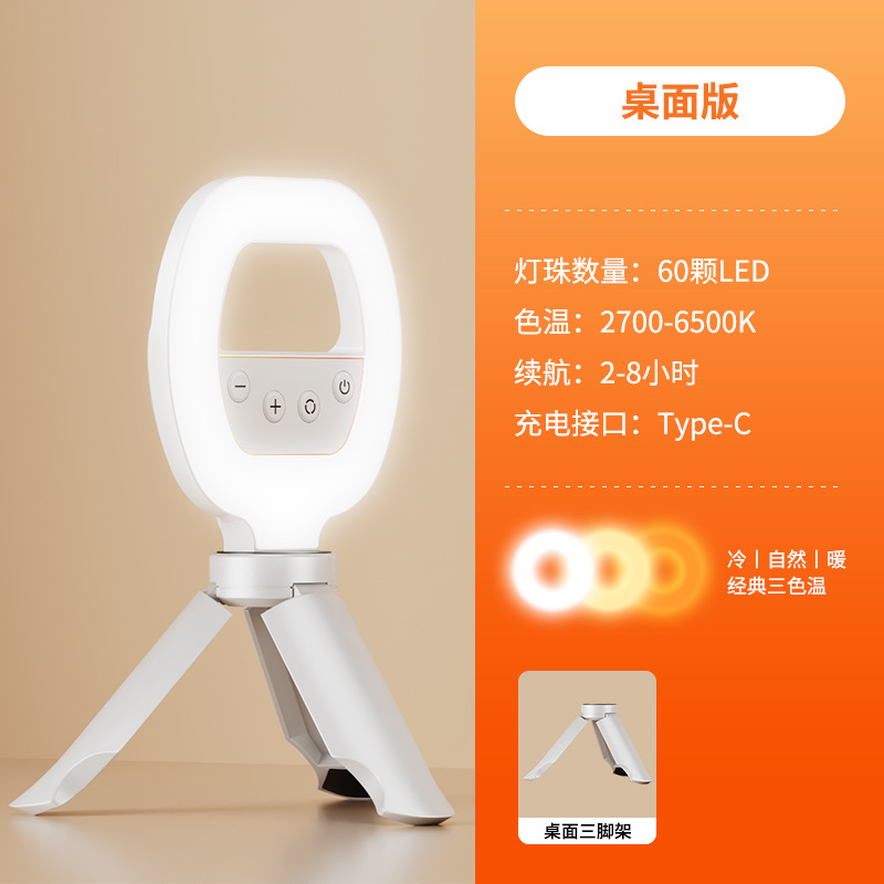 • 링 라이트 [3색 조광 충전식] 720 ° 회전하는 뷰티 소프트 라이트