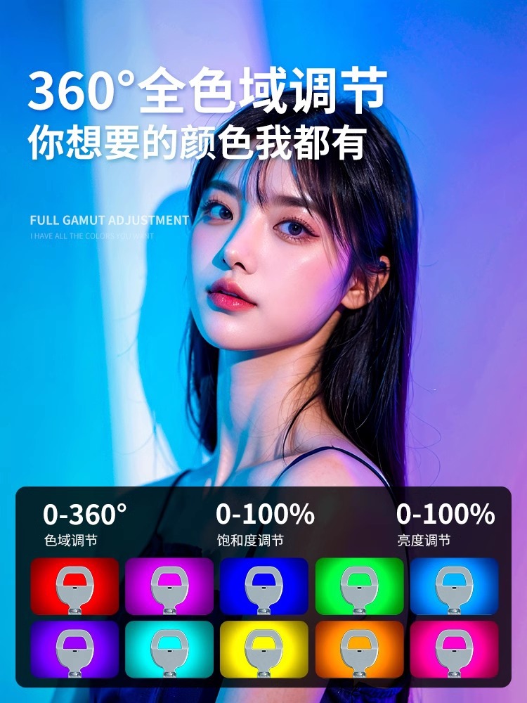 • 링 필 라이트 [RGB 디밍 충전식 모델] 720°회전하는 뷰티 소프트 라이트