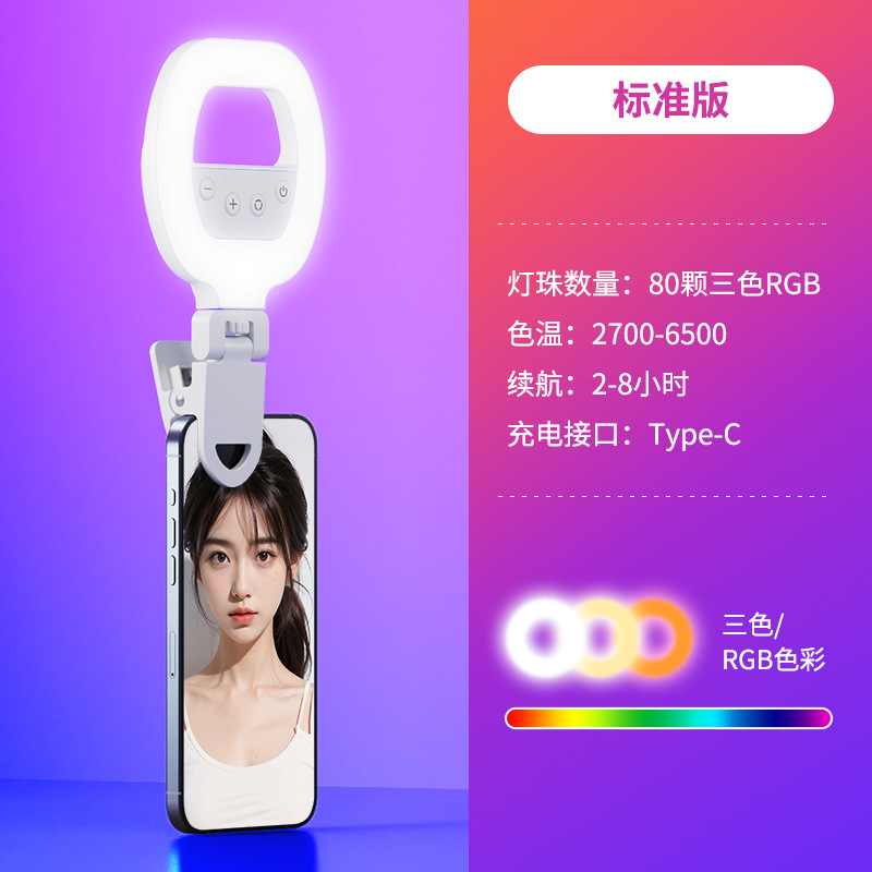클램프 온 led 링 라이트 휴대 전화 채우기 빛 휴대용 사진 셀카 핸드 헬드 라이브 뷰티 포켓 라이트