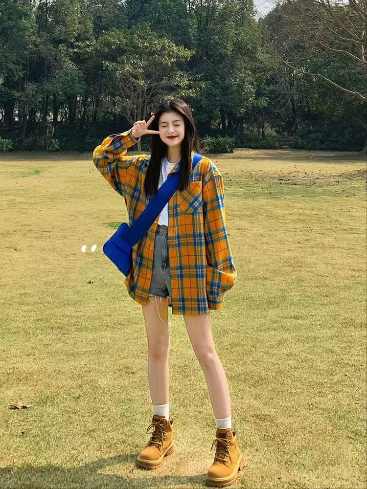• YC99 노란색 그리드#정품 코튼 셔츠