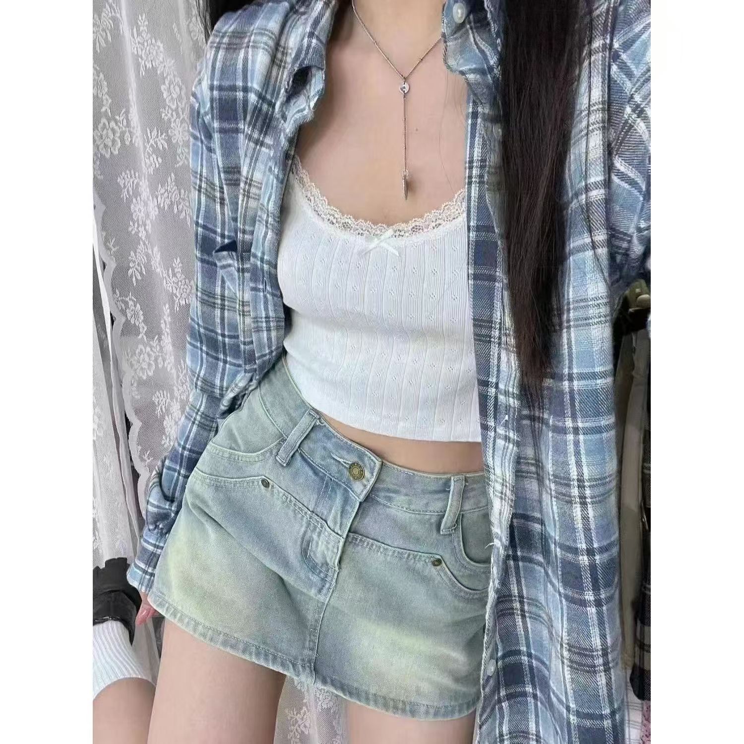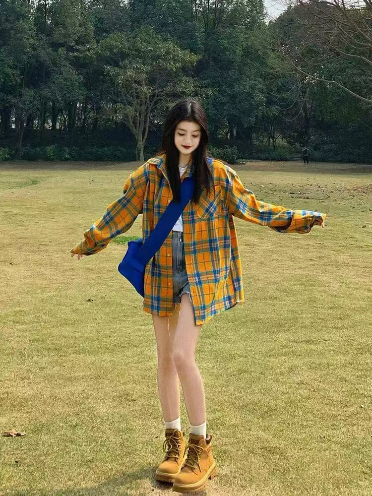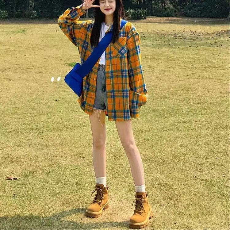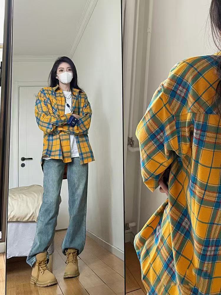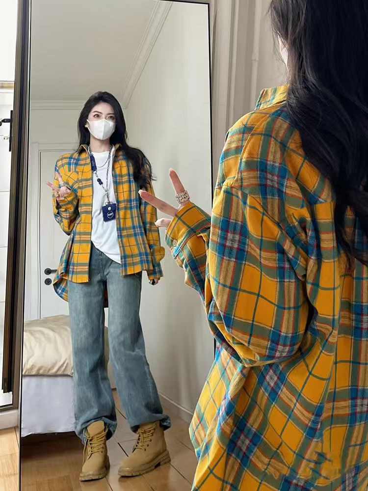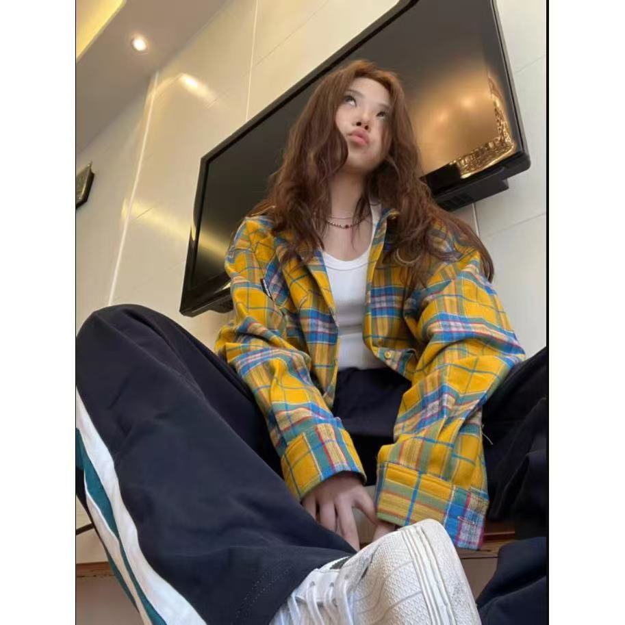 도파민 미국식 레트로 긴팔 체크 셔츠 여성용 틈새 디자인 센스 루즈 캐주얼 칼리지 스타일 셔츠 재킷스토어 가기
