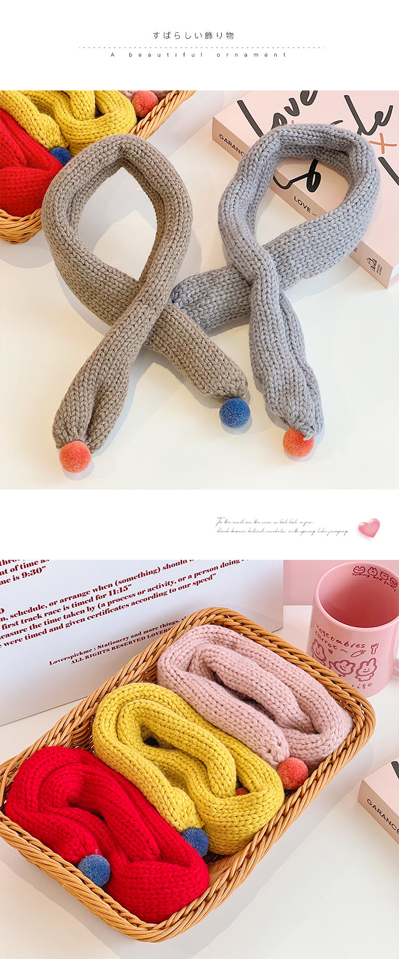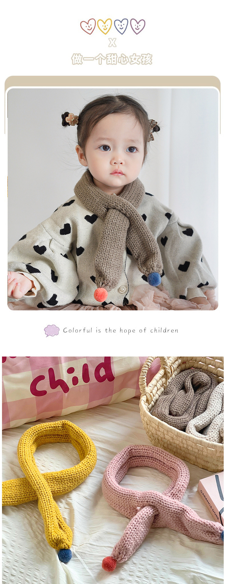 새로운 가을과 겨울 단색 어린이 소녀의 따뜻한 방풍 스카프 겨울 귀여운 외국 스타일 어린이 스카프 배치