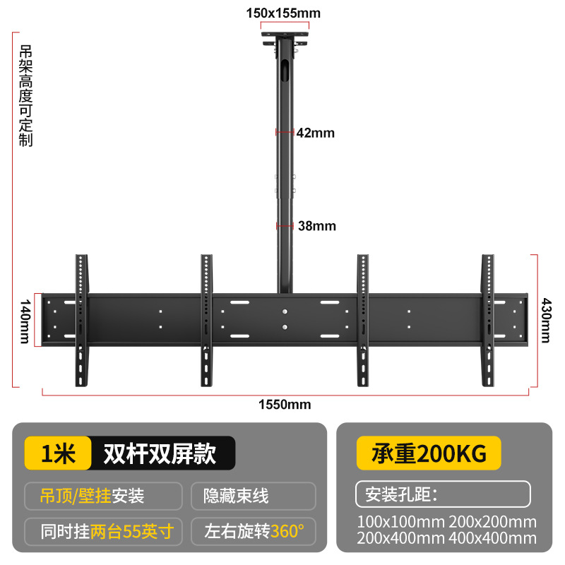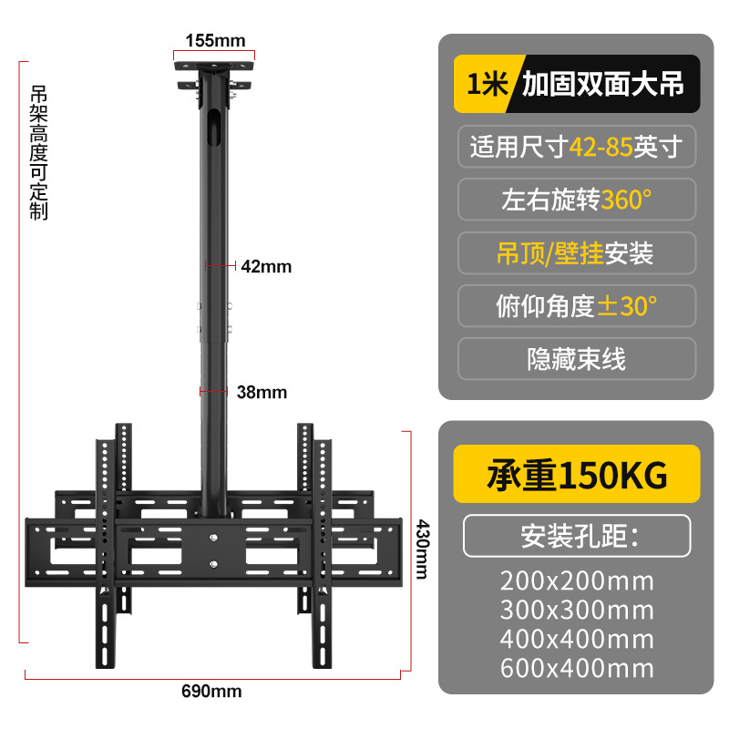 • 42-85inch 전면 및 후면 듀얼 스크린/전체 길이 1m /리프팅 가능 및 피치 각도 조절 가능/측면 장착 가능