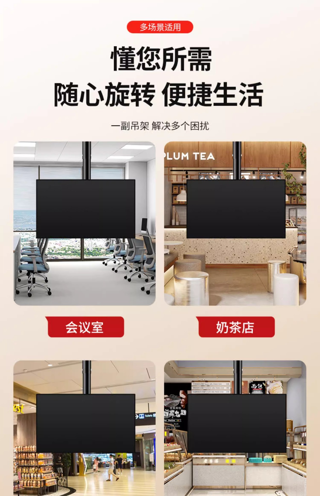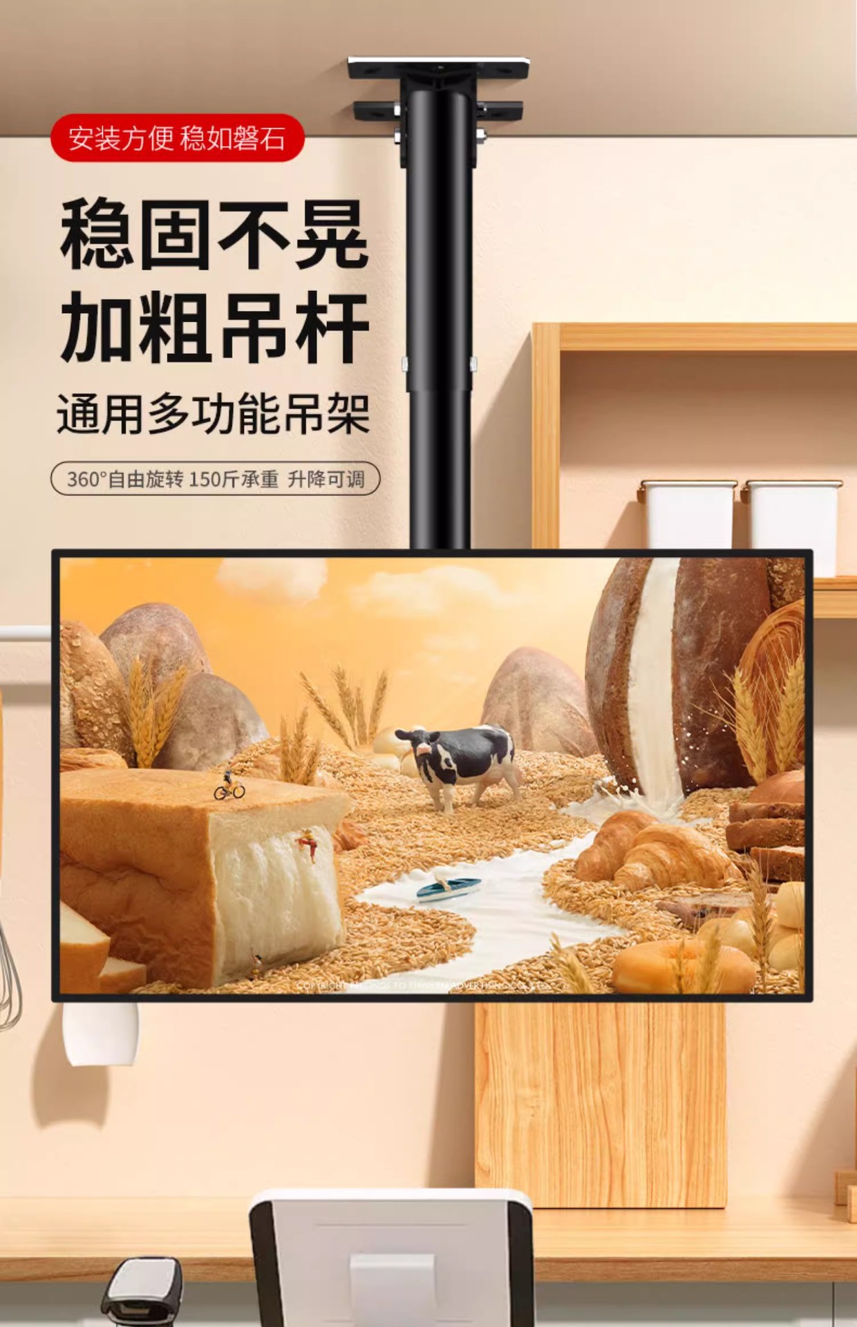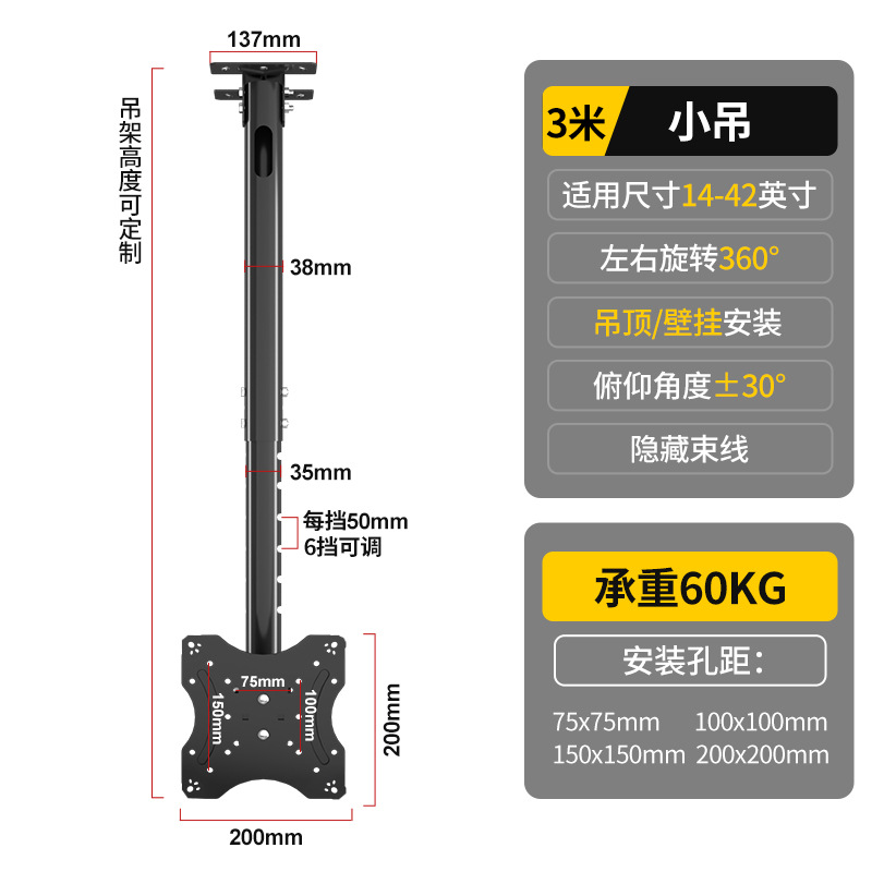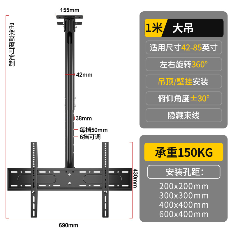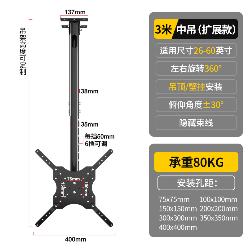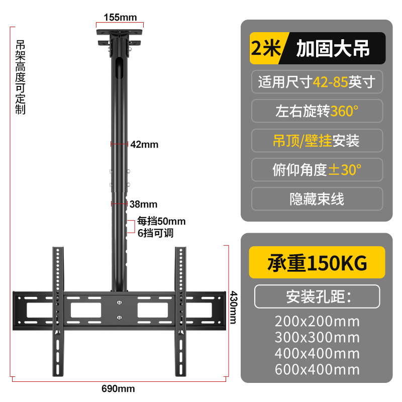유니버설 TV 행거 텔레스코픽 회전 호이 스팅 브래킷 리프팅 LCD 디스플레이 식품 교수형 더블 스크린 벽 걸이스토어 가기