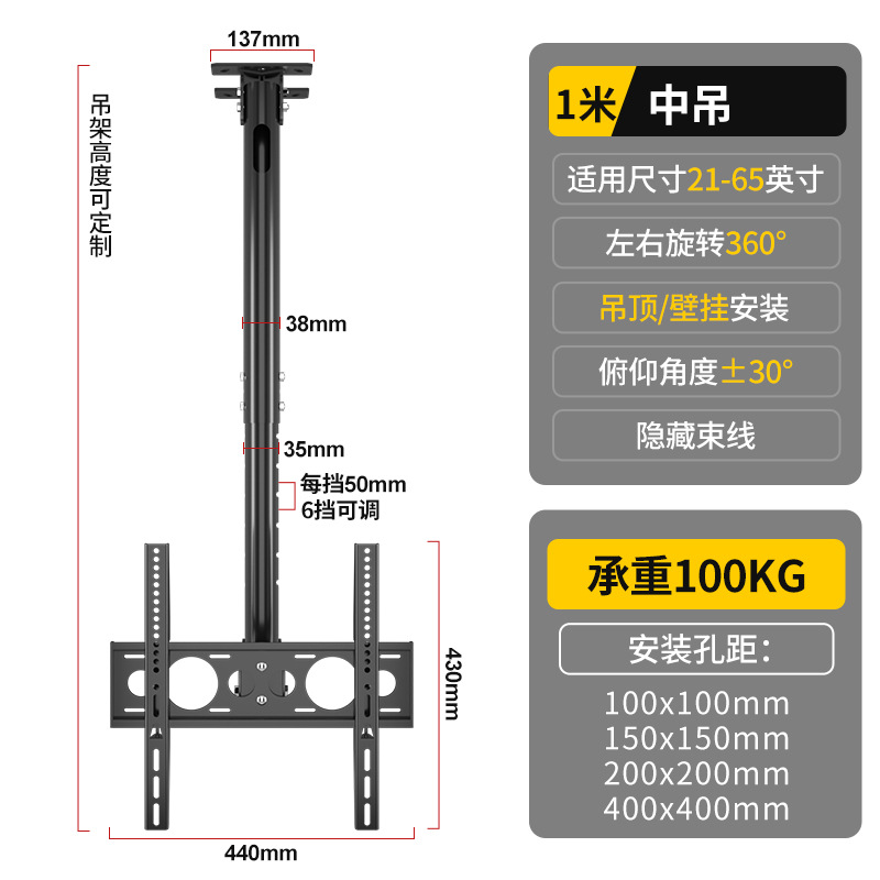 • 21-65inch / 총 길이 1m / 리프팅 가능 및 피치 각도 조절 가능 / 측면 장착 가능