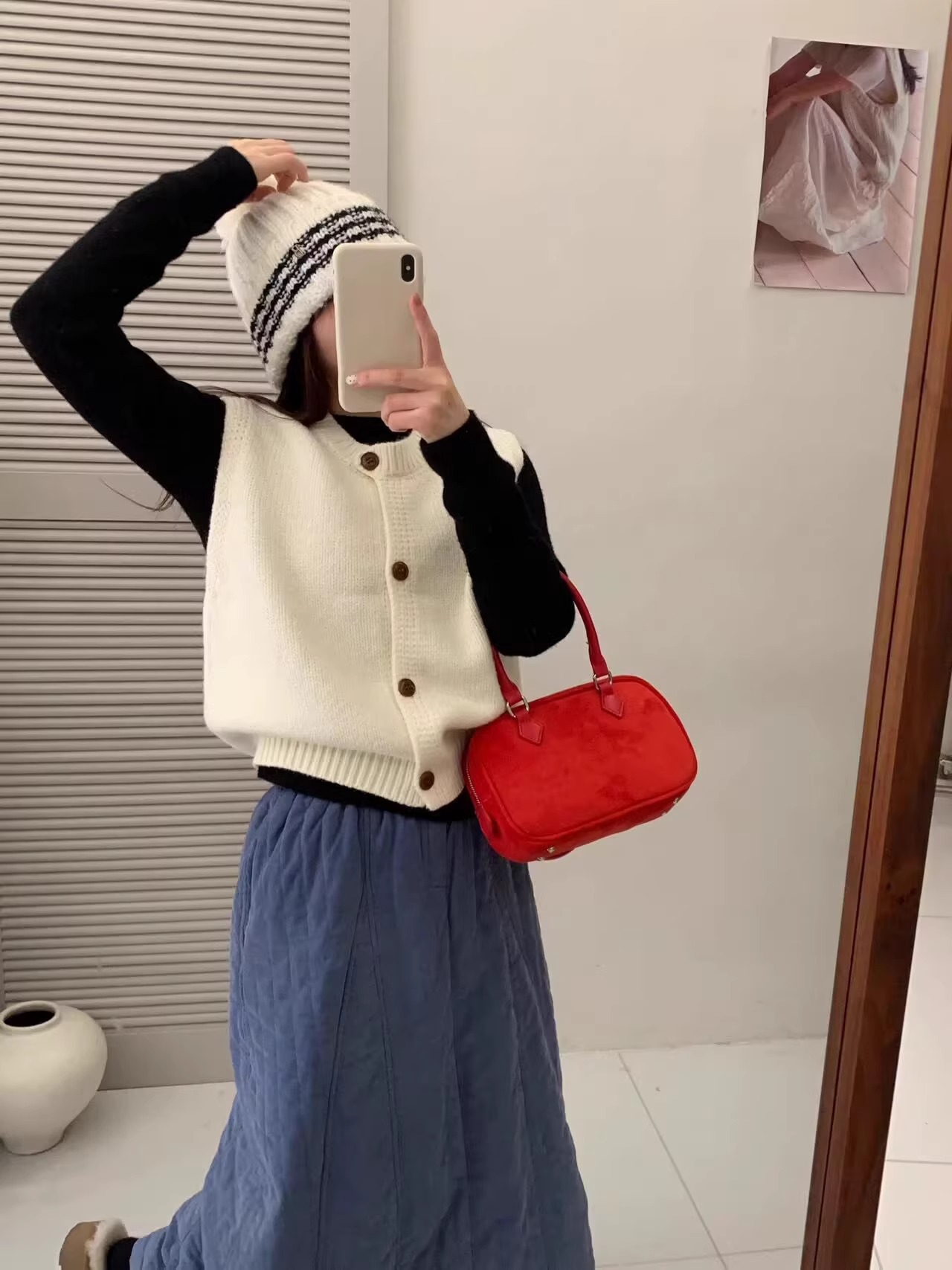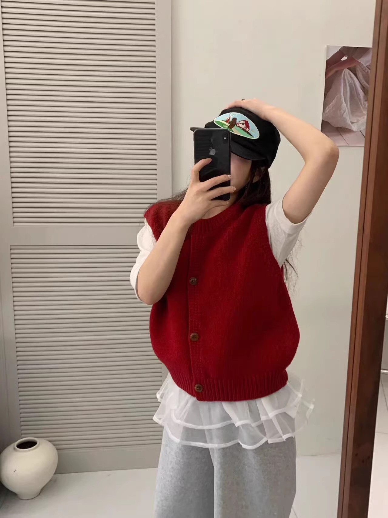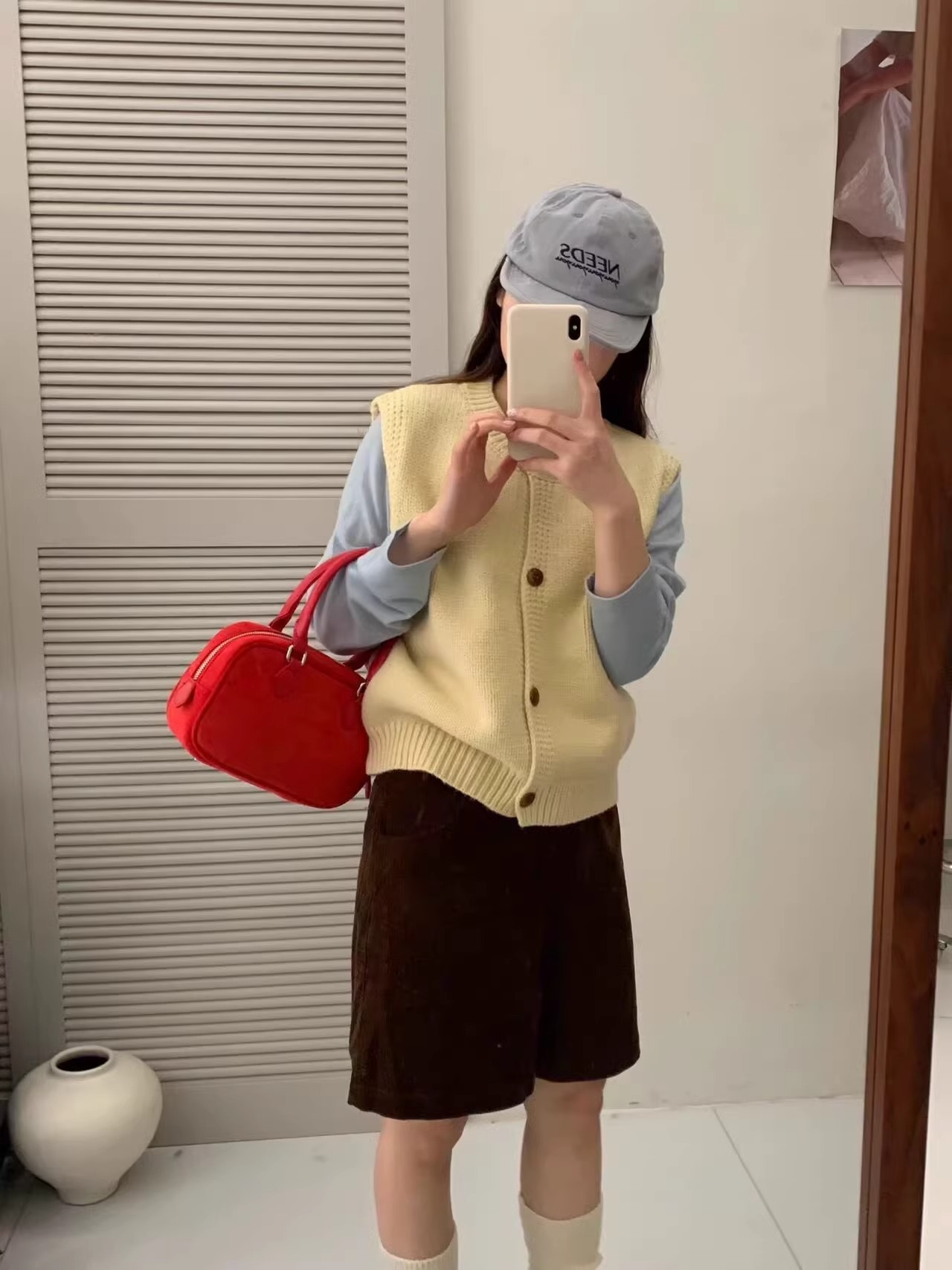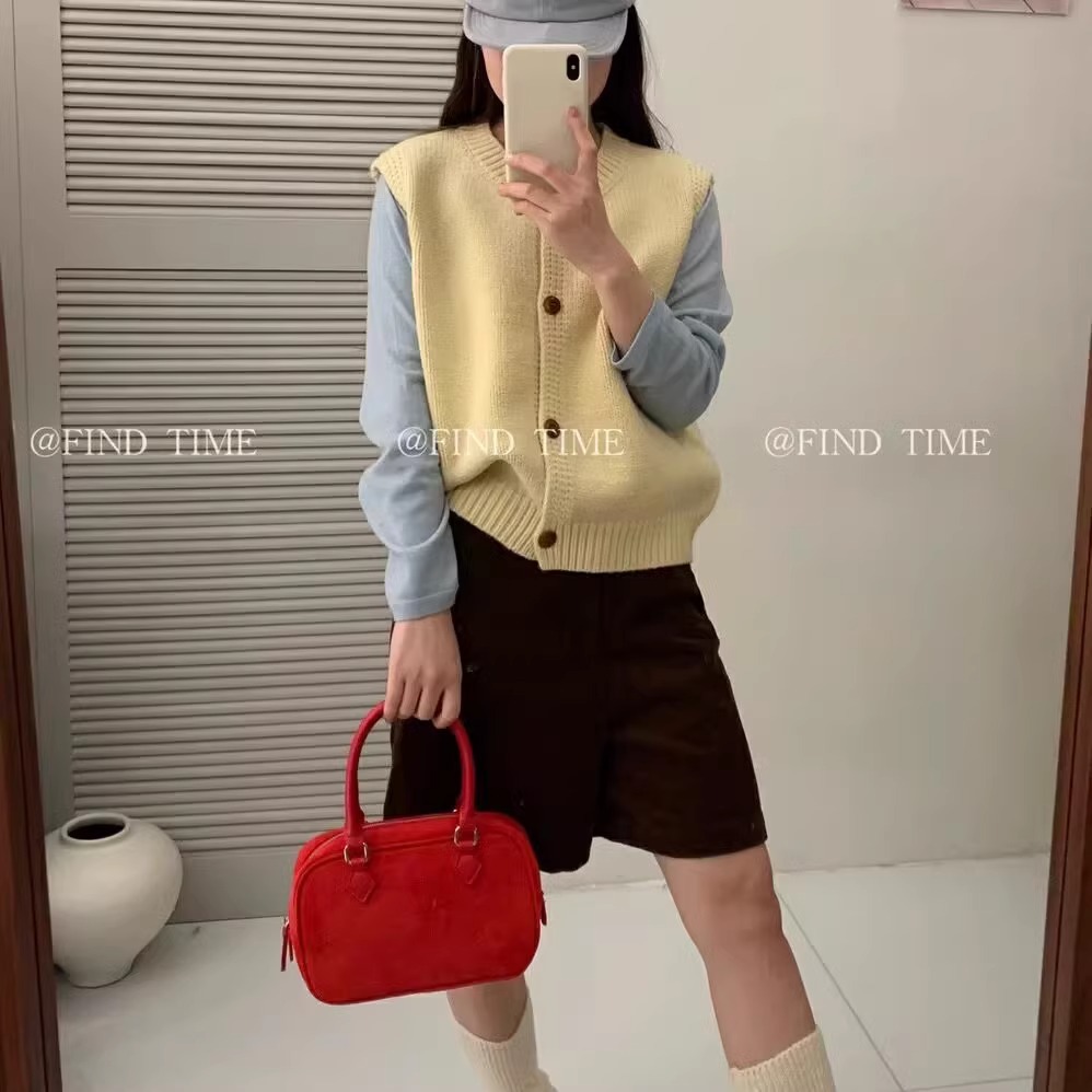 Ankora Red stacked 니트 스웨터 조끼 카디건 여성의 가을과 겨울 외부 허리 코트 느슨한 짧은 조끼스토어 가기