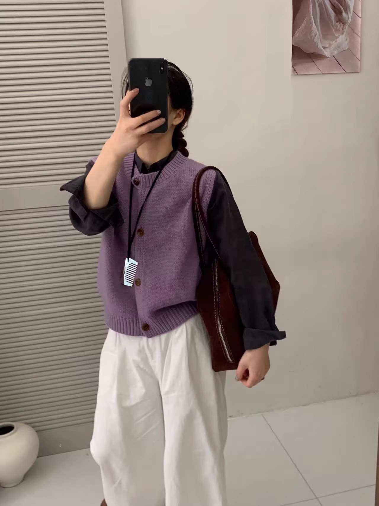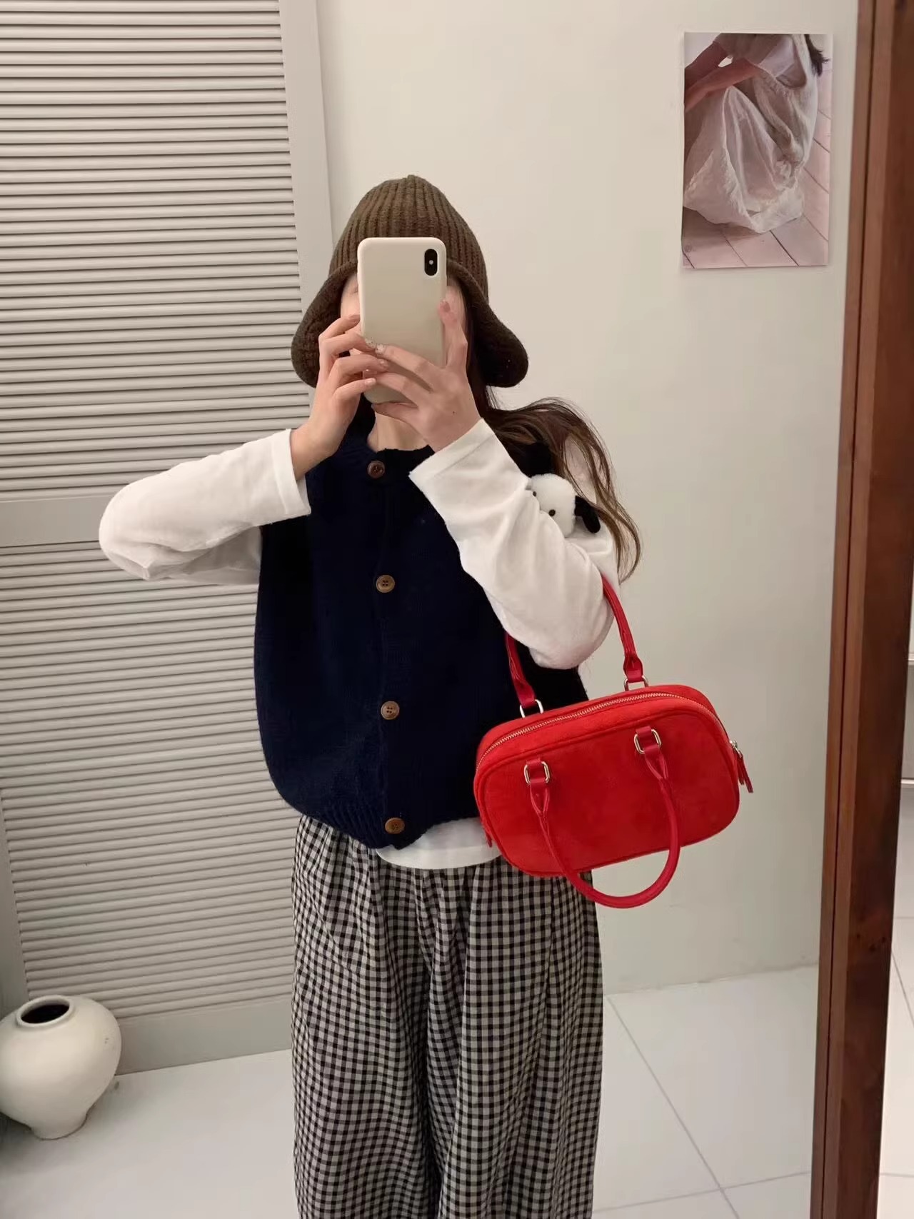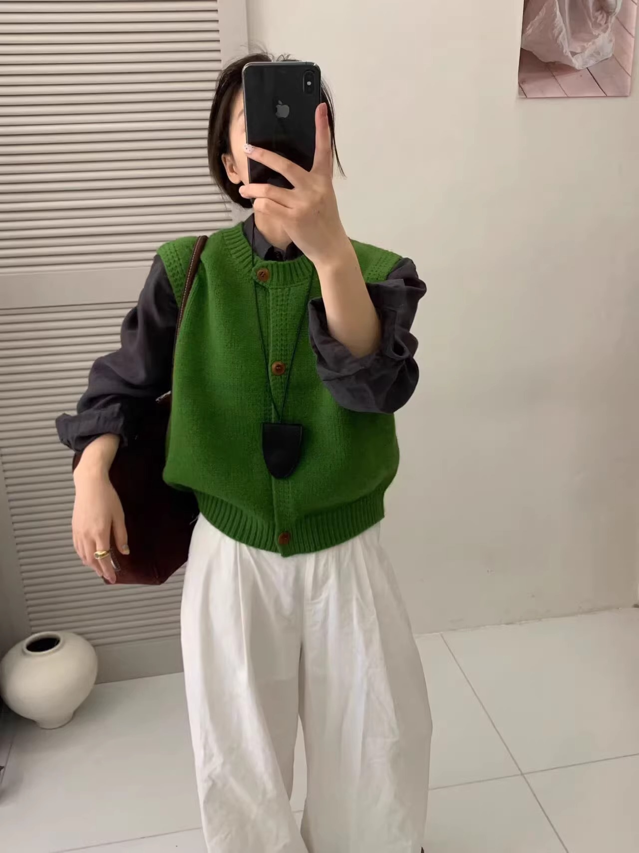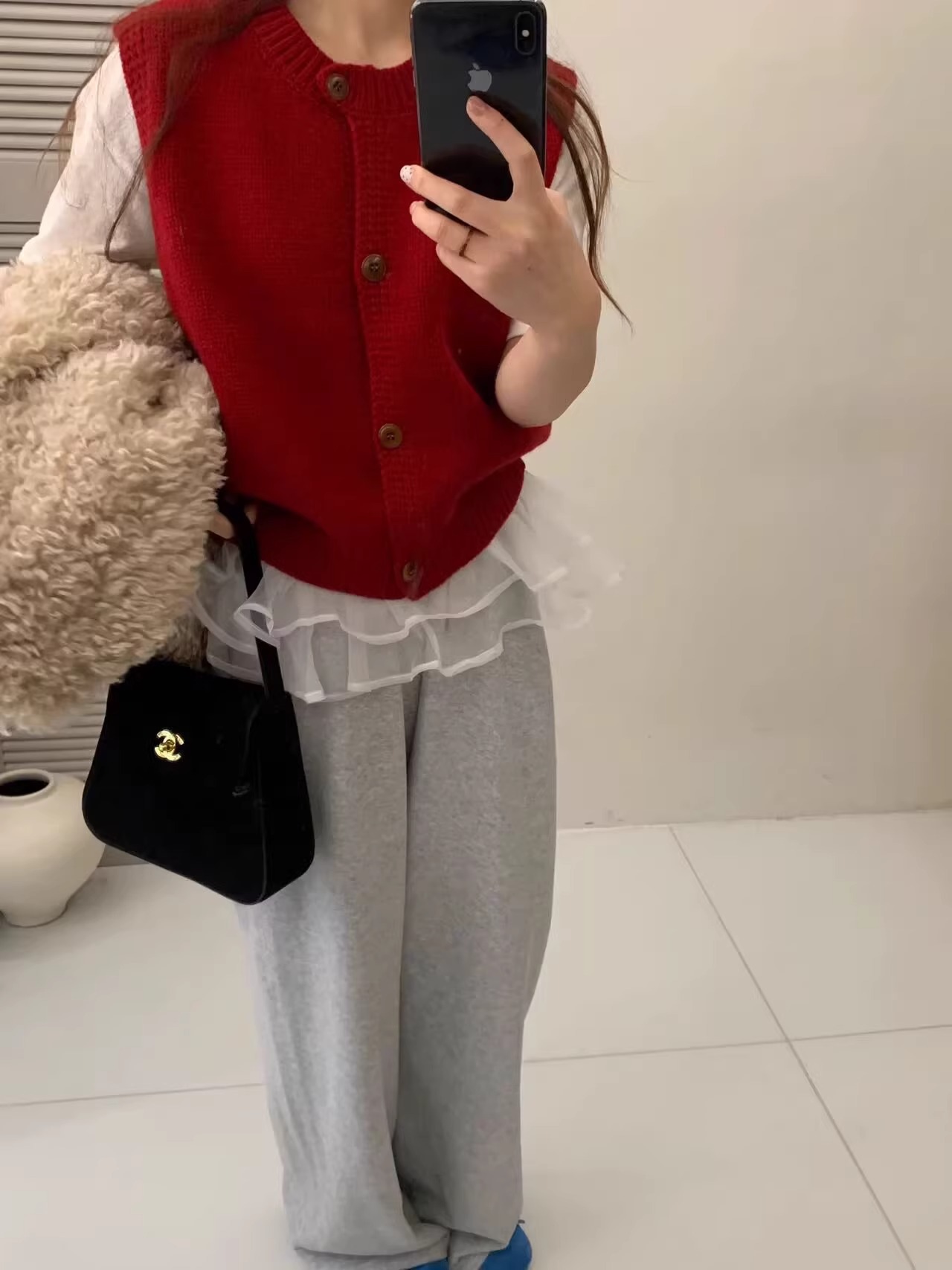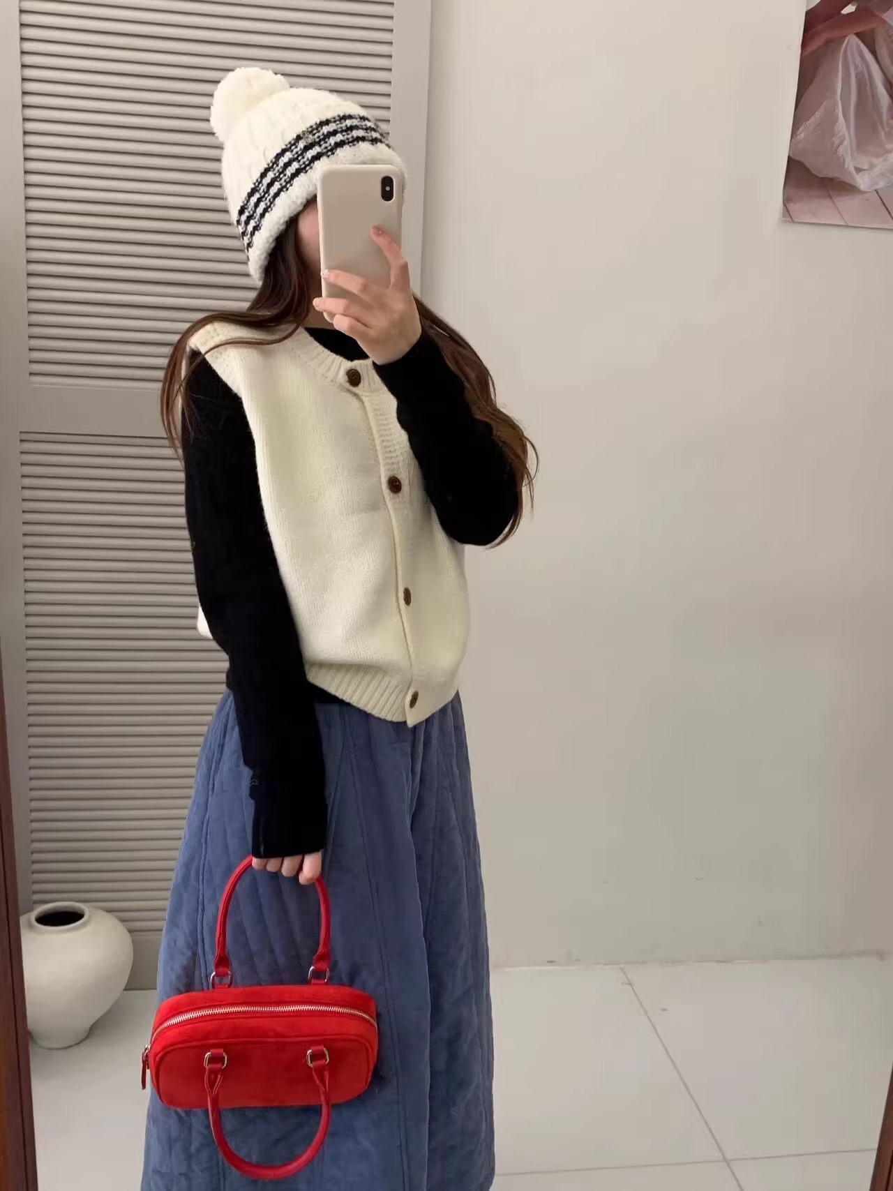 Ankora Red stacked 니트 스웨터 조끼 카디건 여성의 가을과 겨울 외부 허리 코트 느슨한 짧은 조끼스토어 가기