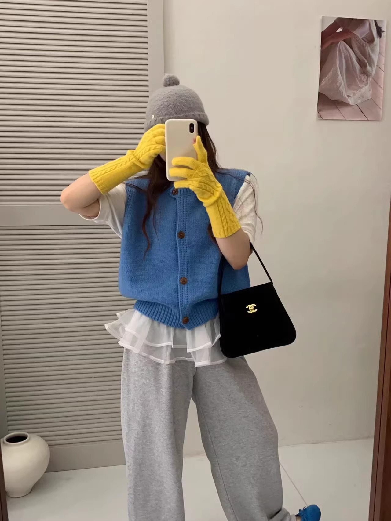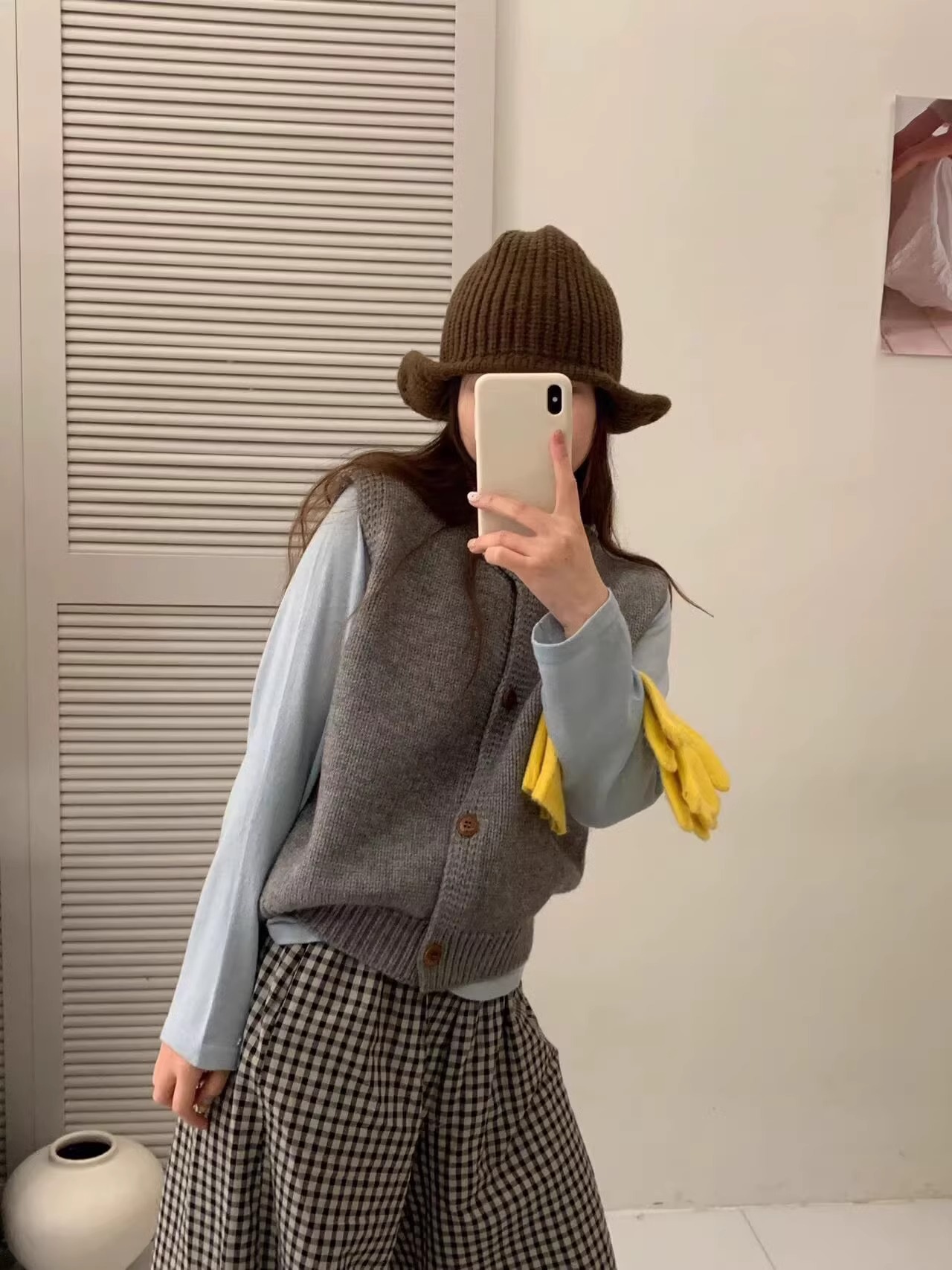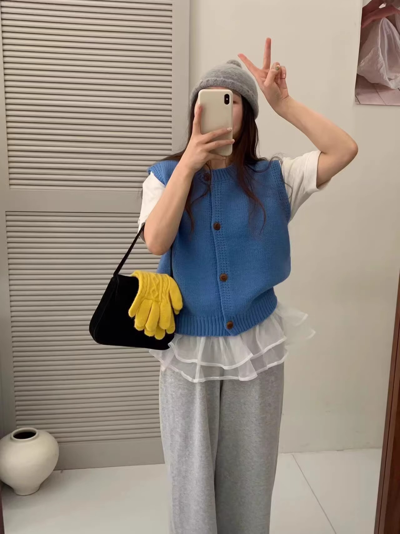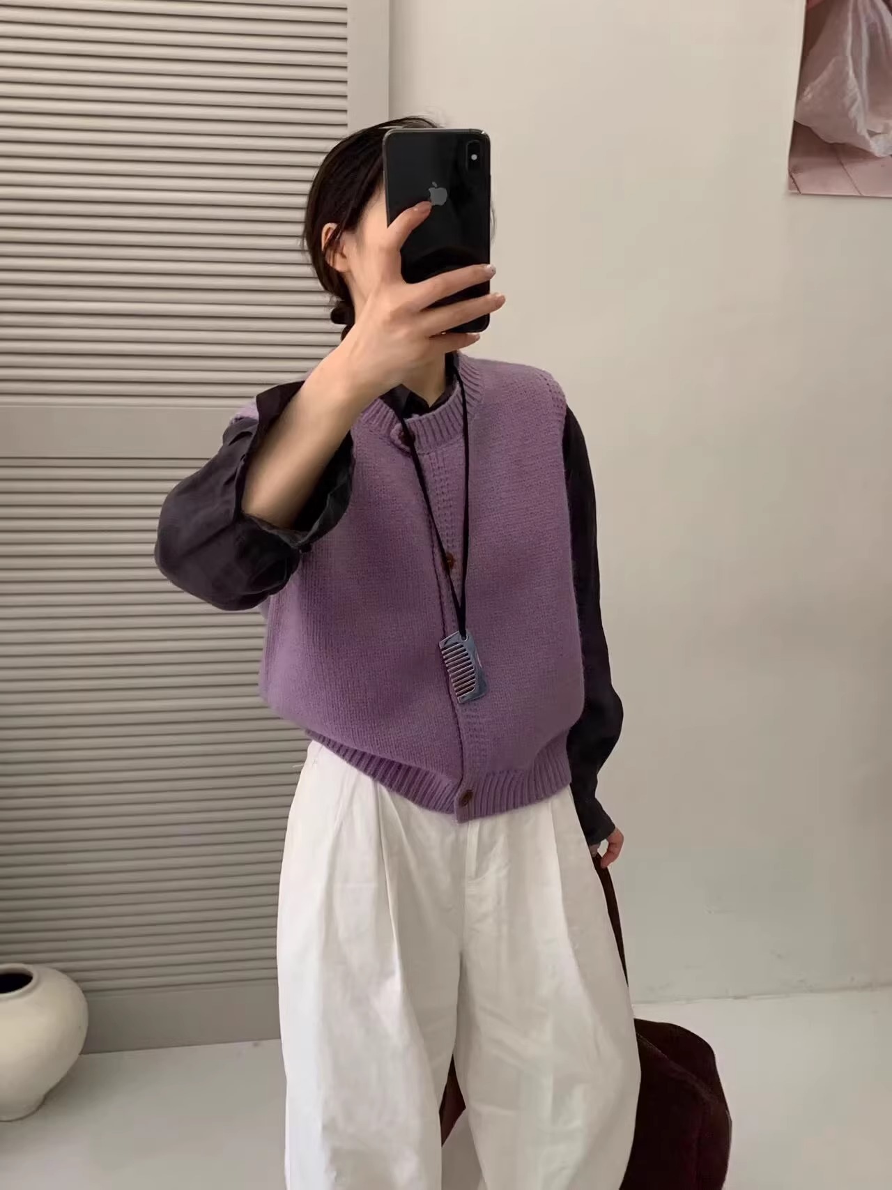 Ankora Red stacked 니트 스웨터 조끼 카디건 여성의 가을과 겨울 외부 허리 코트 느슨한 짧은 조끼스토어 가기