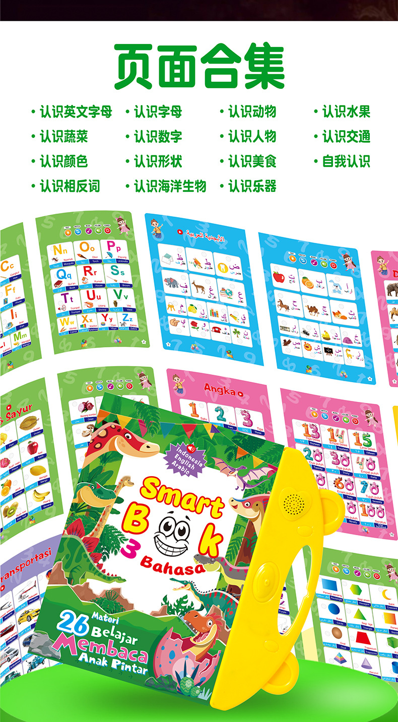 인도네시아어 오디오 플립북 인도네시아어 오디오북 손가락 포인팅 음성북 인도네시아 장난감 학습기