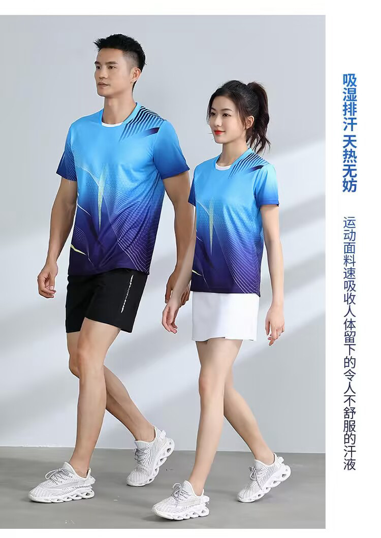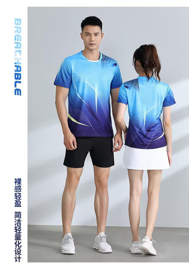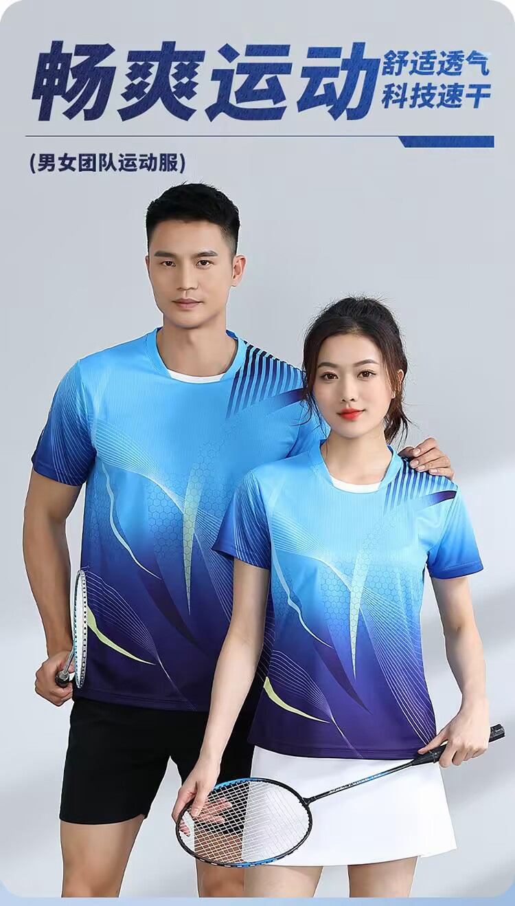 배드민턴 의류 피트니스 의류 남녀 스포츠 탁구 에어 배구 교육 인쇄 대학생 러닝 반팔 팀 의류 인쇄스토어 가기
