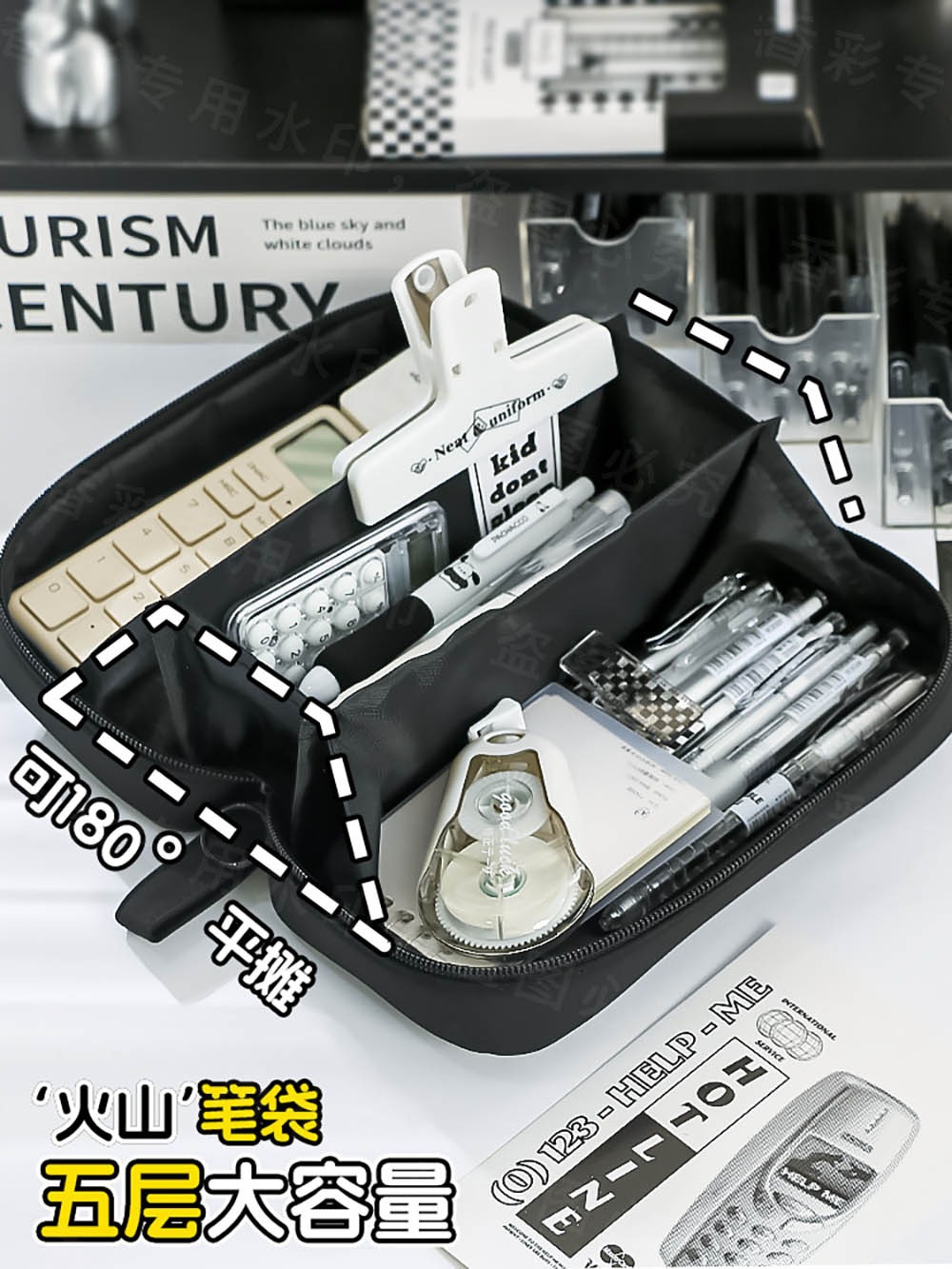 소년과 소녀를위한 대용량 화산 연필 케이스 2024 초등 및 중등 학교 학생을위한 새로운 연필 케이스 높은 색상 가치 투명