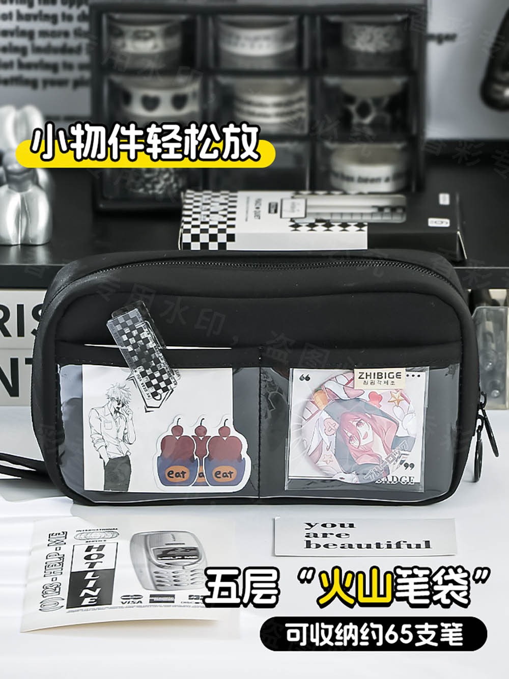 소년과 소녀를위한 대용량 화산 연필 케이스 2024 초등 및 중등 학교 학생을위한 새로운 연필 케이스 높은 색상 가치 투명스토어 가기