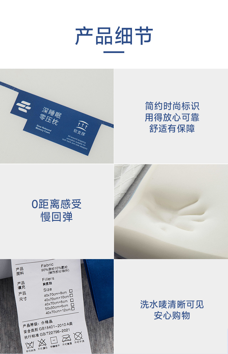 호텔과 동일한 제로압 메모리폼 베개, 목 보호 베개 코어, 느린 반동으로 수면에 도움을 주는 가정용 베개 도매 제조업체스토어 가기