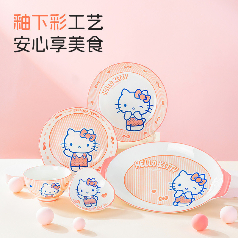 헬로 키티 세라믹 그릇 접시 유약 컬러 식기 세트 가정용 주방 귀여운 파르칼 개 먹는 그릇스토어 가기